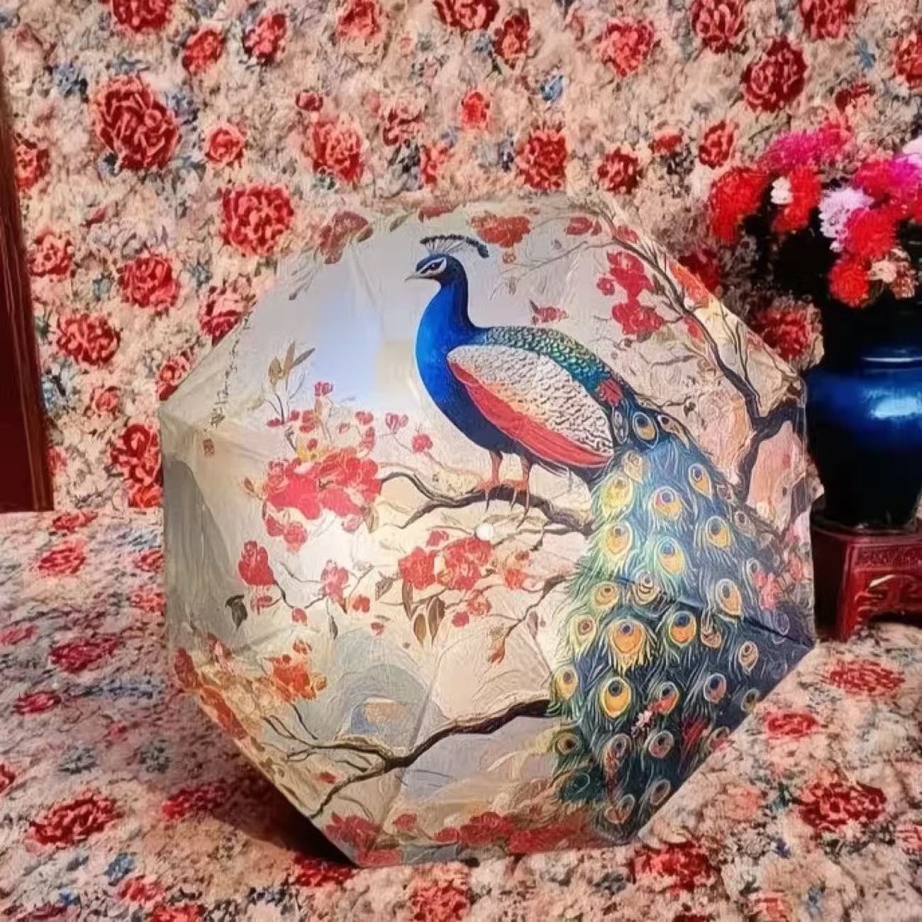 블랙 글로시 자외선 차단 여성용 우산, 자외선 차단, 핑크색 모란 접이식 우산, 비와 햇빛 모두 사용 가능, UPF50+스토어 가기