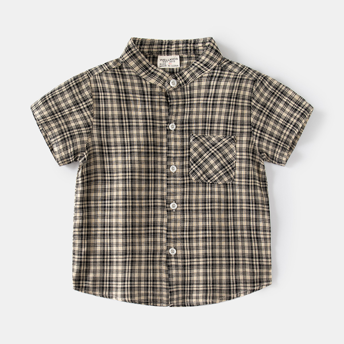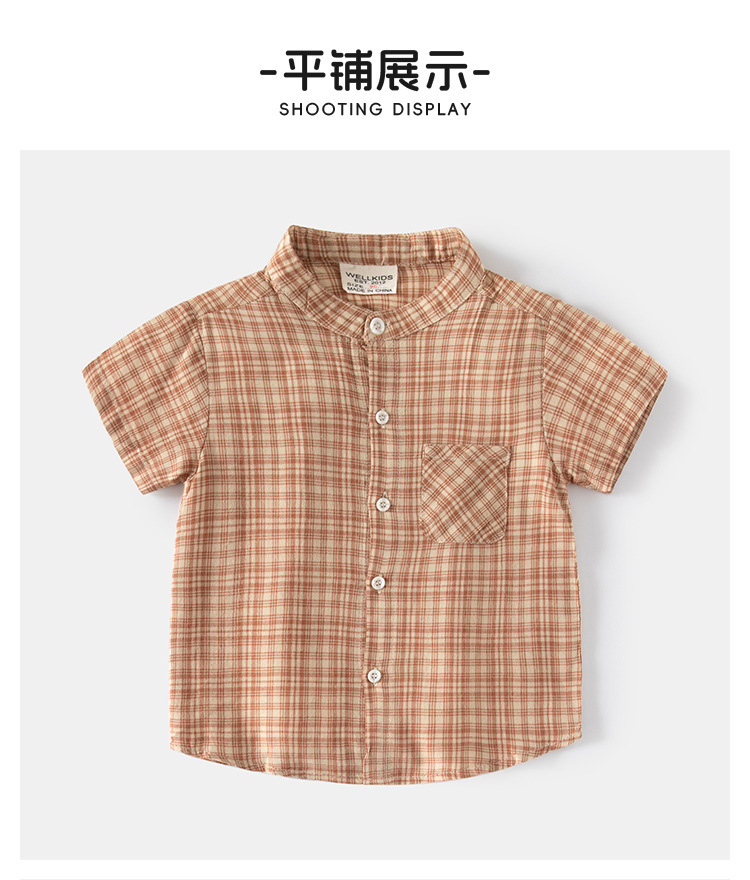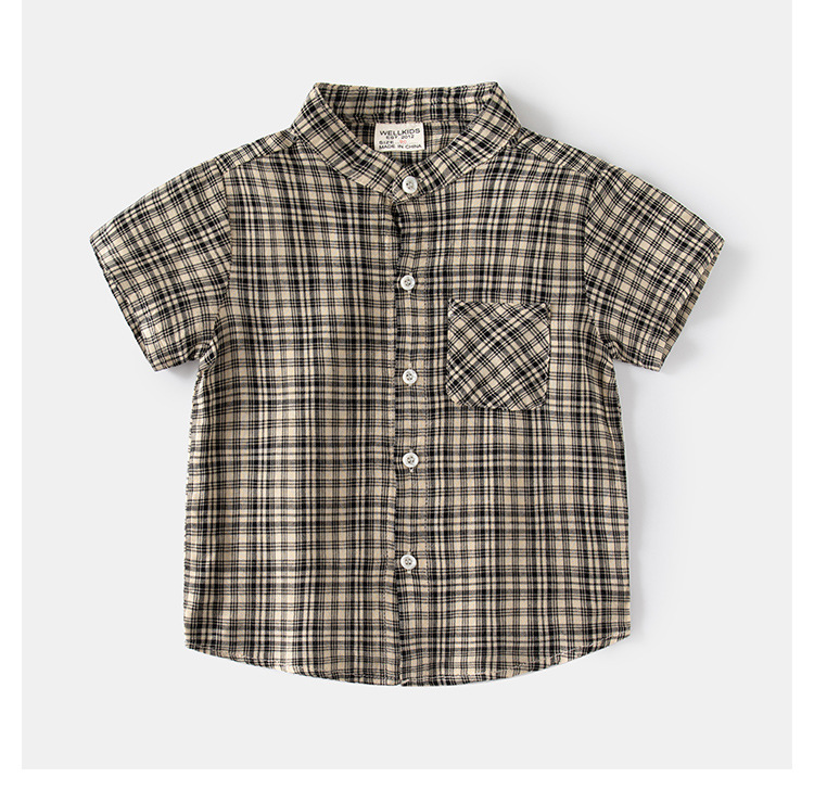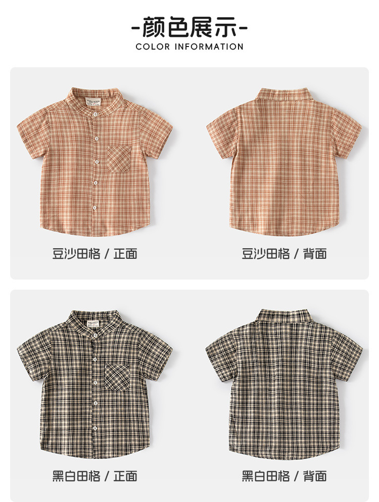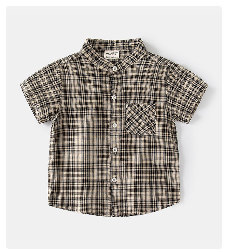 소년의 여름 격자 무늬 반팔 셔츠 새 스타일 남성 아기의 캐주얼 셔츠 수직 칼라 어린이 탑 카디건스토어 가기