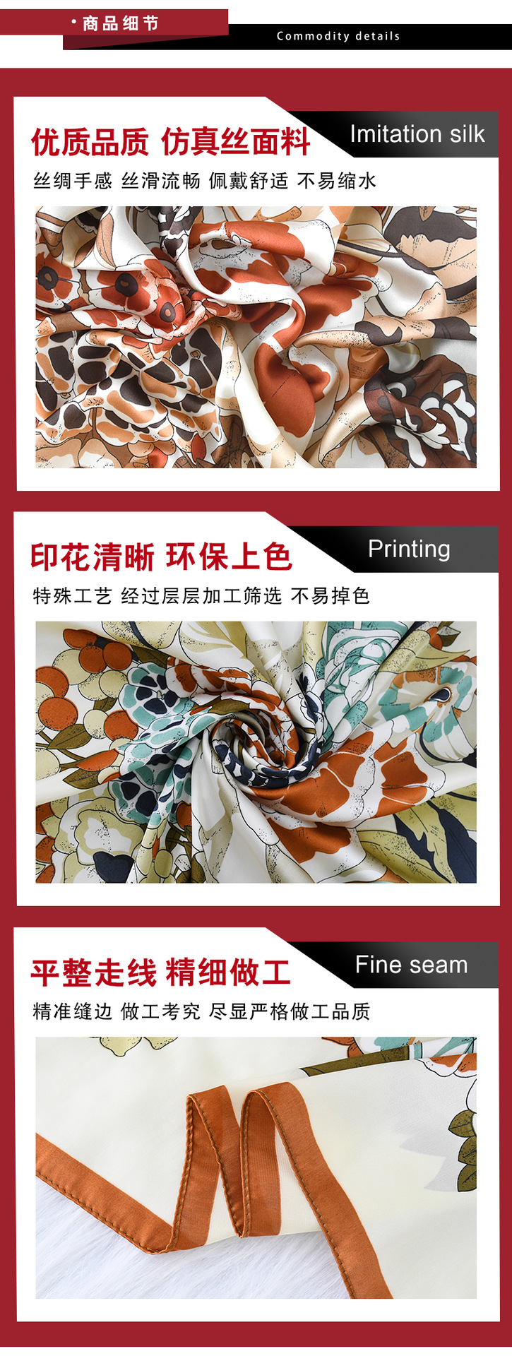 고급 작은 실크 스카프 대형 스퀘어 스카프 여성의 봄 가을 겨울 모방 실크 스카프 꽃 선스크린 전문 스카프