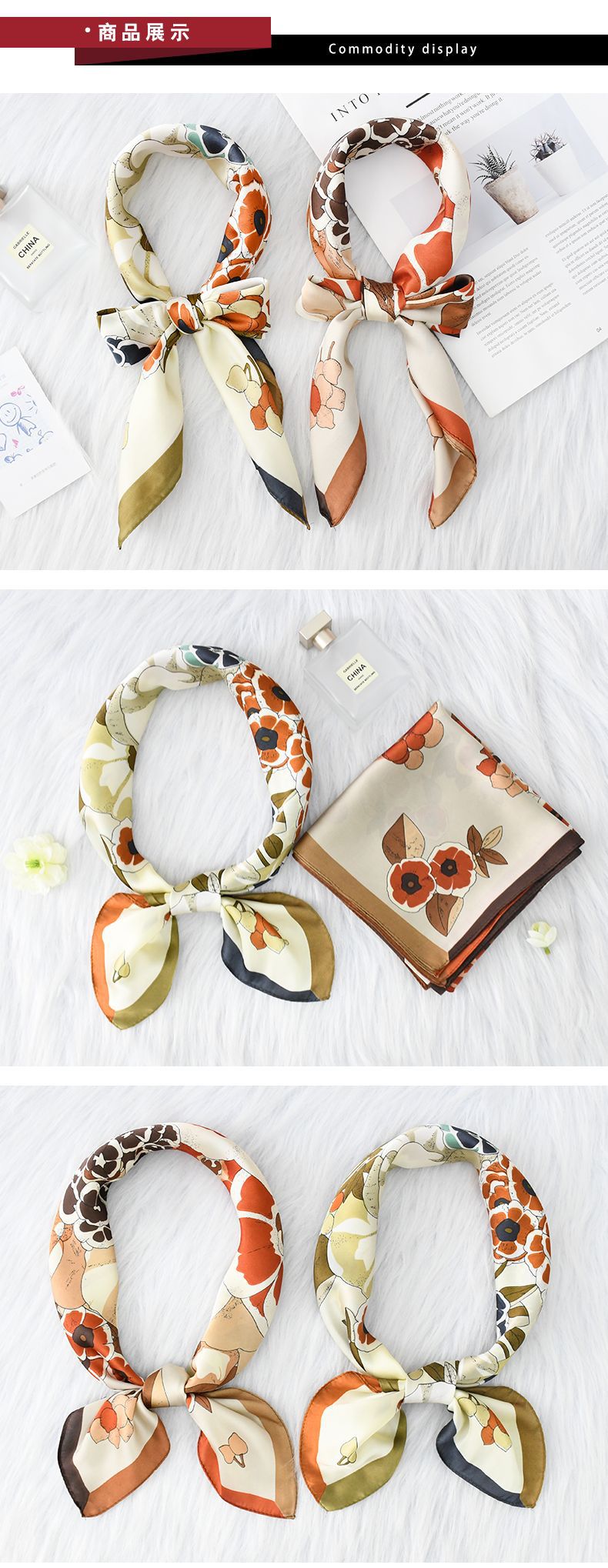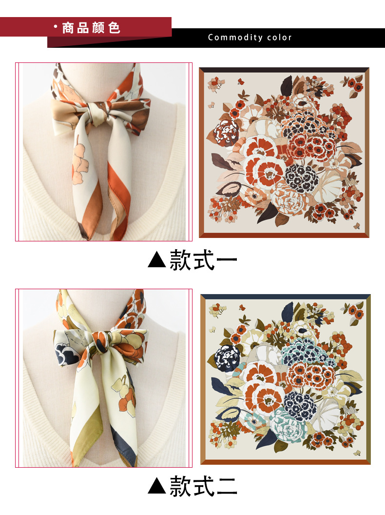 고급 작은 실크 스카프 대형 스퀘어 스카프 여성의 봄 가을 겨울 모방 실크 스카프 꽃 선스크린 전문 스카프스토어 가기