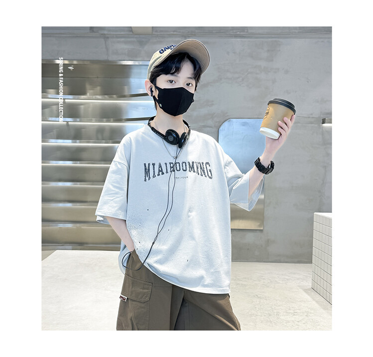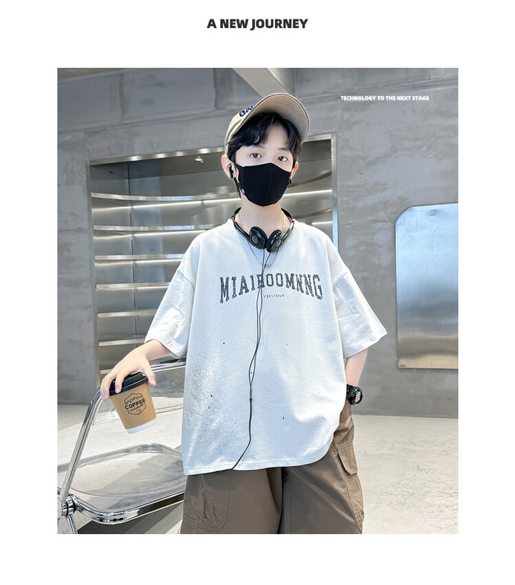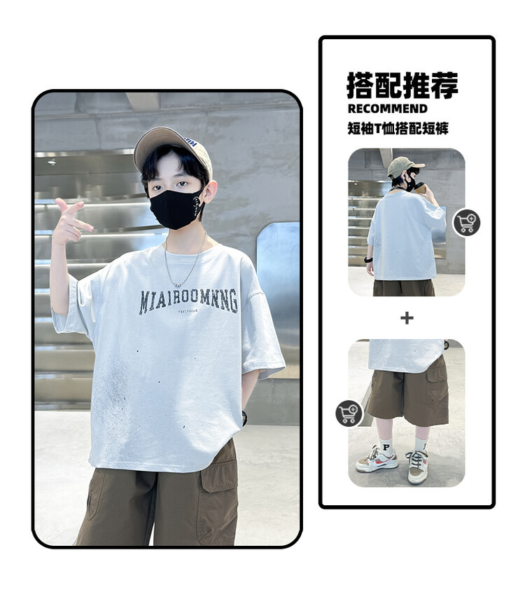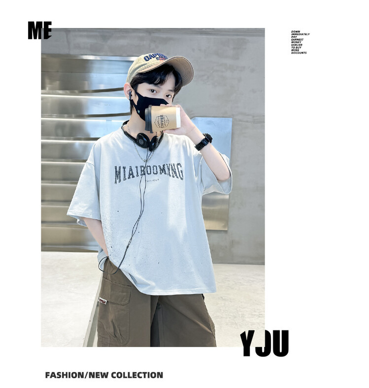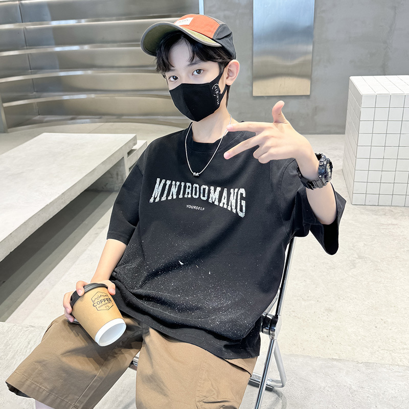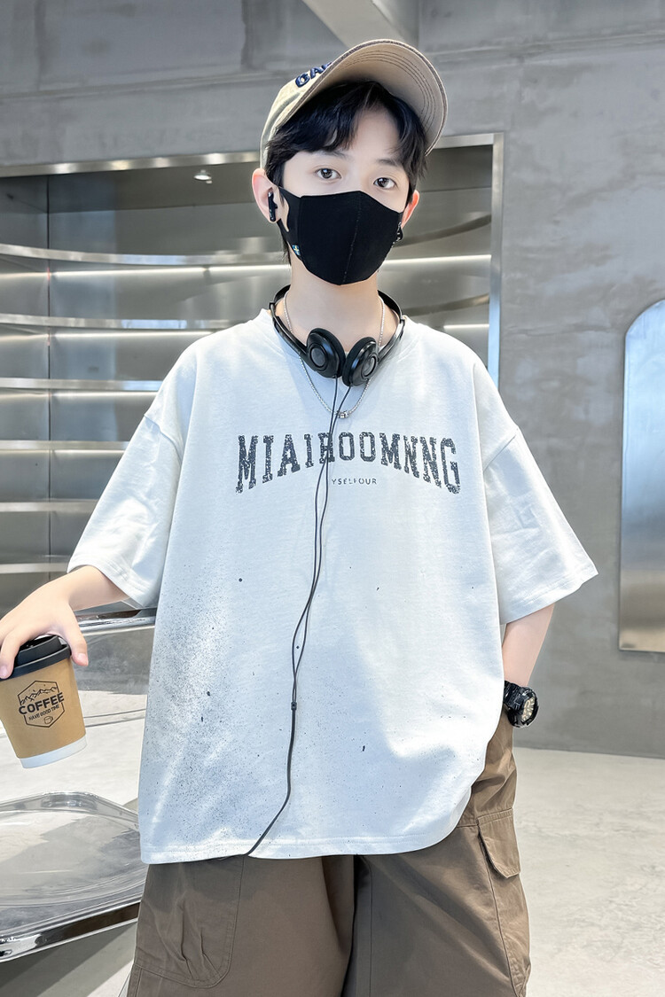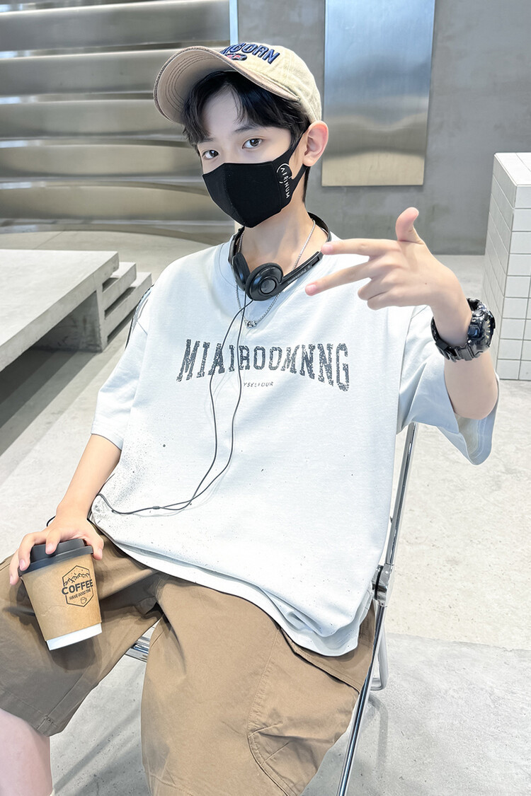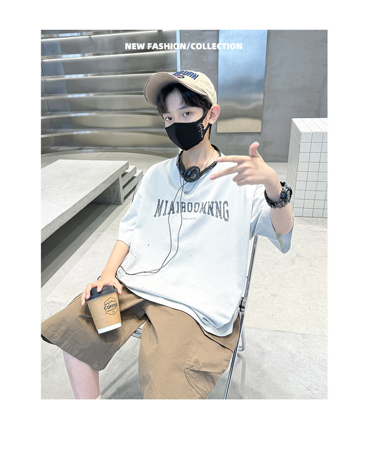소년 여름 반팔 티셔츠 외국 스타일 프린트 캐주얼 재킷 어린이 느슨한 조커 한국 옷스토어 가기