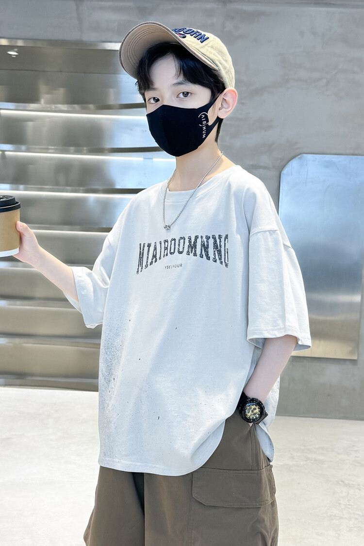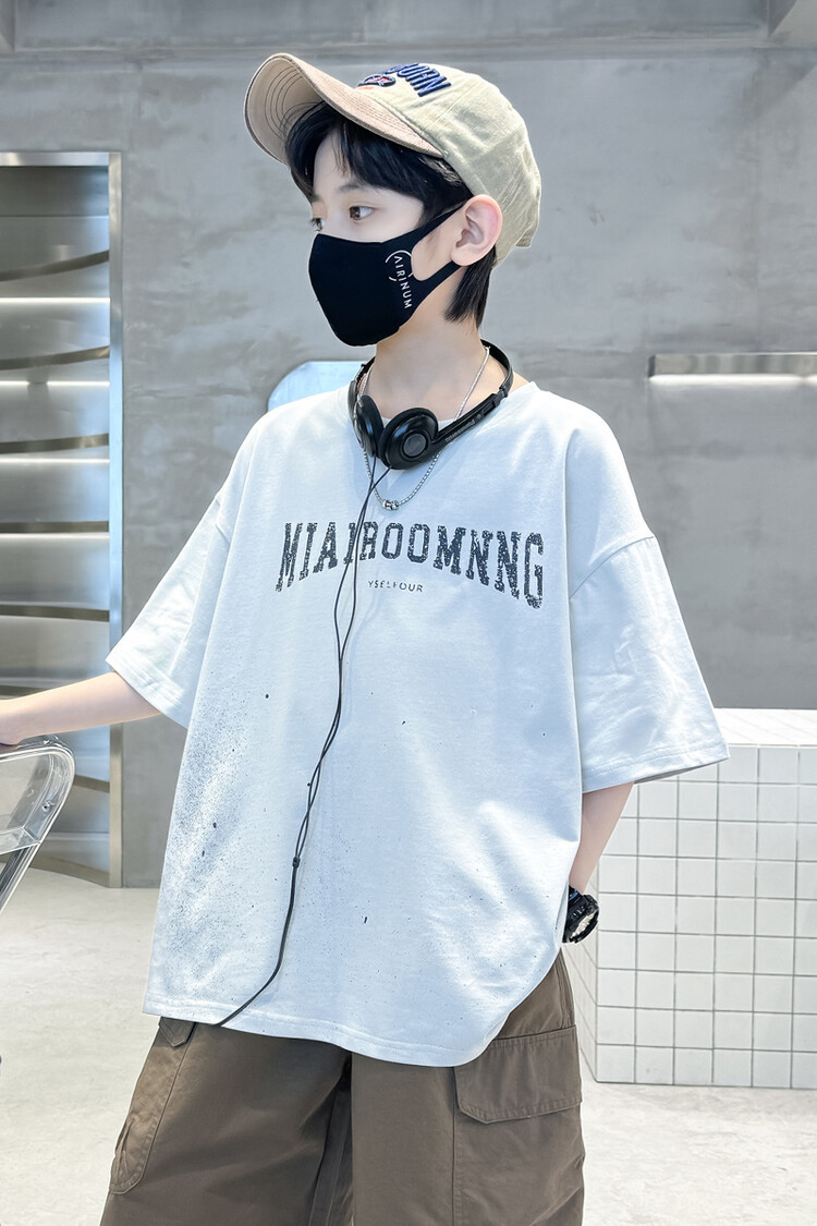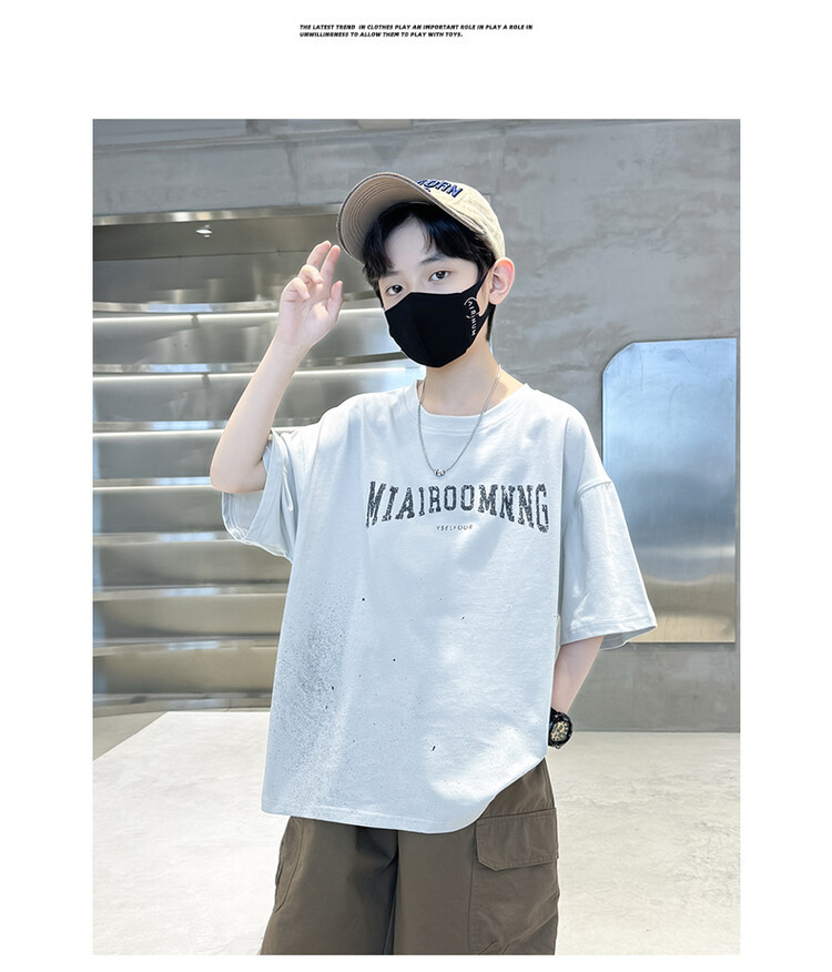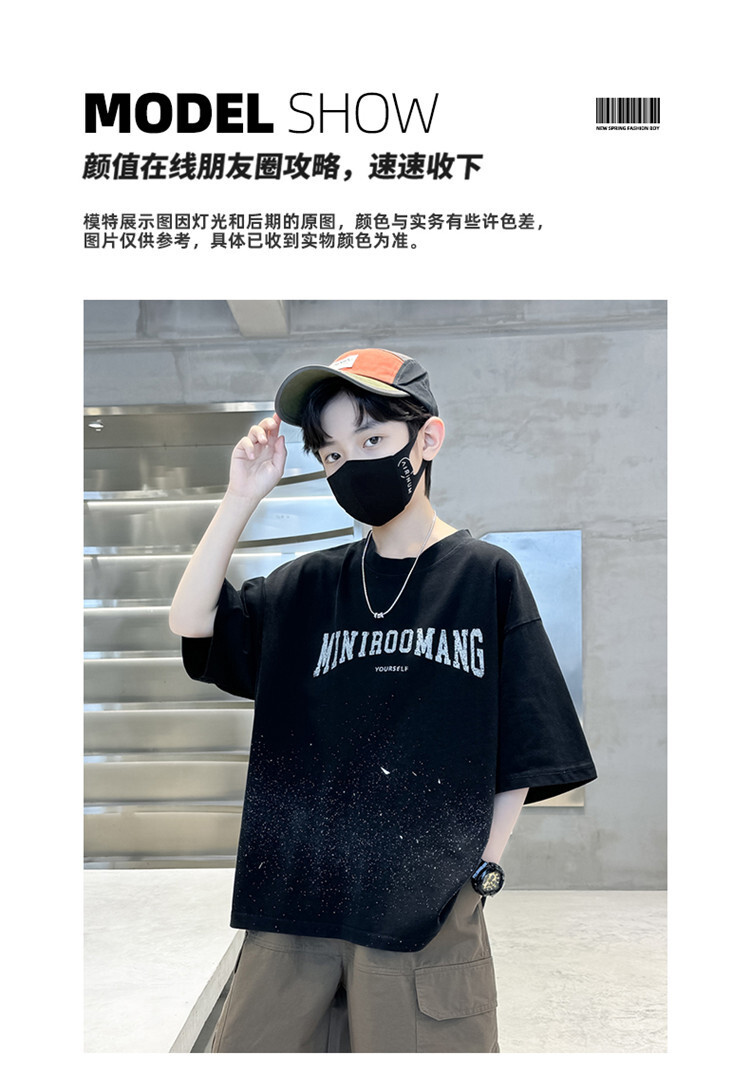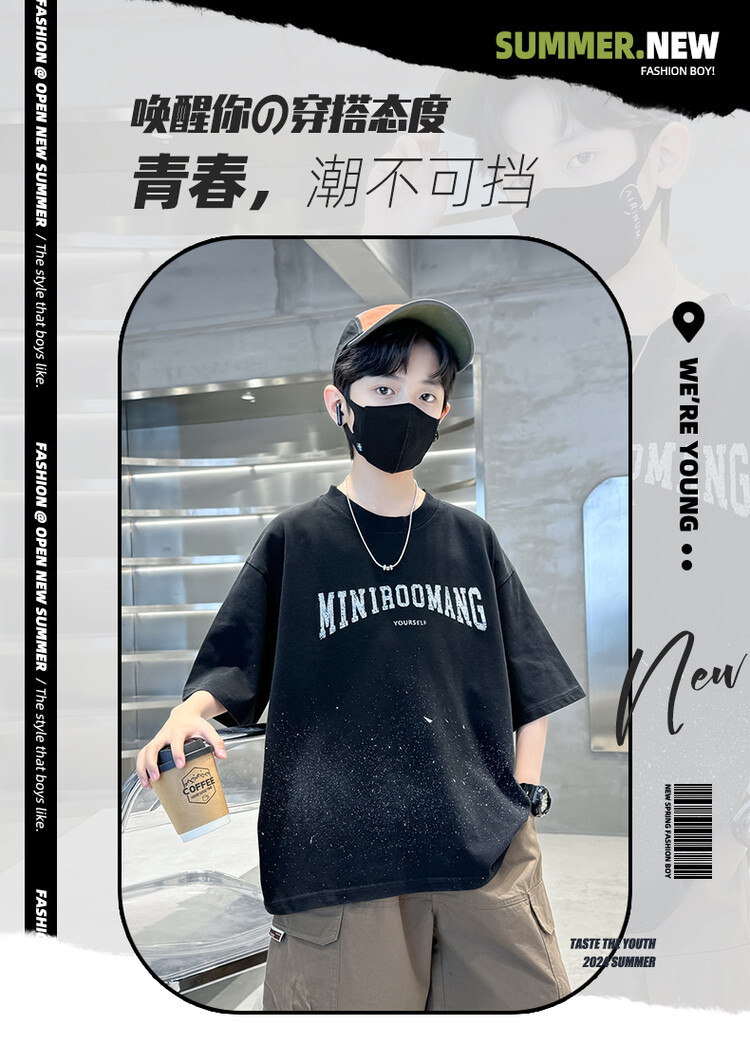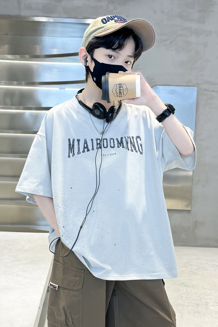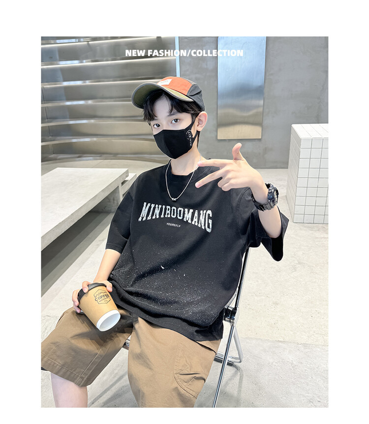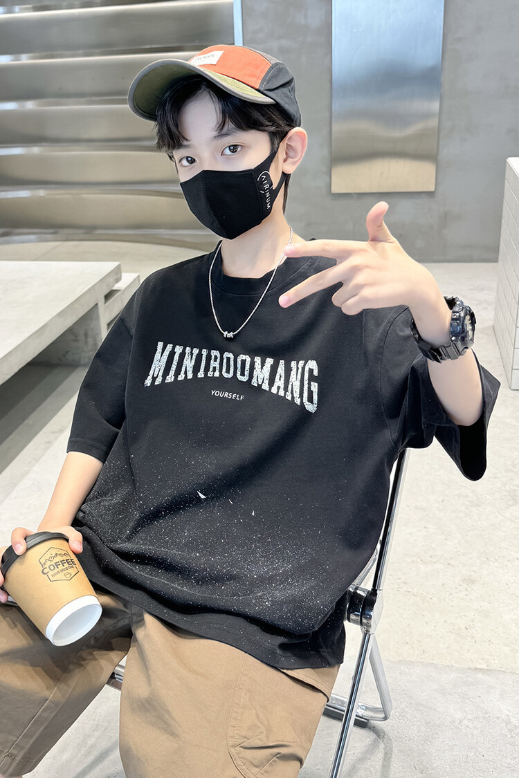 소년 여름 반팔 티셔츠 외국 스타일 프린트 캐주얼 재킷 어린이 느슨한 조커 한국 옷스토어 가기