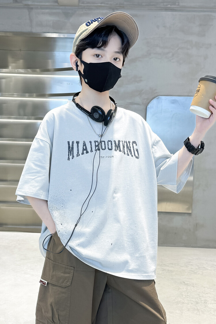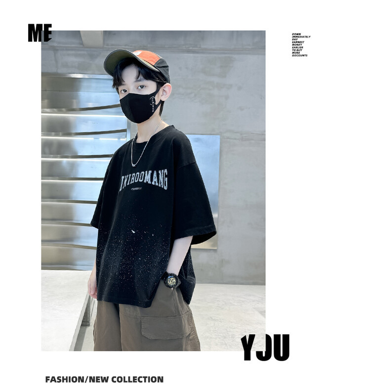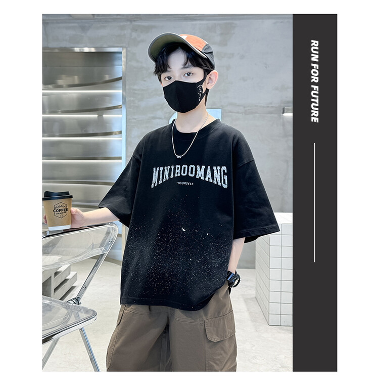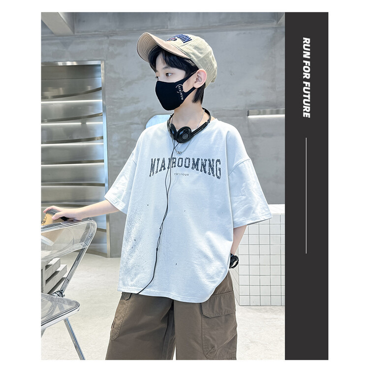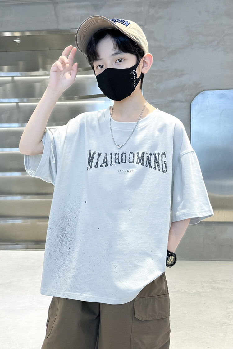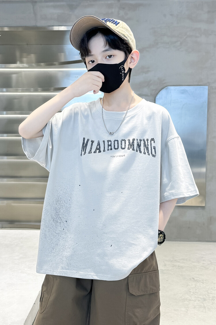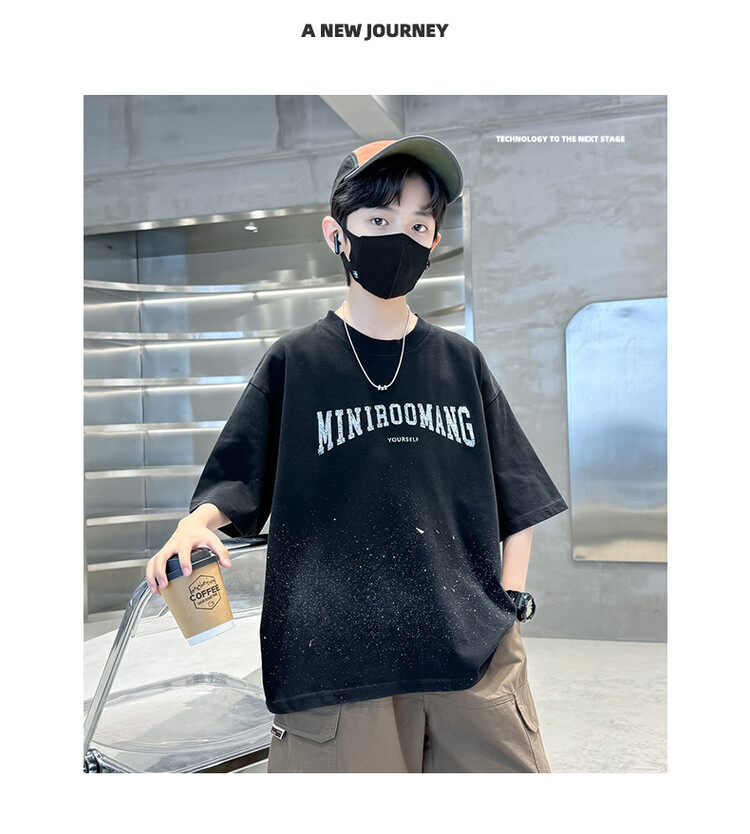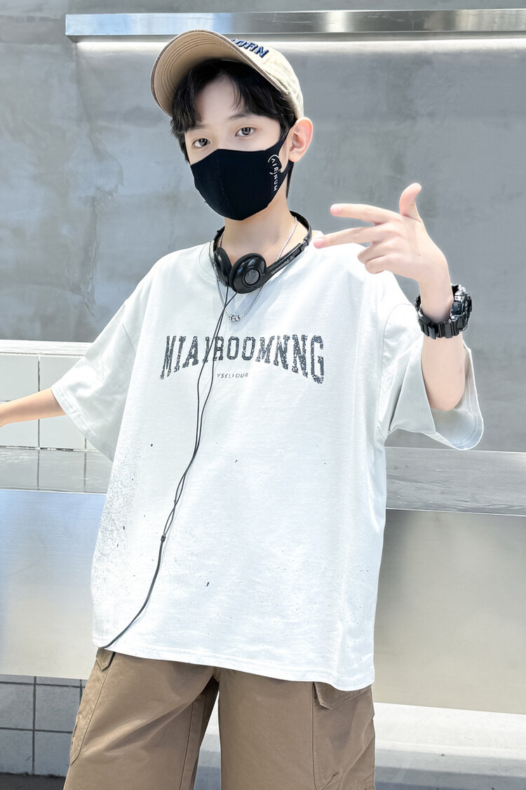 소년 여름 반팔 티셔츠 외국 스타일 프린트 캐주얼 재킷 어린이 느슨한 조커 한국 옷스토어 가기