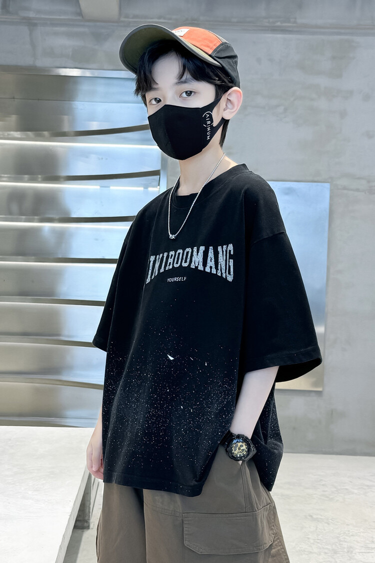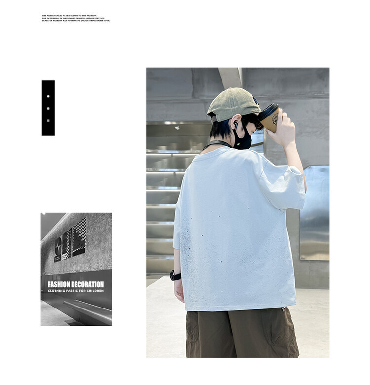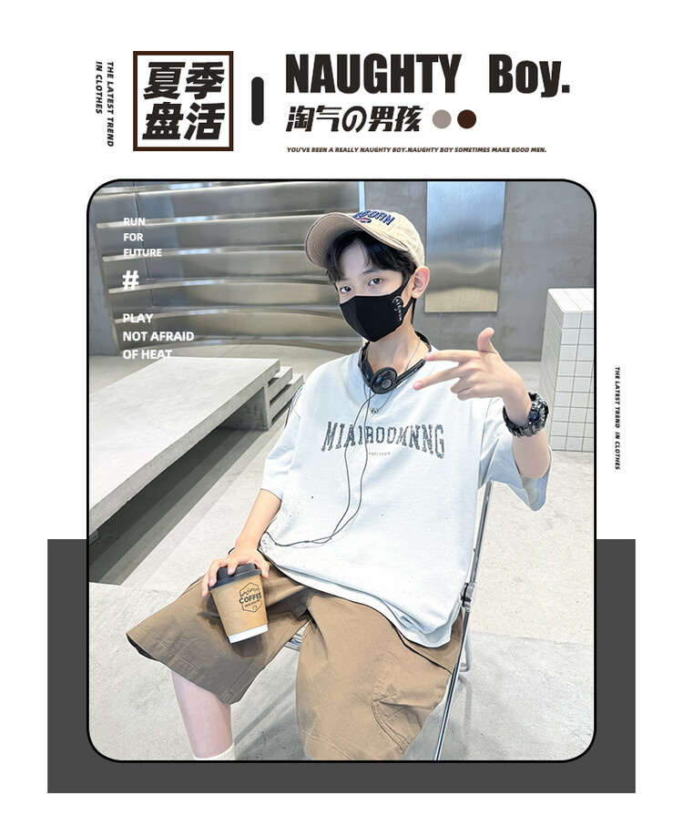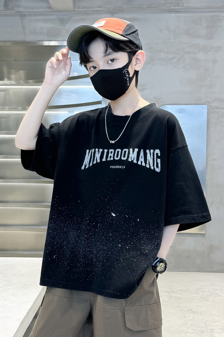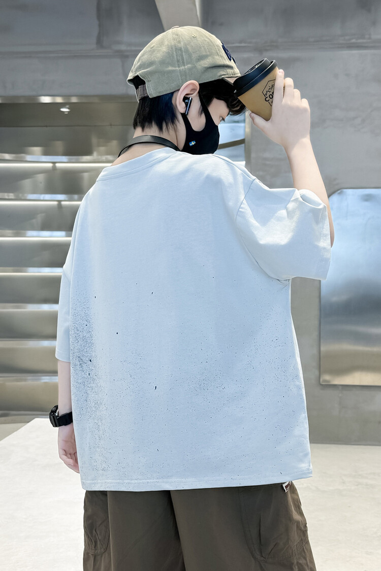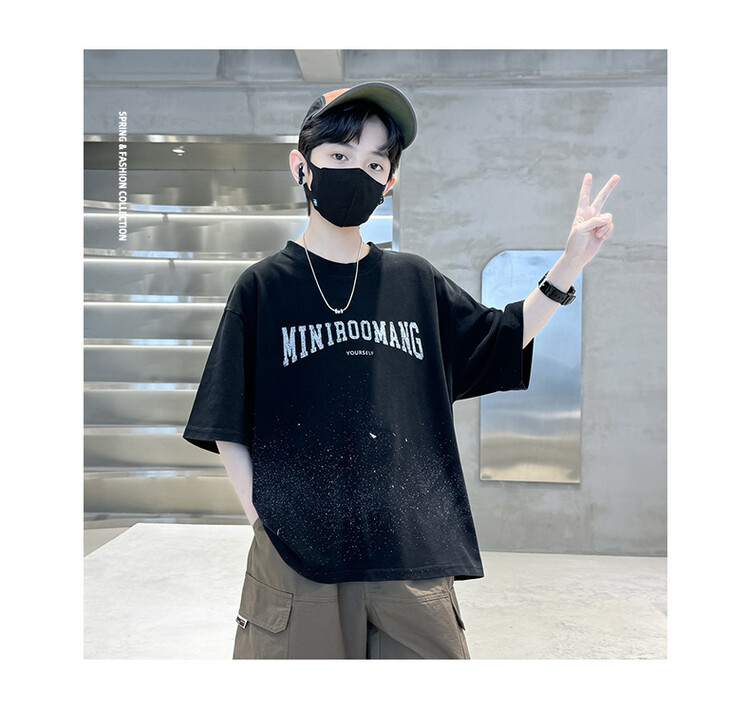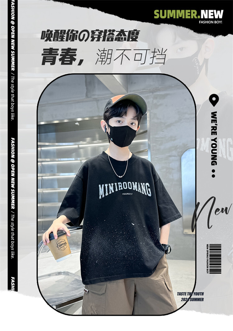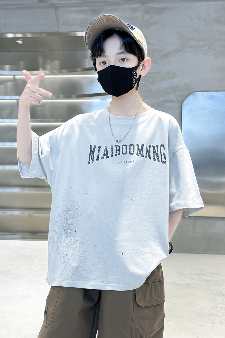 소년 여름 반팔 티셔츠 외국 스타일 프린트 캐주얼 재킷 어린이 느슨한 조커 한국 옷스토어 가기