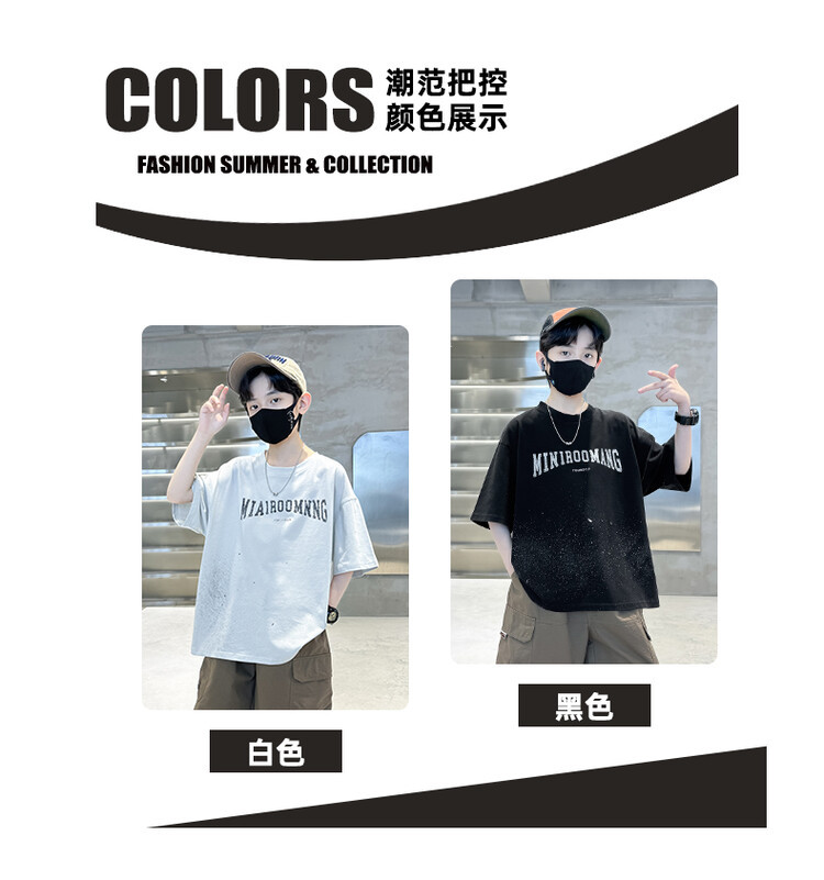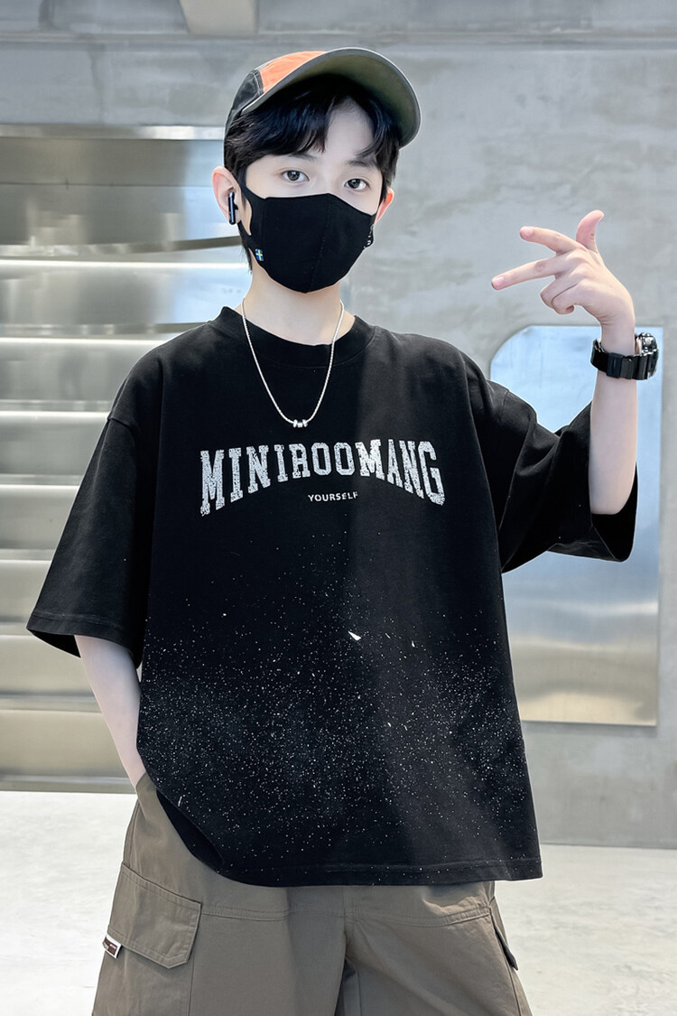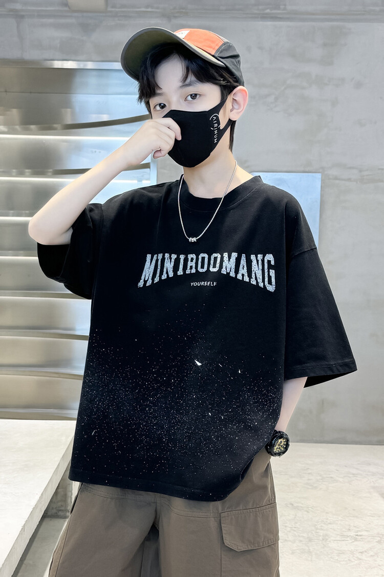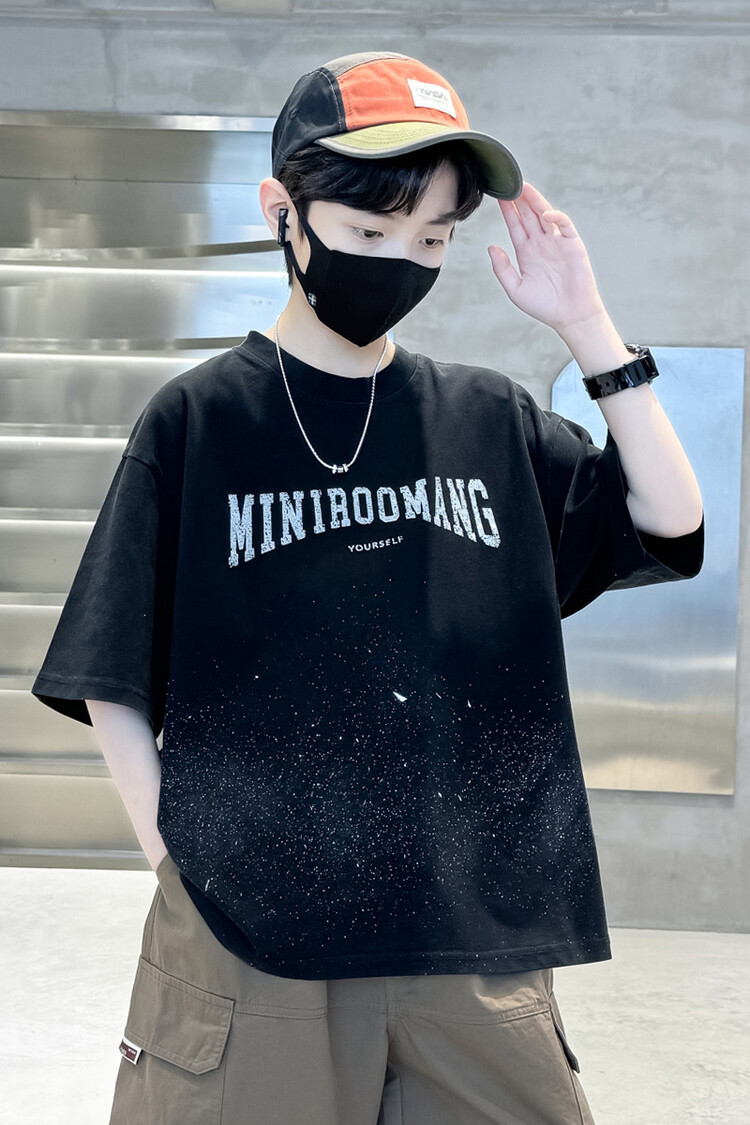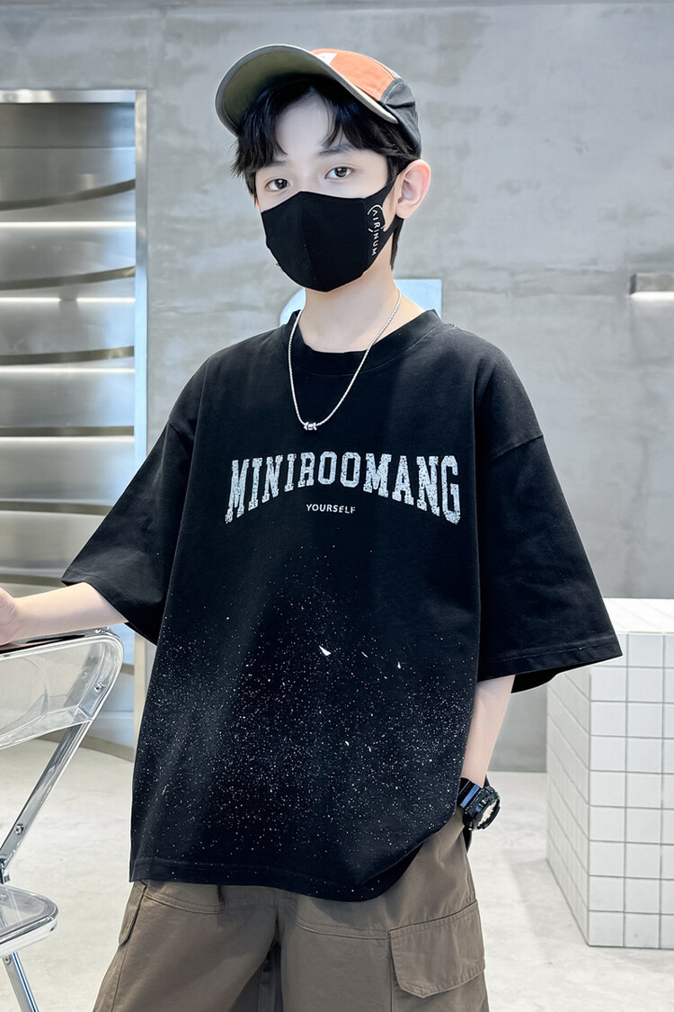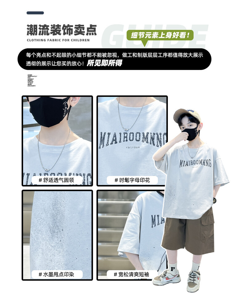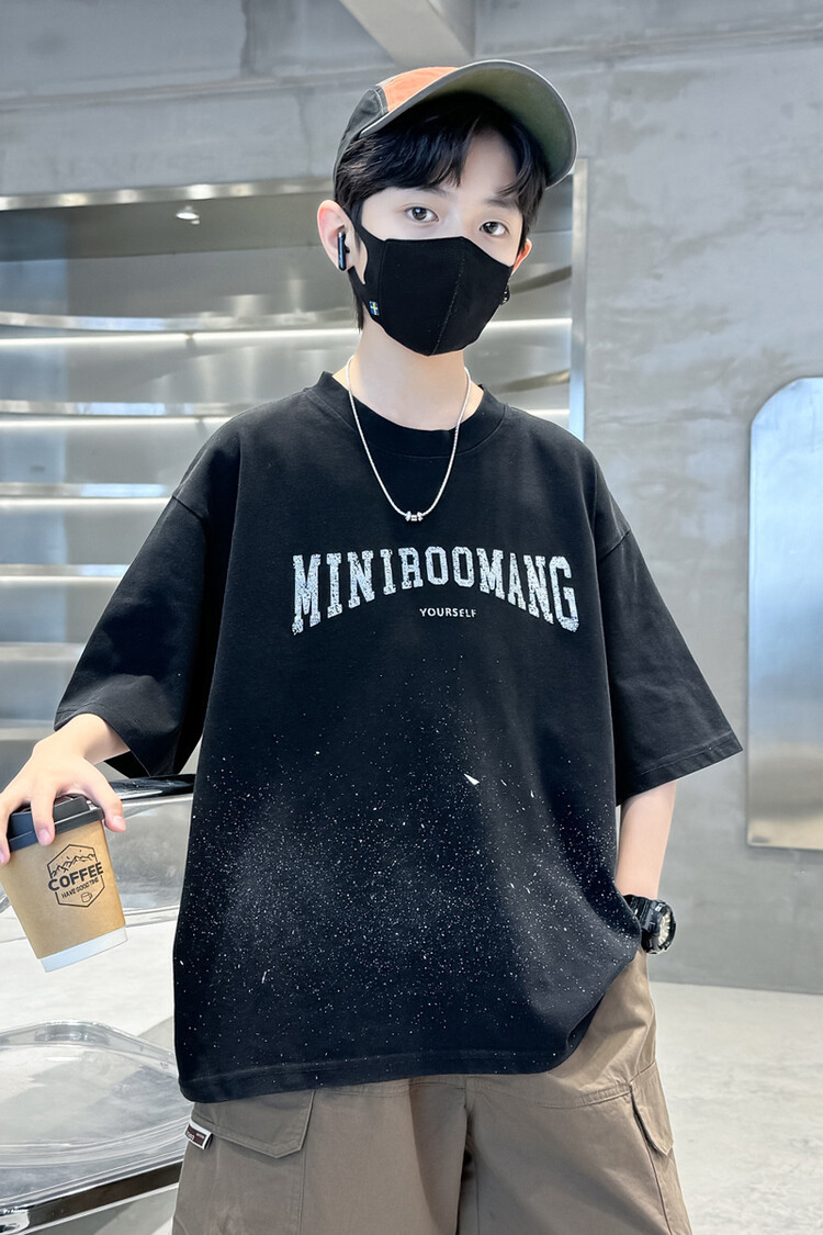 소년 여름 반팔 티셔츠 외국 스타일 프린트 캐주얼 재킷 어린이 느슨한 조커 한국 옷스토어 가기