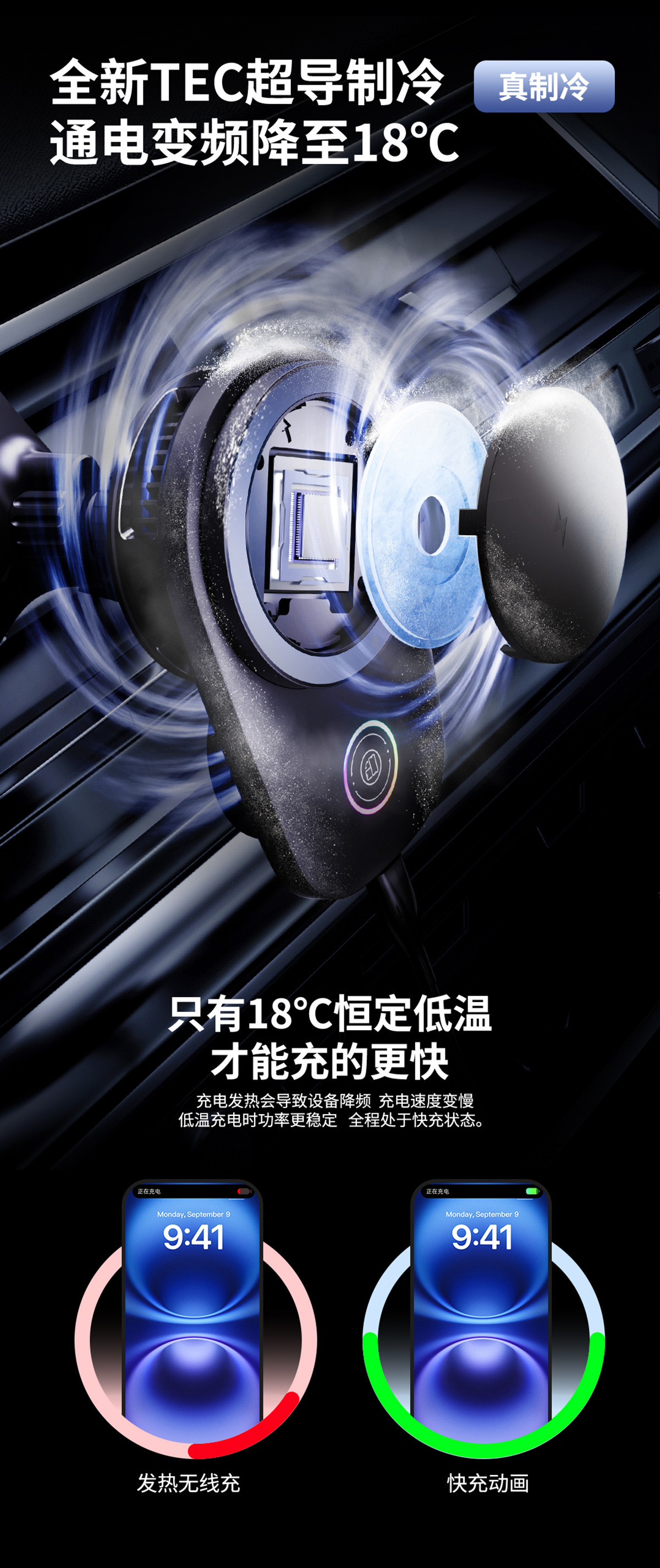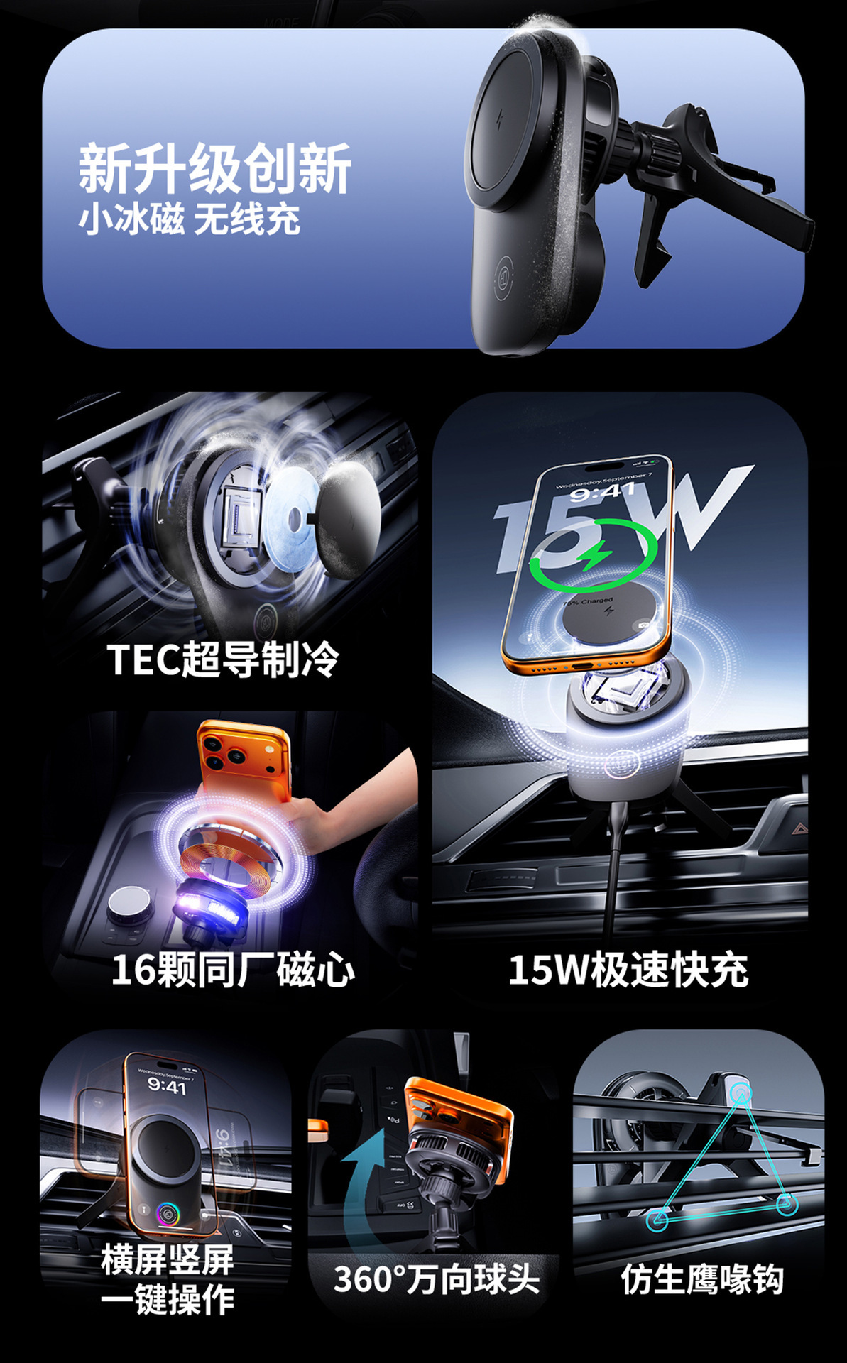 국경을 넘는 특별 공급, 즉시 출고 가능한 25W 차량용 무선 충전기, qi2 인증, 반도체 냉각 기능 탑재 차량용 무선 충전 거치대