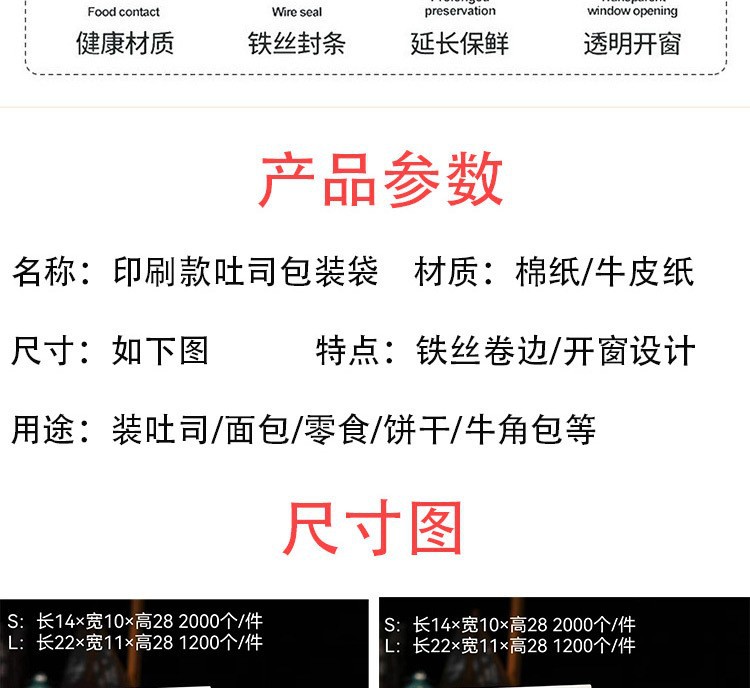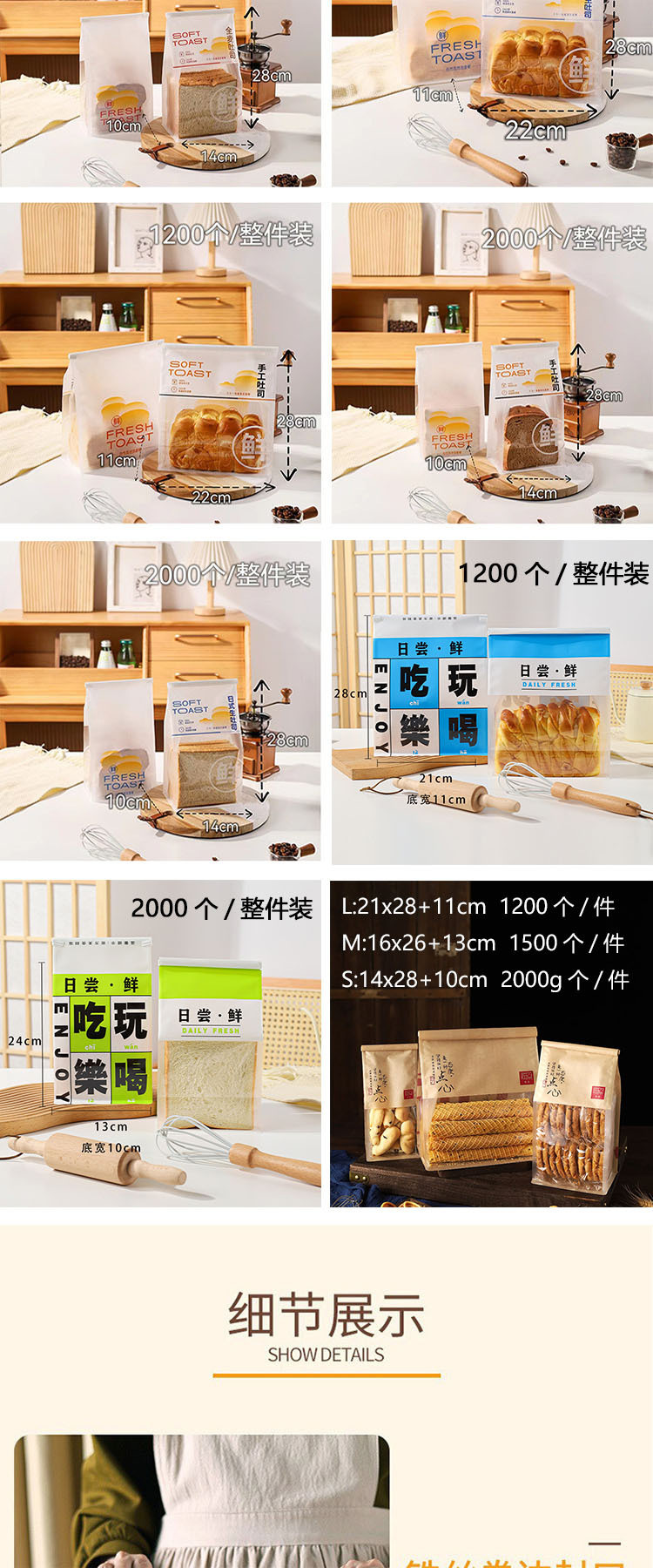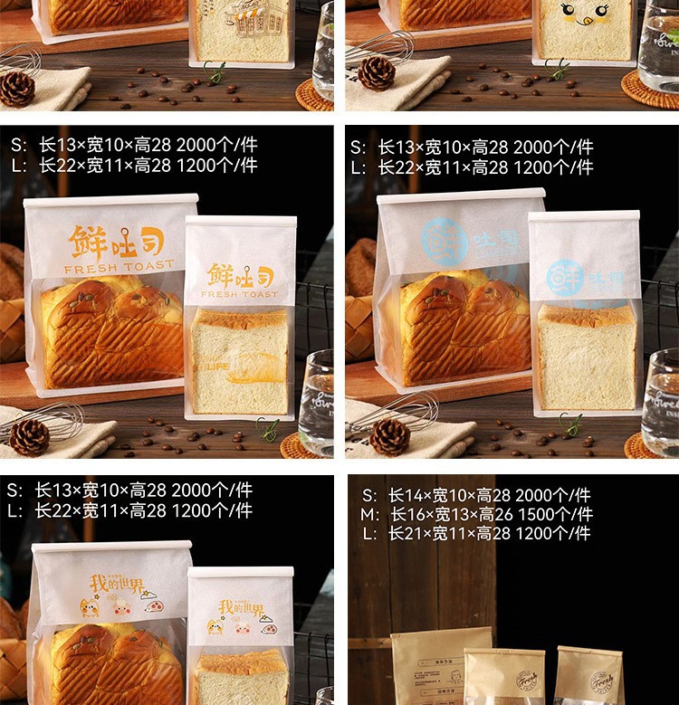 갓 구운 토스트 백 티슈 페이퍼 와이어 컬링 베이킹 얇게 썬 빵 페이스트리 포장 백 창 투명 지퍼백스토어 가기
