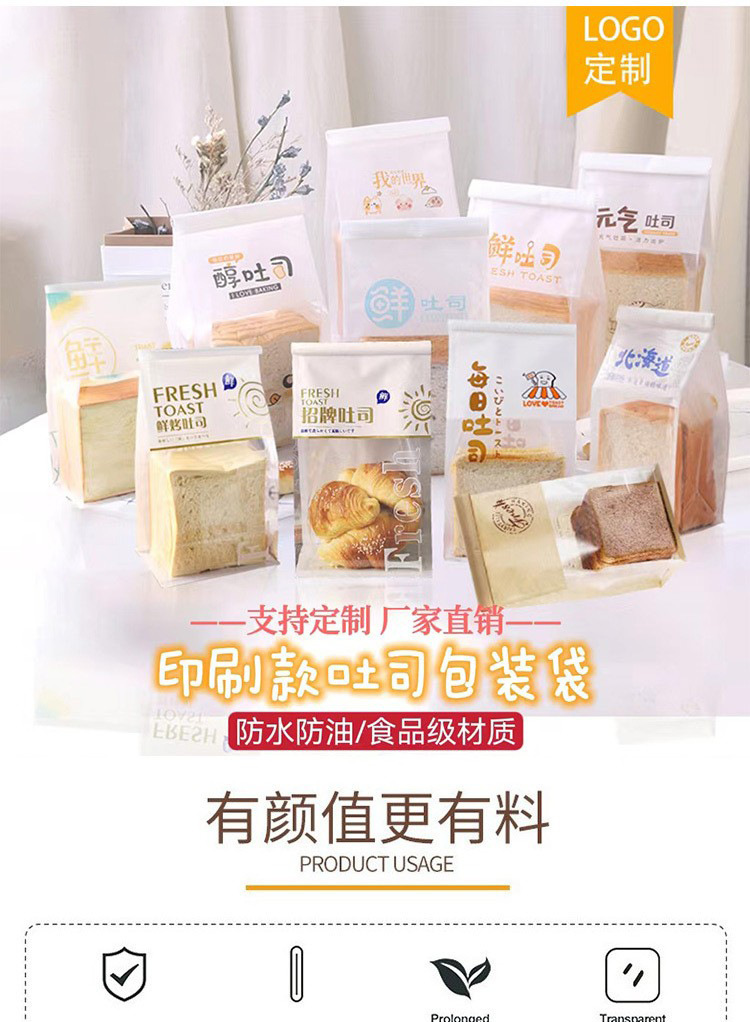 갓 구운 토스트 백 티슈 페이퍼 와이어 컬링 베이킹 얇게 썬 빵 페이스트리 포장 백 창 투명 지퍼백