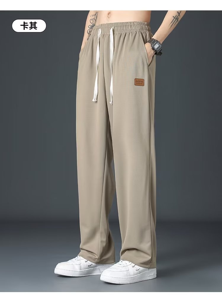 아이스 실크 바지 남자 여름 얇은 스트레이트 느슨한 빠른 건조 경량 스포츠 캐주얼 바지 하이 스트리트 미국 올 매치 바지스토어 가기