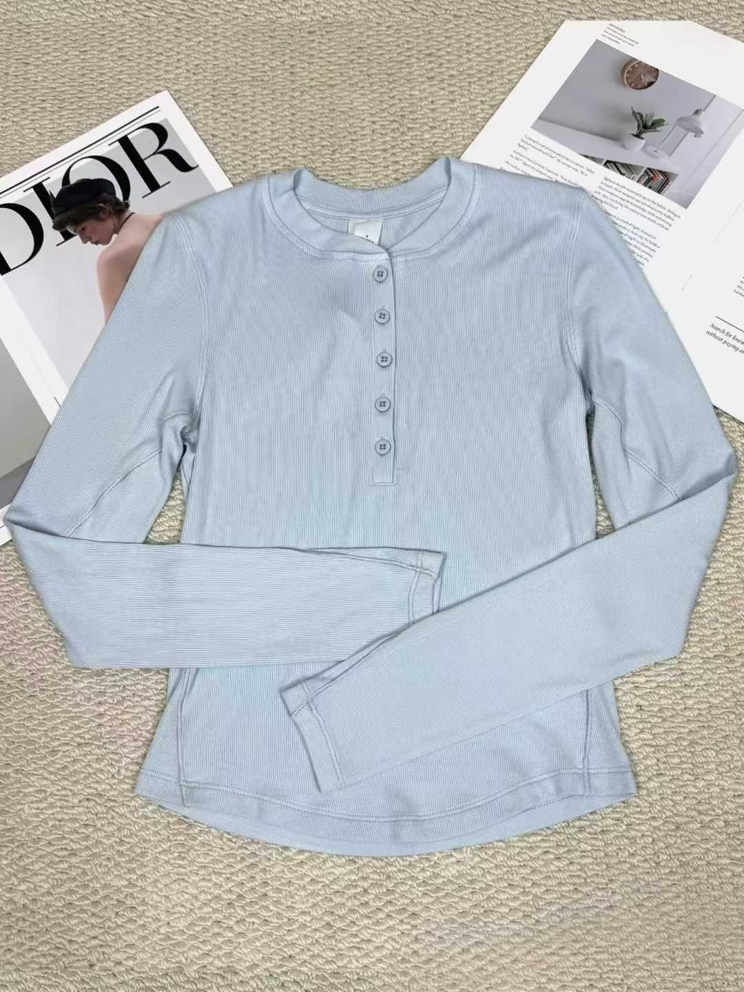 룰루 가을 헨리넥 셔츠 슬림핏 긴팔 베이스레이어 카라 버튼 리브 디테일 슬리밍 효과 뉴 스타일 통근룩 이너웨어스토어 가기