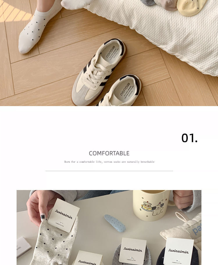 한국식 기본 양말 봄과 여름 얕은 보트 양말 여성용 일본식 양말 여성용 솔리드 컬러 도트 온 힐 보이지 않는 양말스토어 가기