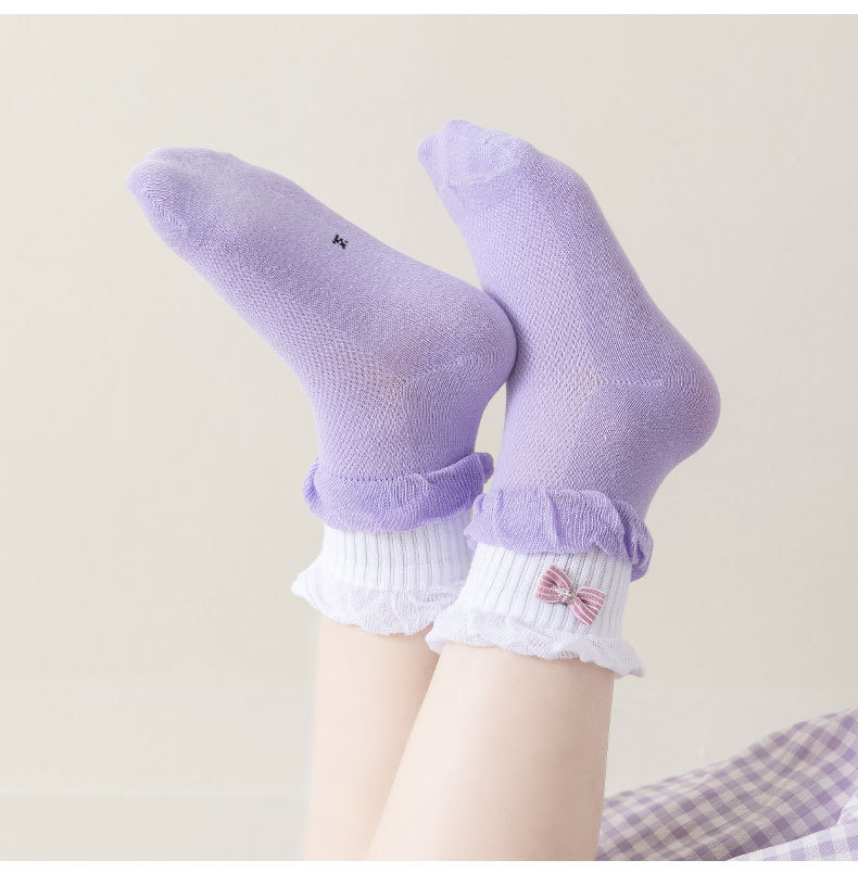 여름 어린이 메쉬 양말 한국 스타일 캔디 컬러 레이스 걸스 미드 배럴 목회 스타일 트렌디 한 여자 스타킹