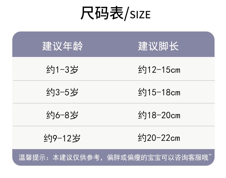 • S 코드 (1-3 세) [추천 신발 사이즈 17-20]]