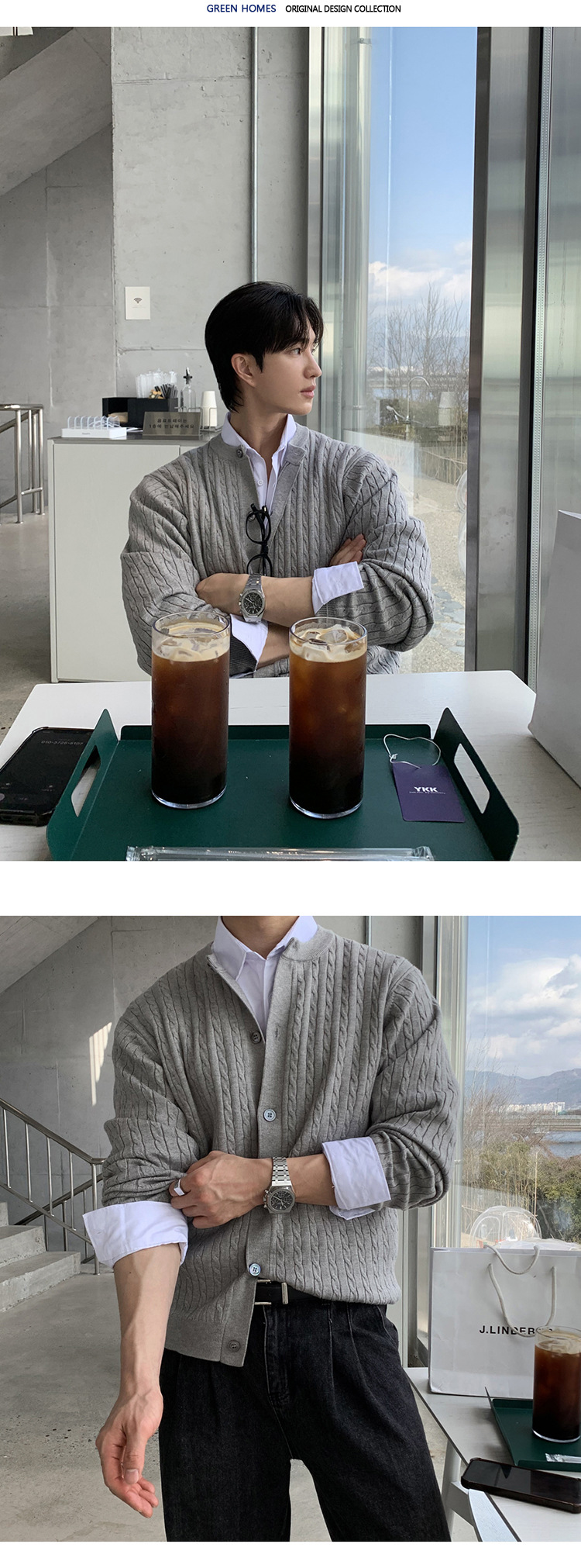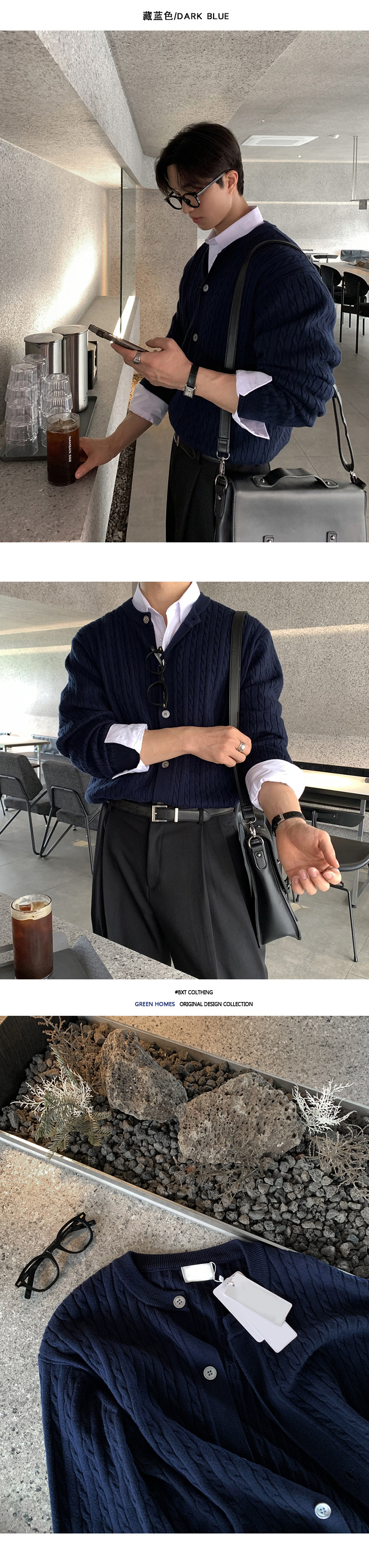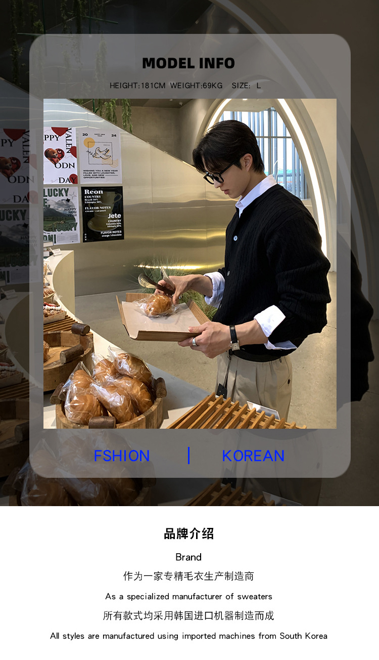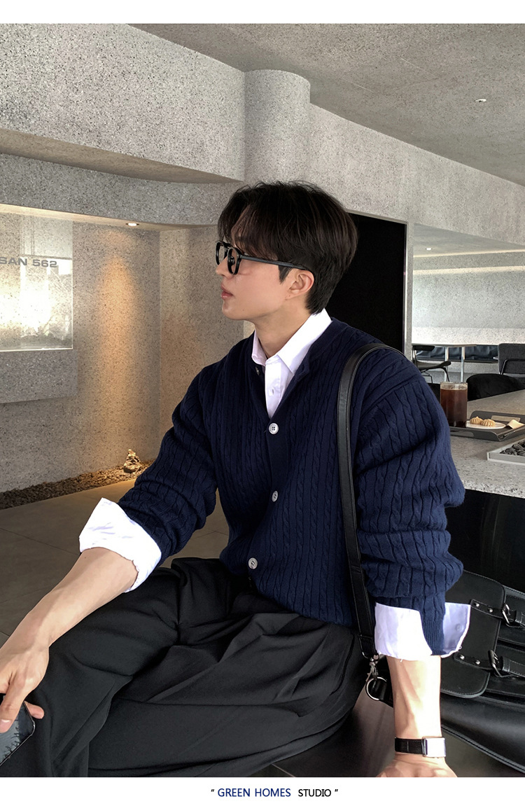 ASCLO 한국 남자 니트 카디건 봄 새로운 올매치 틈새 디자인 대마 패턴 하이 엔드 캐주얼 스웨터스토어 가기