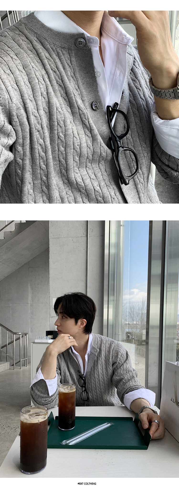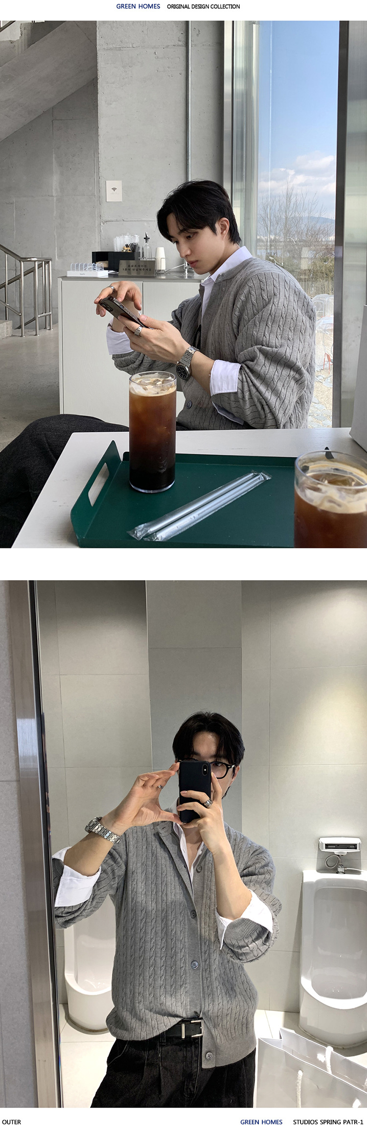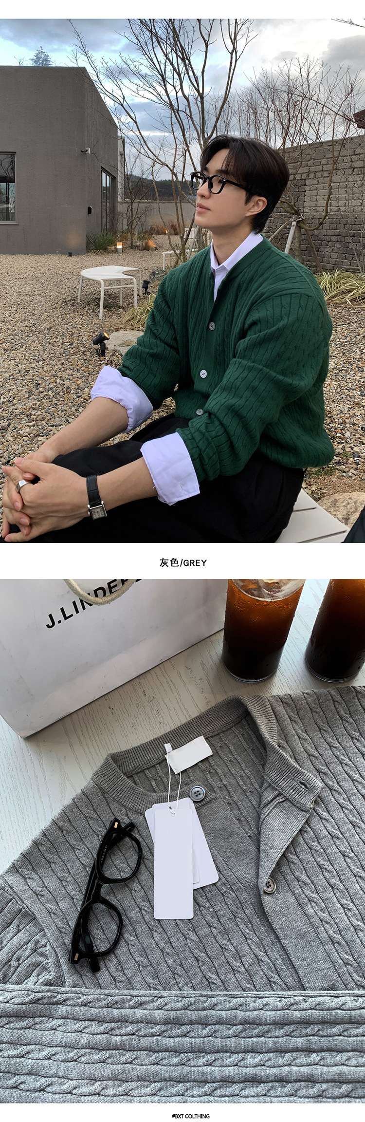 ASCLO 한국 남자 니트 카디건 봄 새로운 올매치 틈새 디자인 대마 패턴 하이 엔드 캐주얼 스웨터스토어 가기