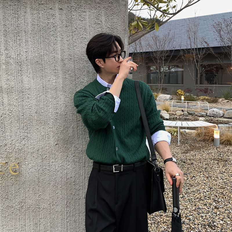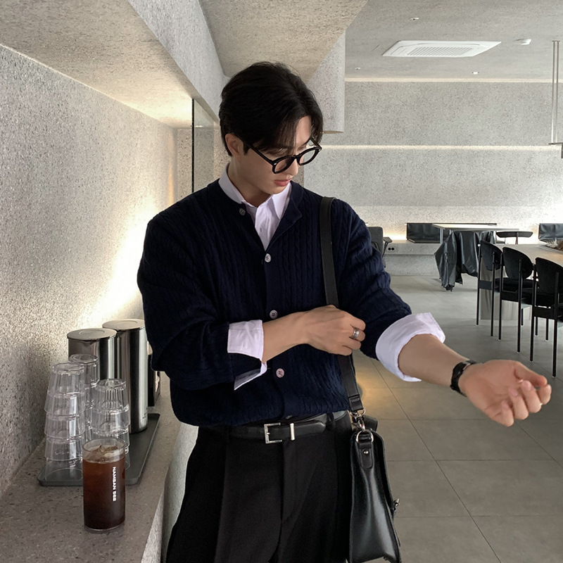 ASCLO 한국 남자 니트 카디건 봄 새로운 올매치 틈새 디자인 대마 패턴 하이 엔드 캐주얼 스웨터