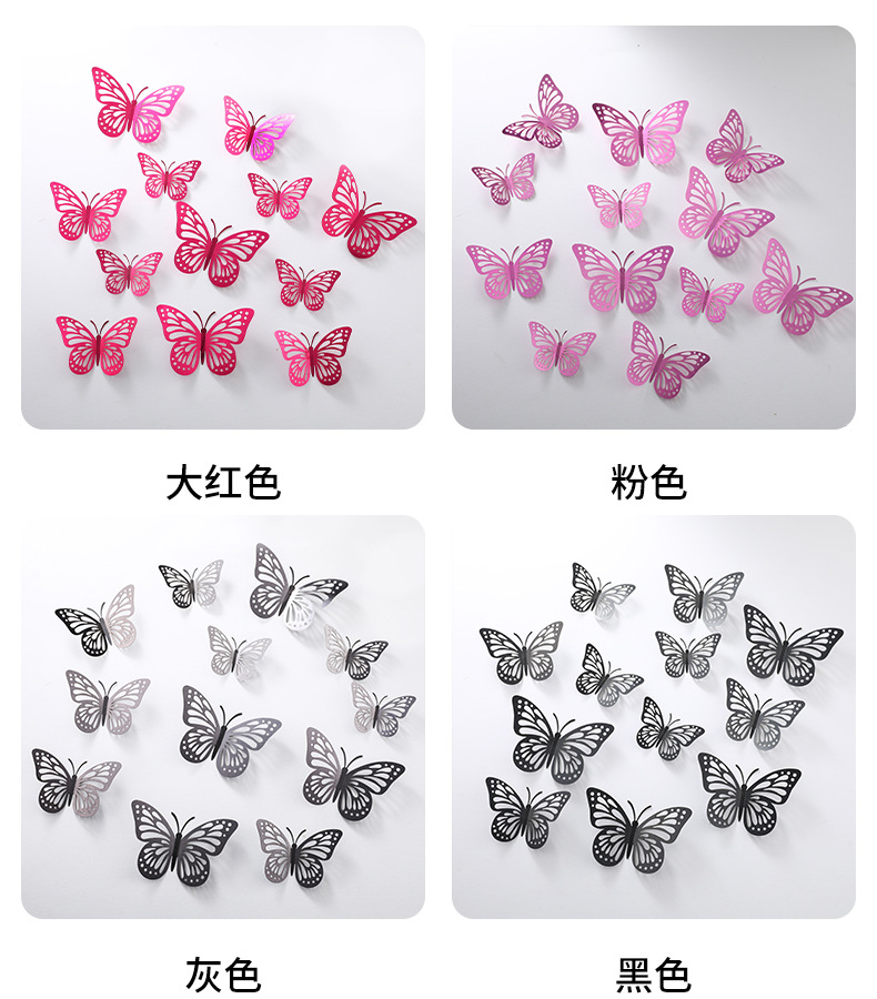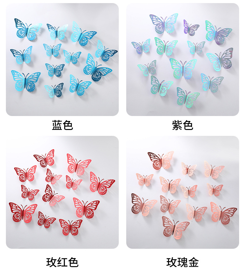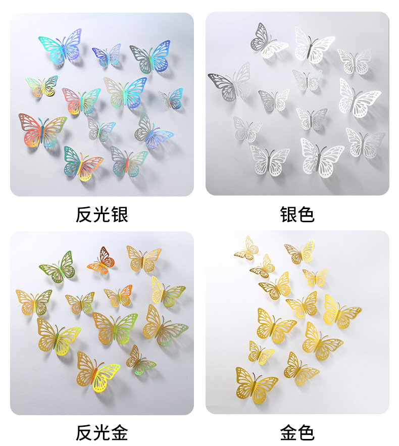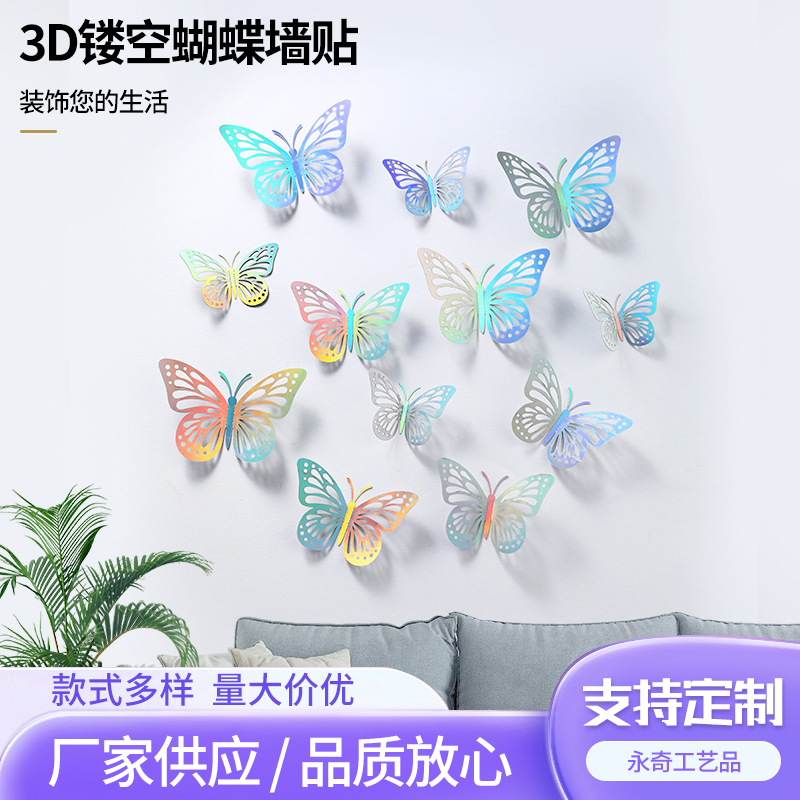 P 12 3D 금속 질감 중공 나비 국경 대외 무역 벽 스티커 3 차원 시뮬레이션 나비 홈 스티커