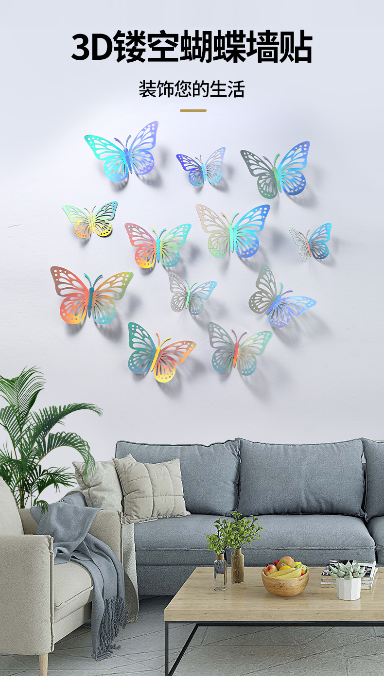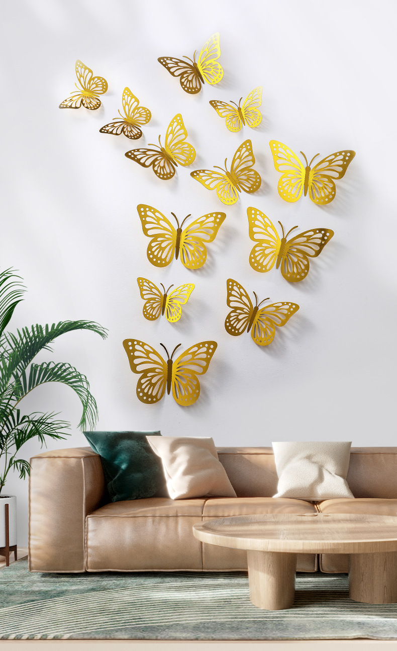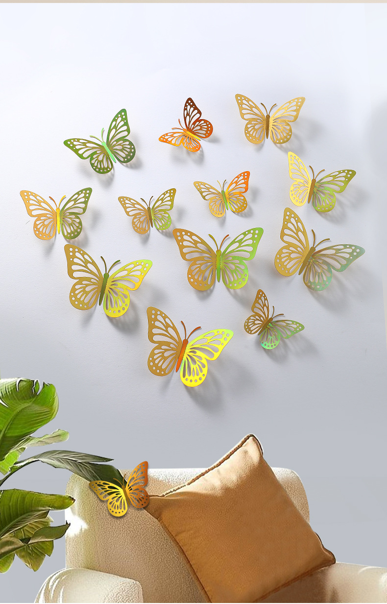 P 12 3D 금속 질감 중공 나비 국경 대외 무역 벽 스티커 3 차원 시뮬레이션 나비 홈 스티커스토어 가기