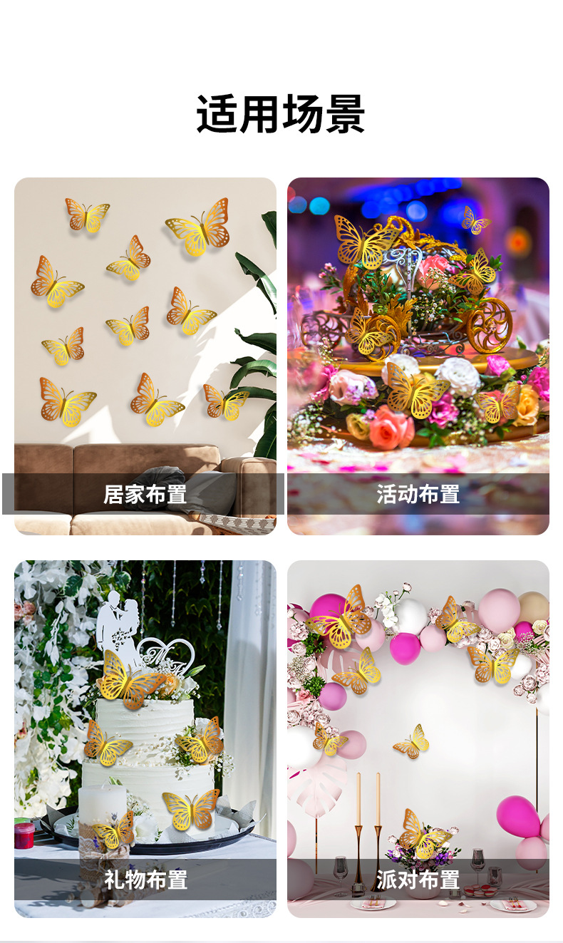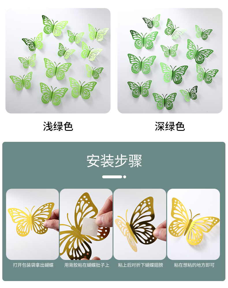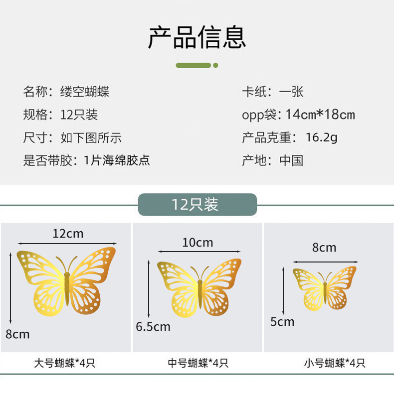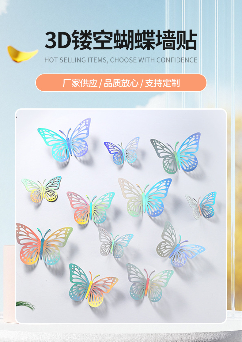 P 12 3D 금속 질감 중공 나비 국경 대외 무역 벽 스티커 3 차원 시뮬레이션 나비 홈 스티커스토어 가기