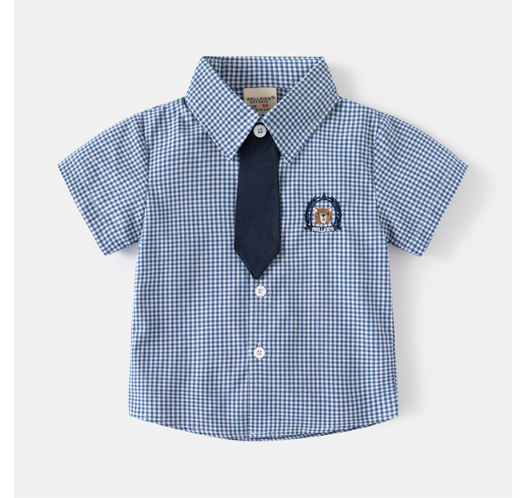 어린이 의류 여름 반팔 셔츠 새 소년 체크 무늬 패션 셔츠 어린이 스퀘어 칼라 탑 카디건스토어 가기