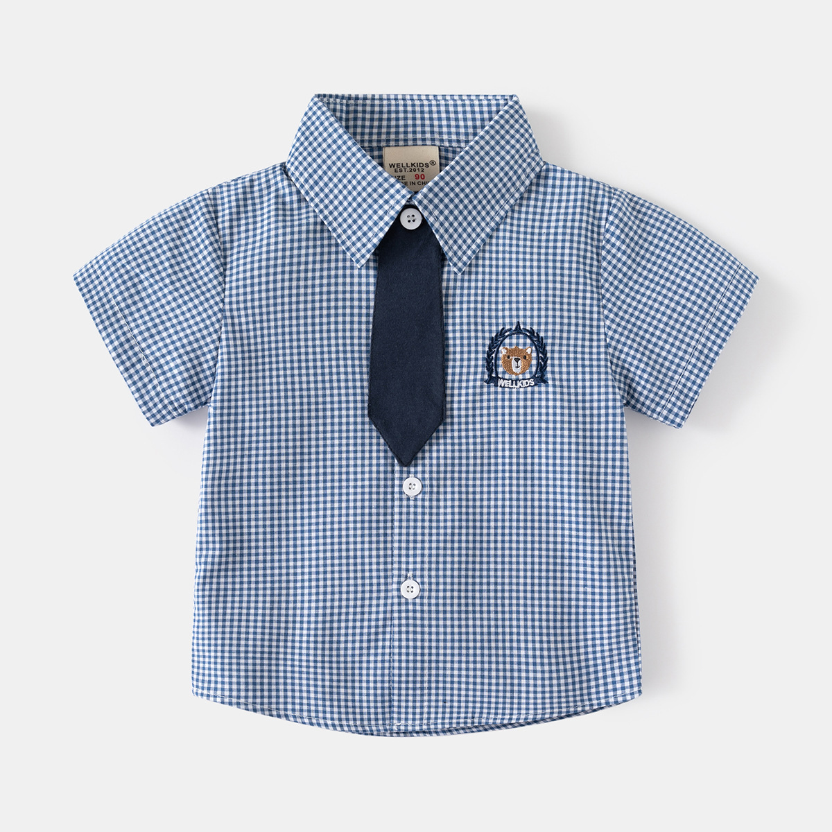 어린이 의류 여름 반팔 셔츠 새 소년 체크 무늬 패션 셔츠 어린이 스퀘어 칼라 탑 카디건