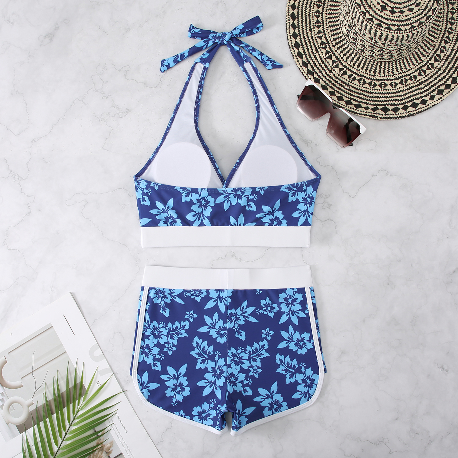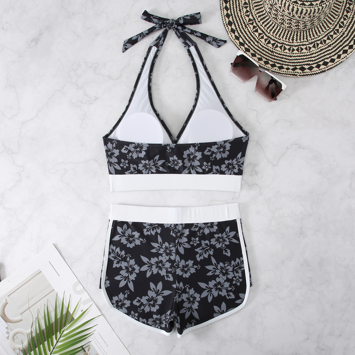 2025 유럽과 미국의 새로운 스타일 프린트 홀터넥 스트랩 비키니 하이 웨이스트 여성 수영복 스포츠 대외 무역 인기 비키니스토어 가기