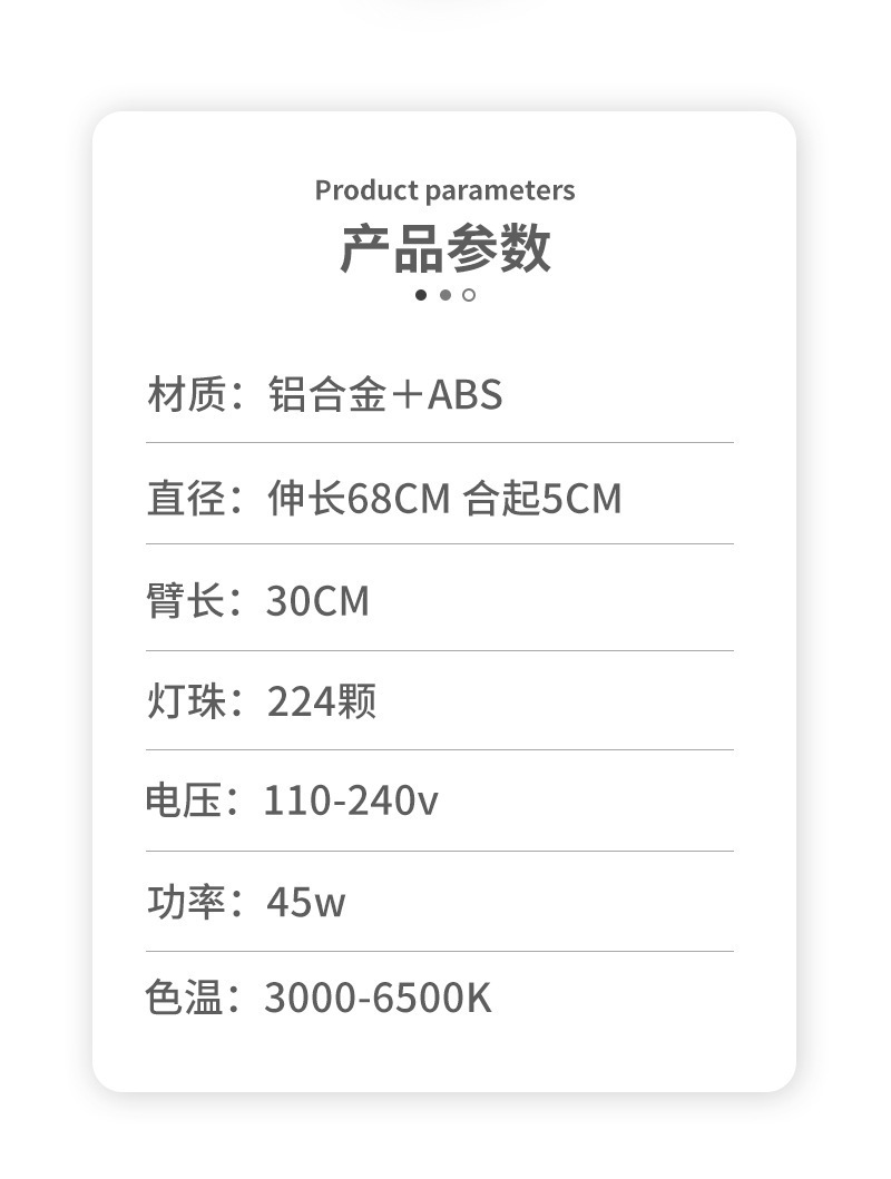 22inch 더블 암 필 라이트 접이식 LED 뷰티 및 피부 회춘 사진 조명 휴대 전화 사진 사진 라이브 방송 deng