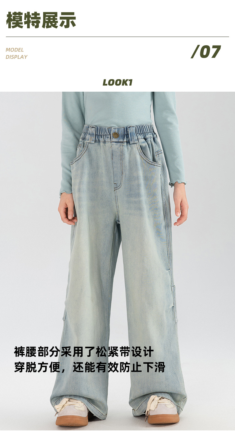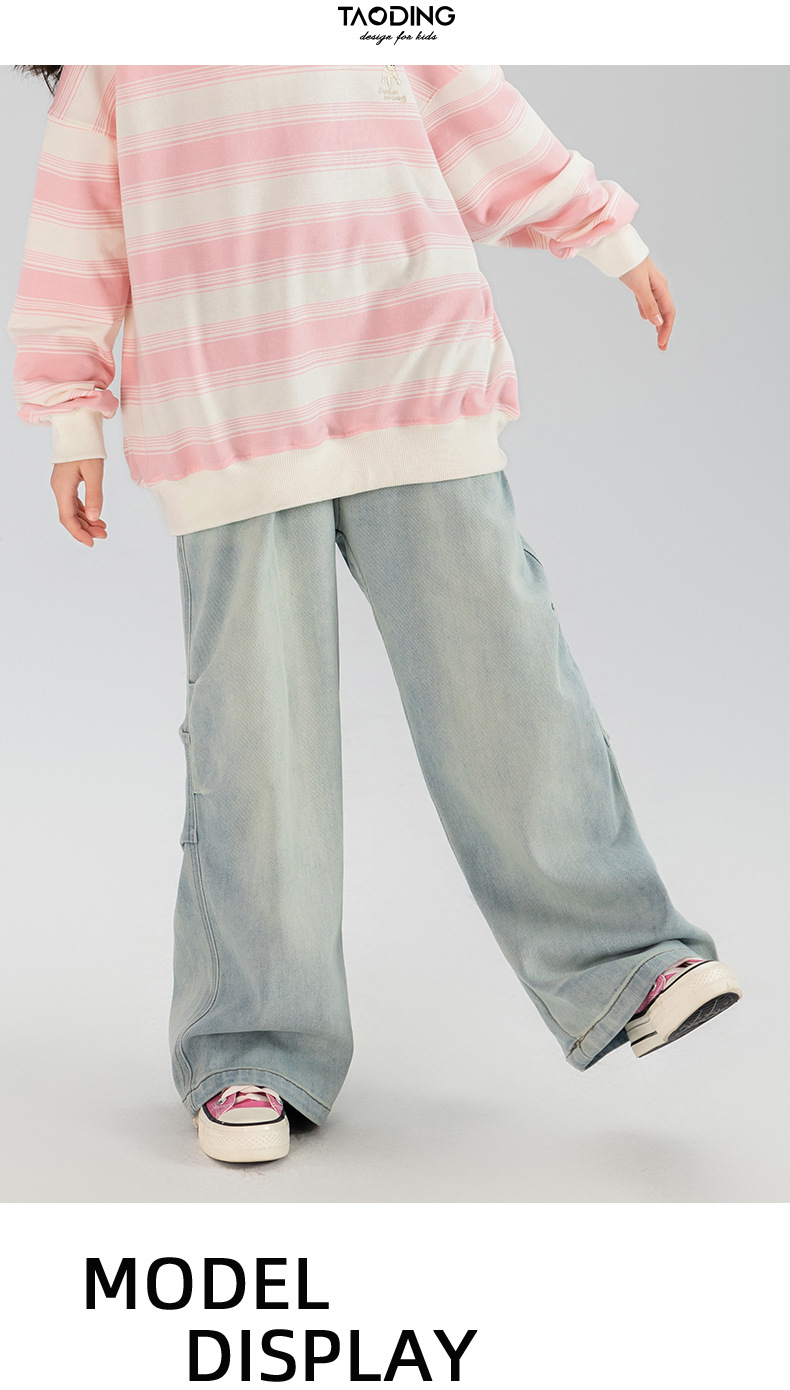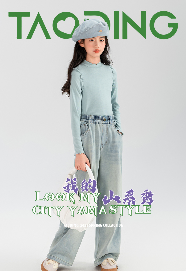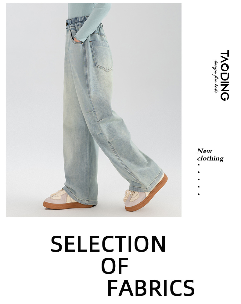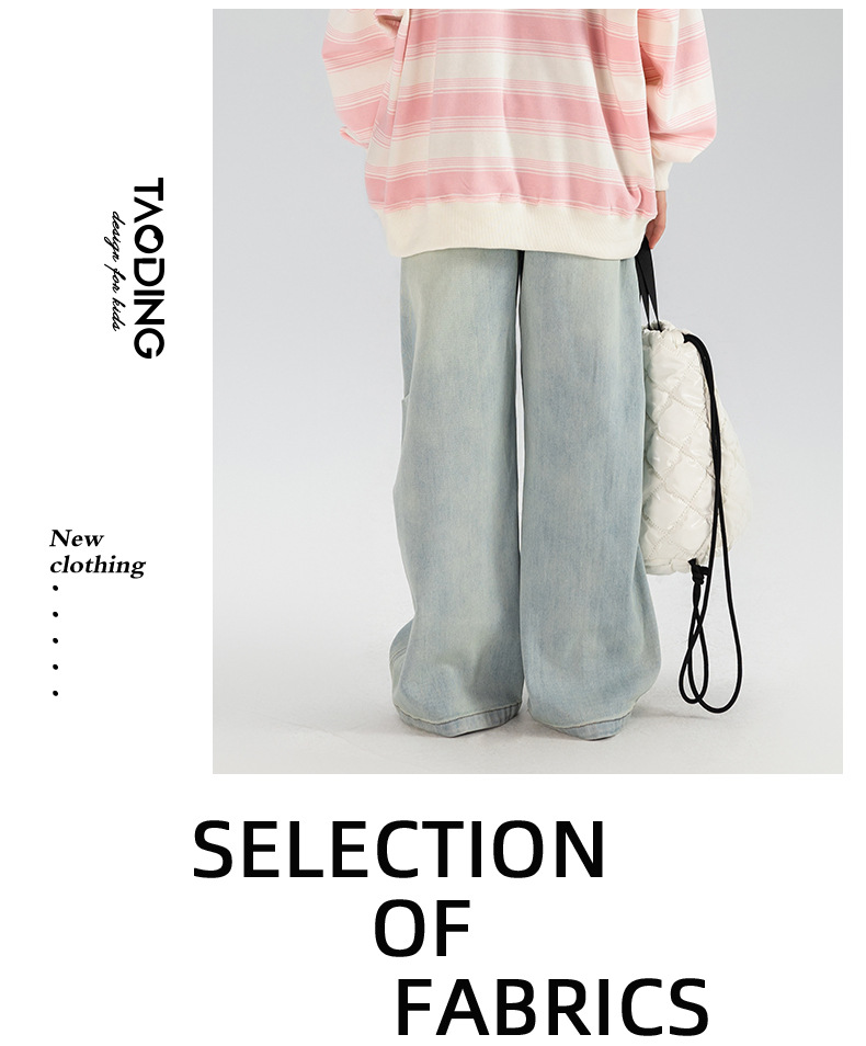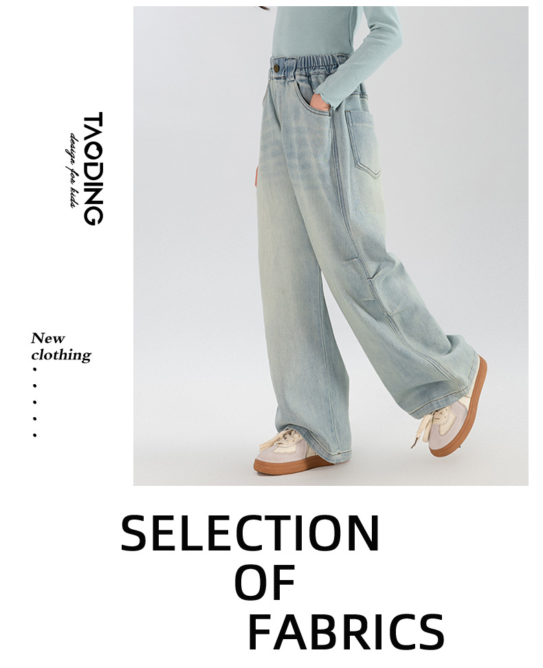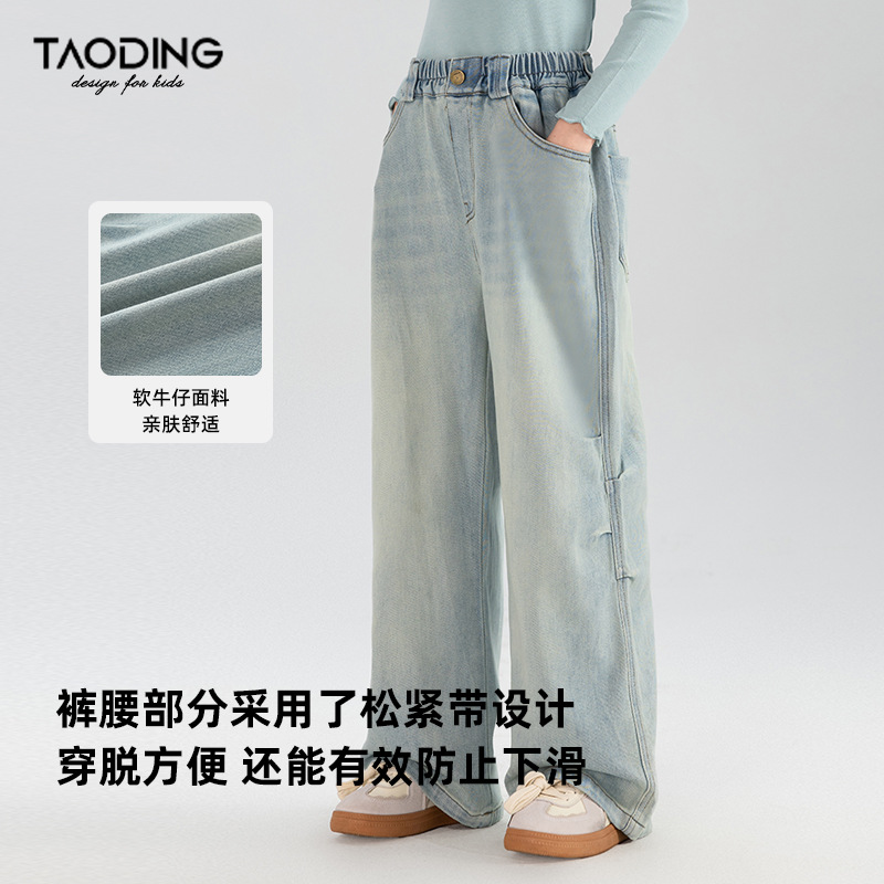 타오딩 여아 데님 팬츠 연한 색상 레트로 봄 가을 신상 중대형 여아 캐주얼 만능 주름 스트레이트 팬츠스토어 가기