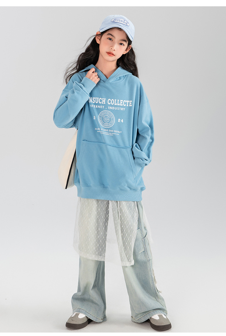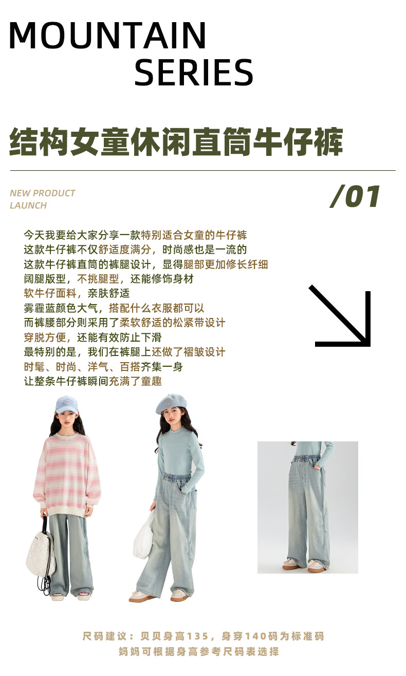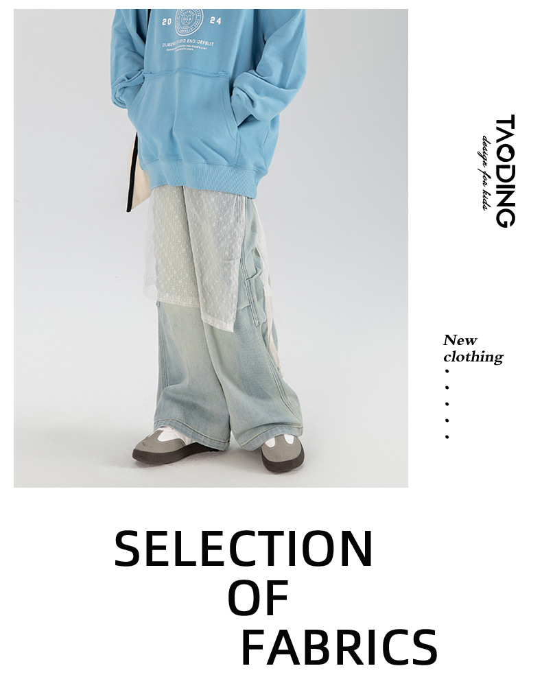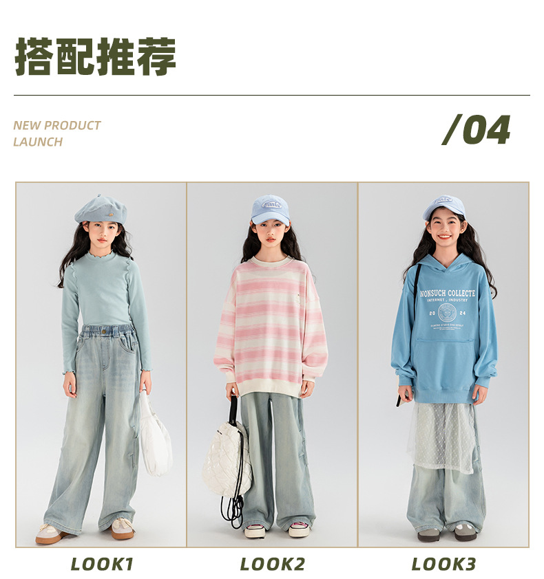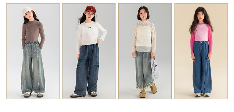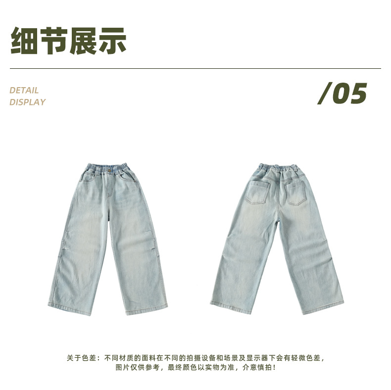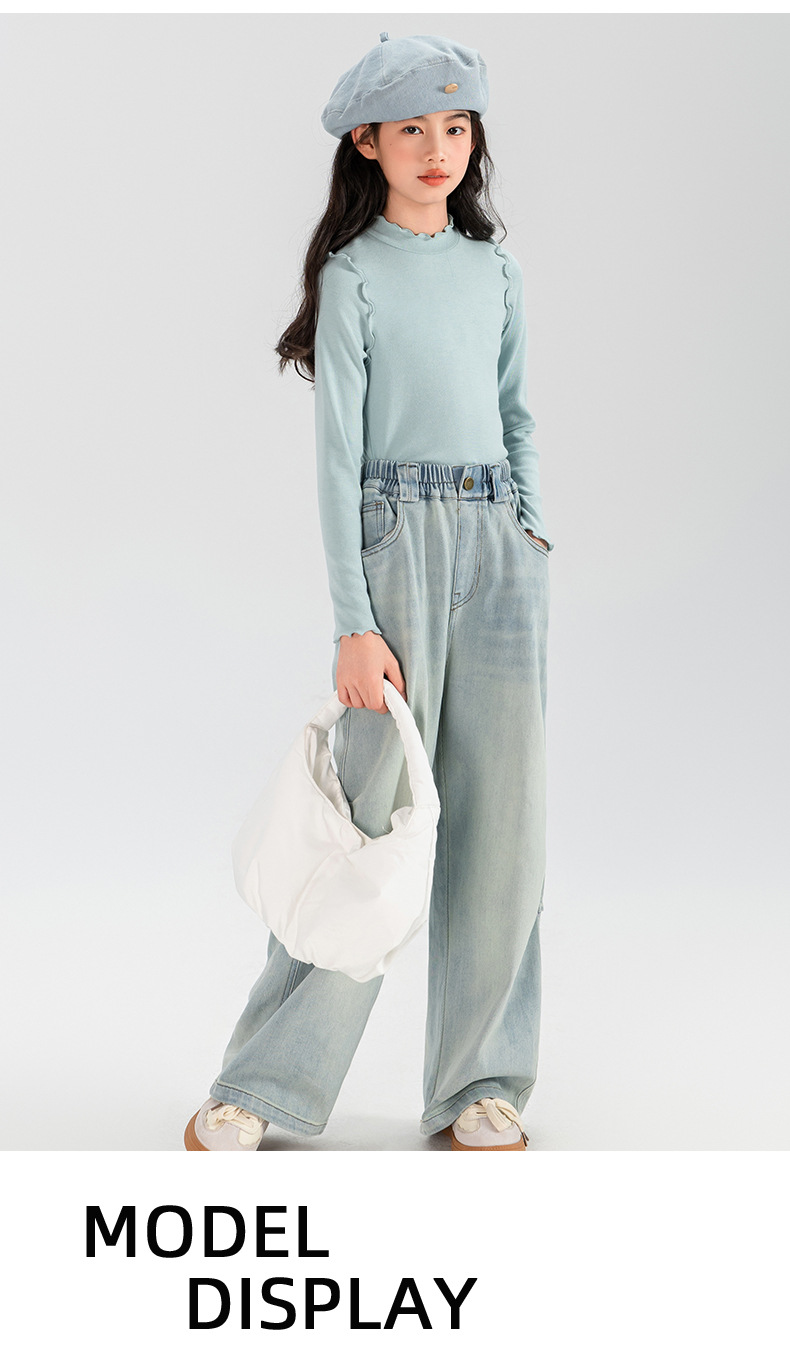 타오딩 여아 데님 팬츠 연한 색상 레트로 봄 가을 신상 중대형 여아 캐주얼 만능 주름 스트레이트 팬츠스토어 가기