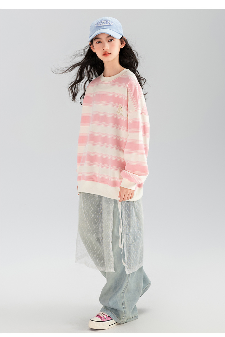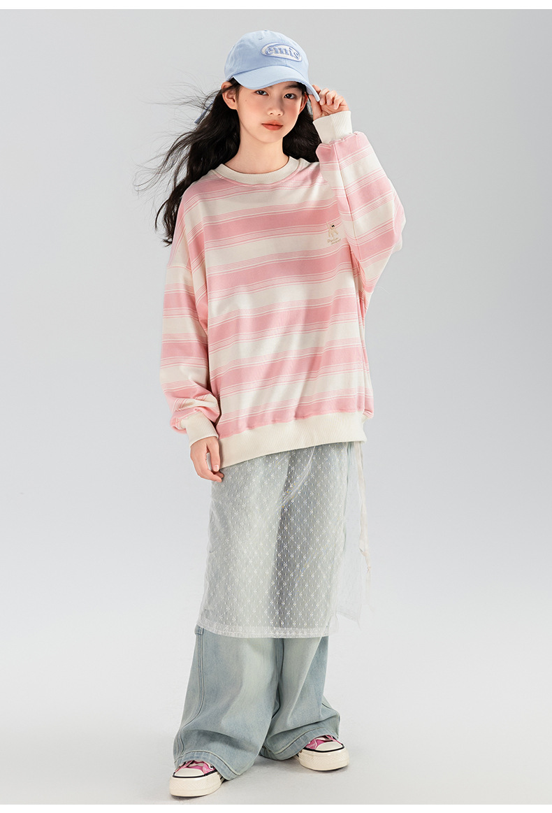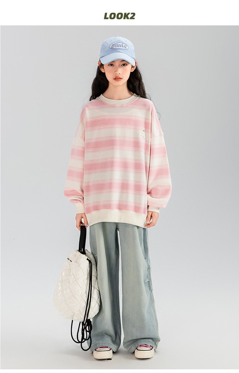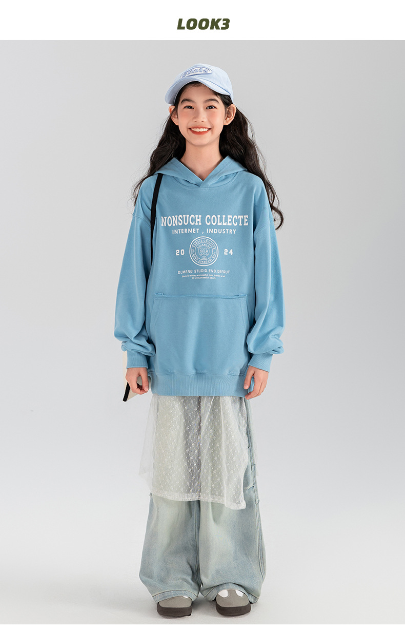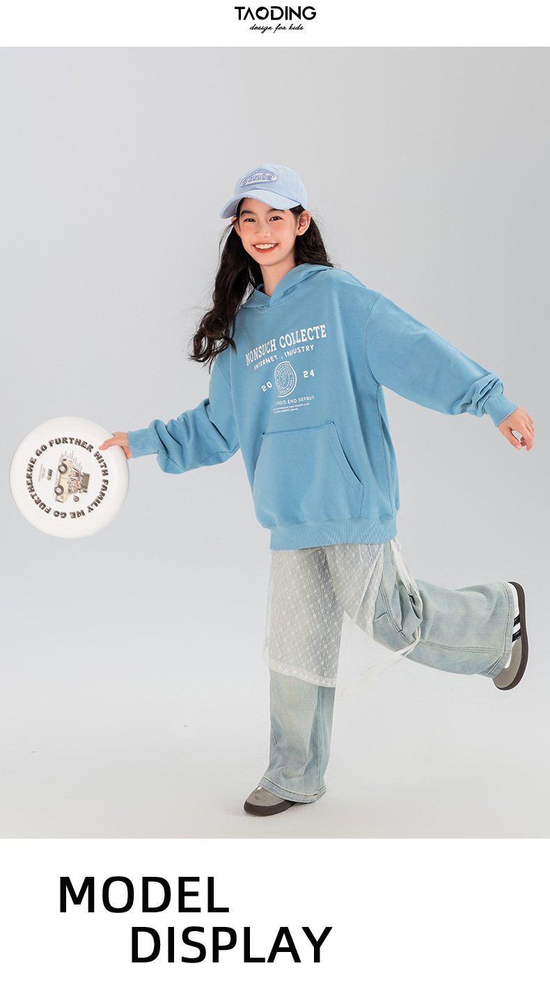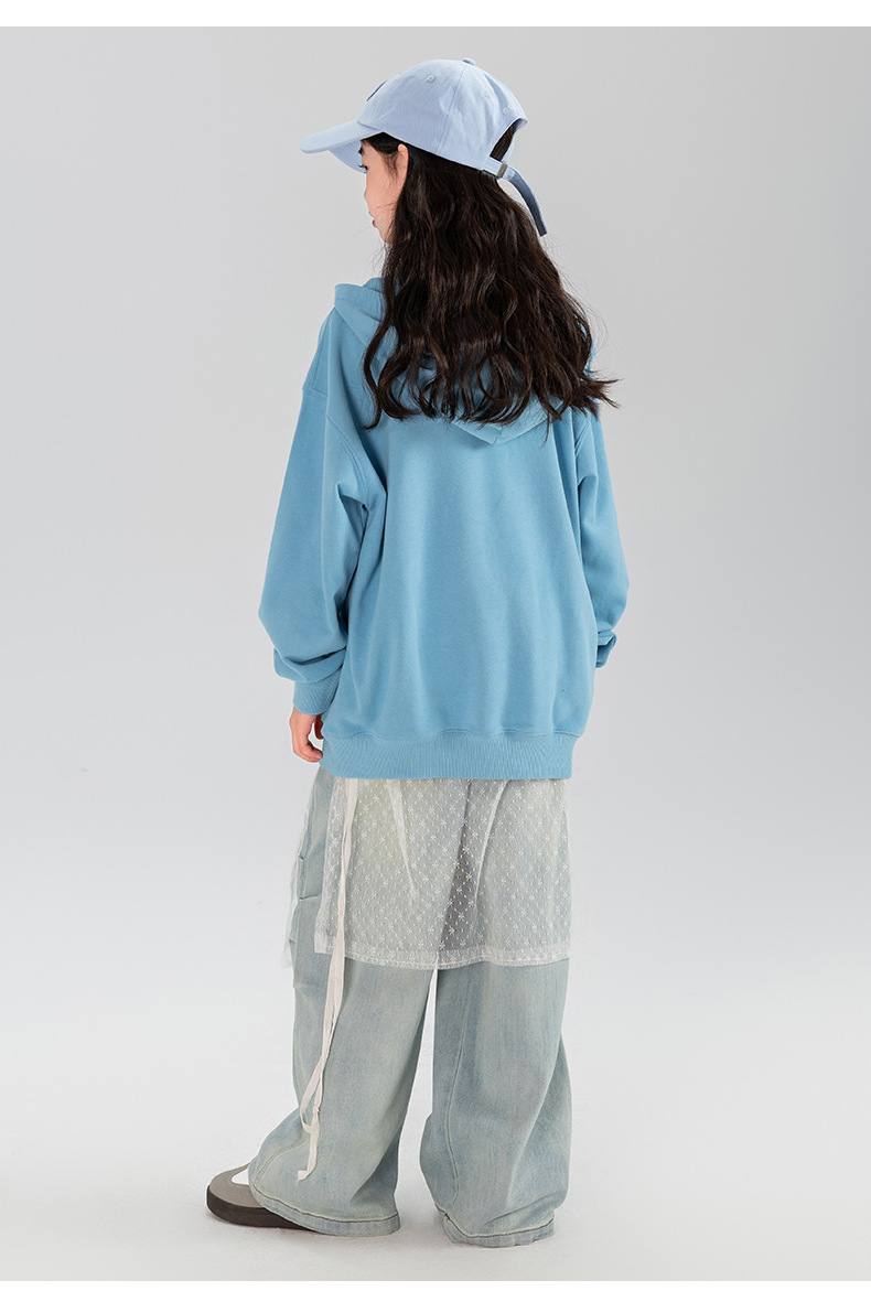 타오딩 여아 데님 팬츠 연한 색상 레트로 봄 가을 신상 중대형 여아 캐주얼 만능 주름 스트레이트 팬츠스토어 가기