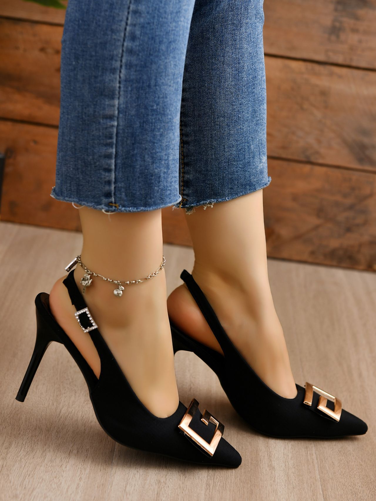 2024 국경 유럽 및 미국 Baotou 하이힐 샌들 여성의 새로운 뾰족한 빈 금속 버클 샌들 고급 힐 스팟 도매