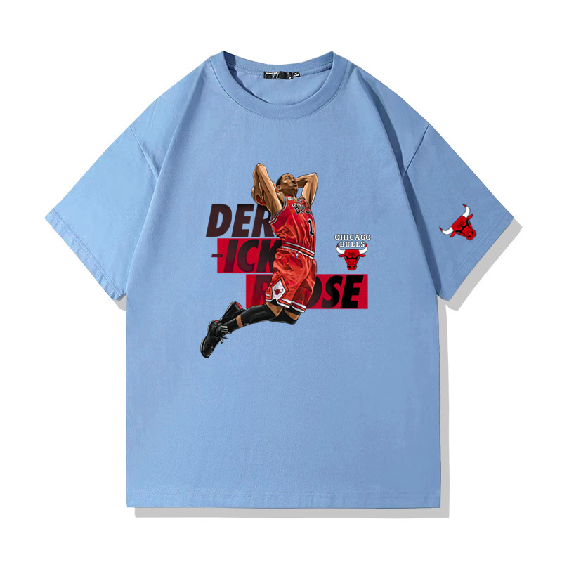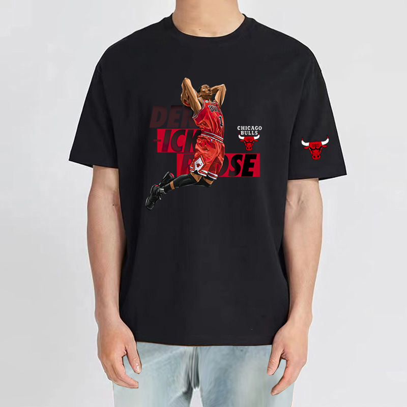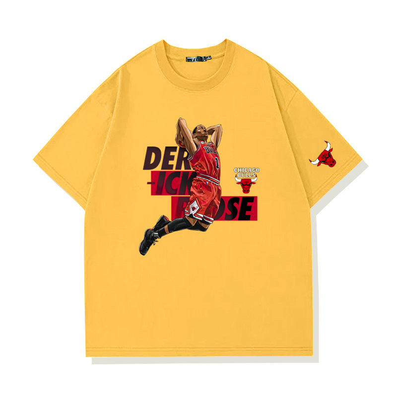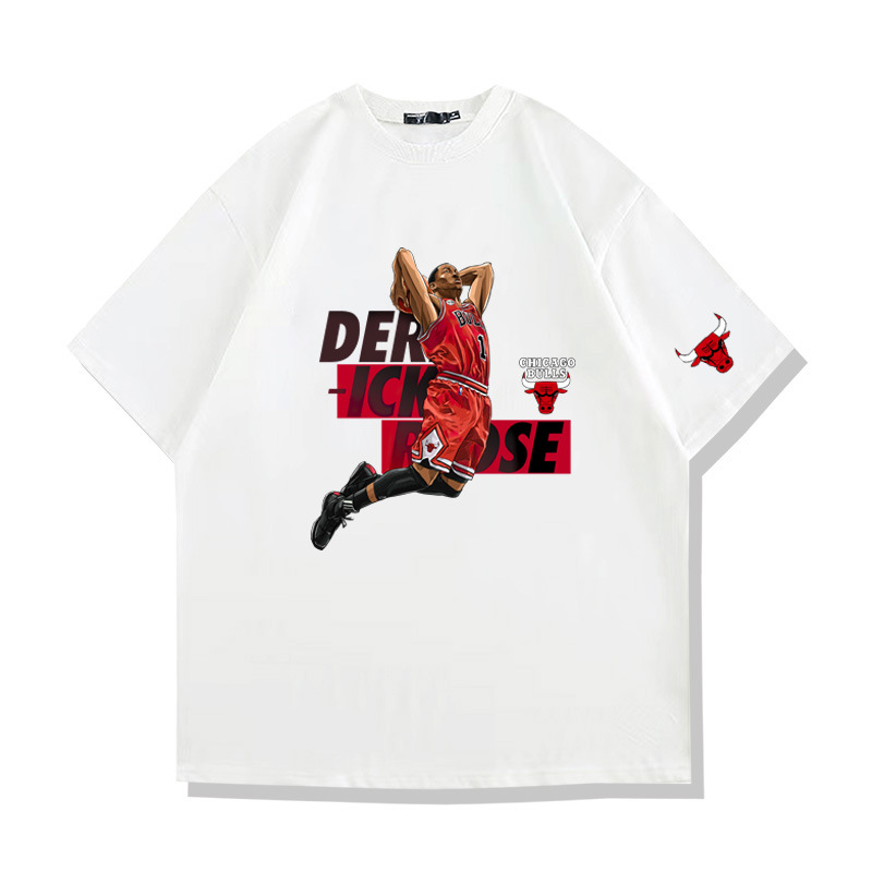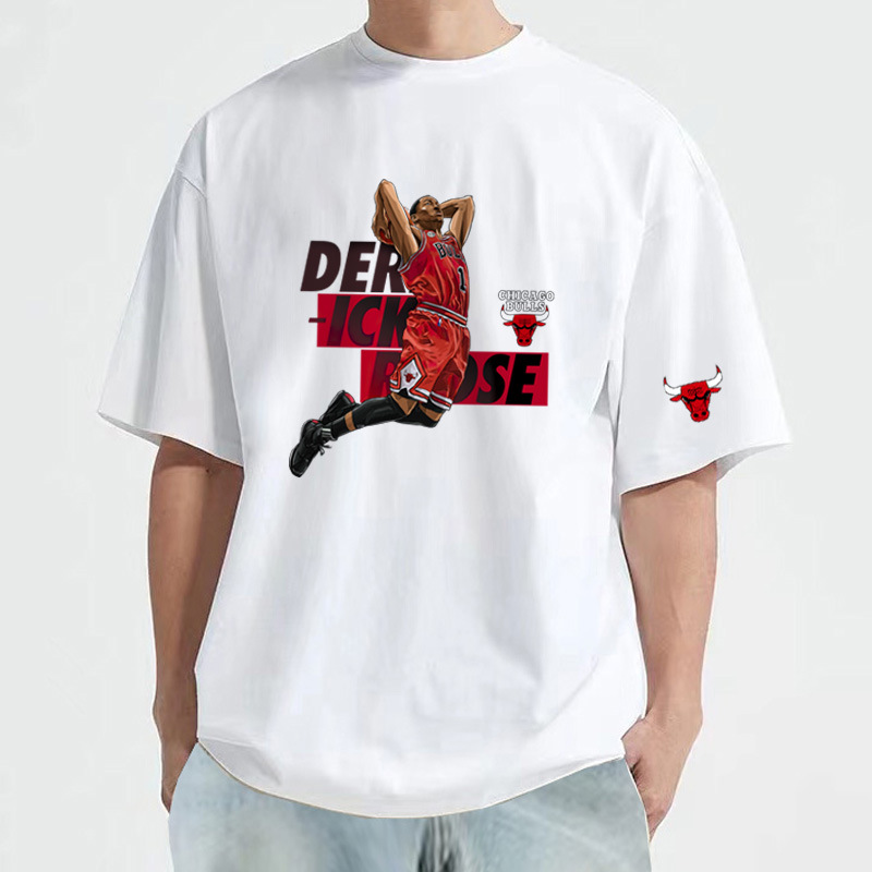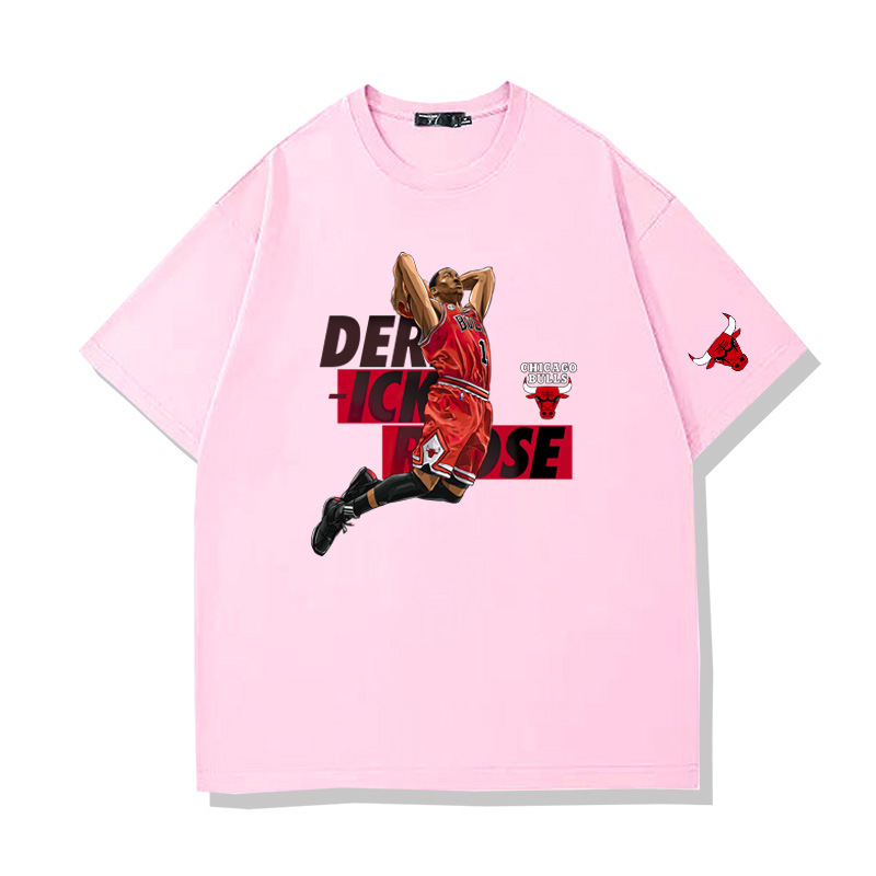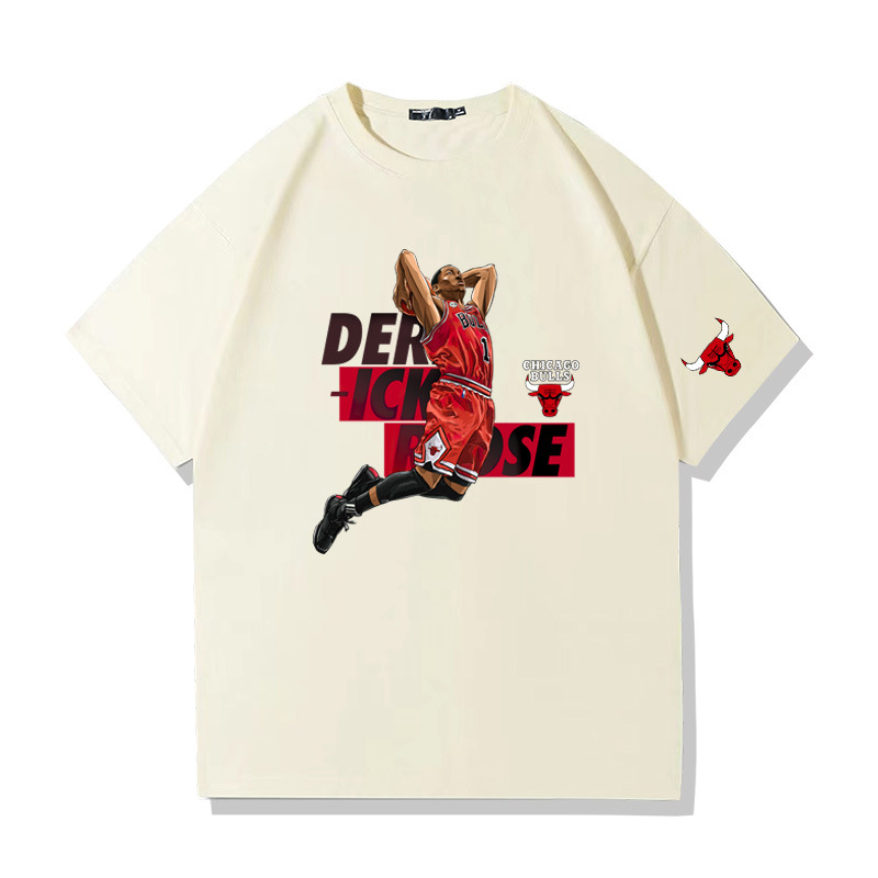 로즈 코튼 반팔 티셔츠 주변의 농구 스타 남자 여름 패션 브랜드 루즈 숄더 반소매 탑