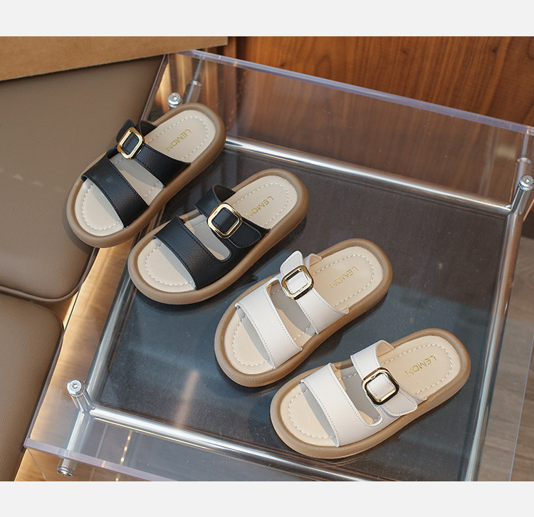 어린이용 부드러운 밑창 슬리퍼 2025 여름 신상 중대형 어린이용 패션 외출용 플랫 오픈토 샌들 남녀공용 신발 트렌드스토어 가기