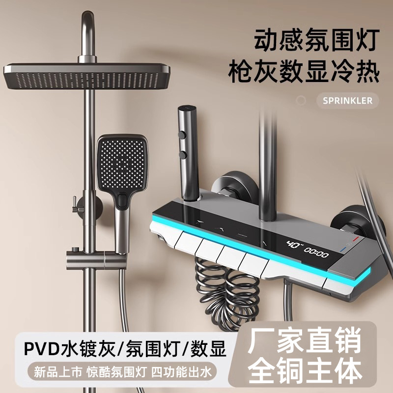 욕실 샤워건, 그레이 샤워헤드, 호텔 전용 샤워 풀세트, 디지털 디스플레이, 분위기 조명 세트, 도매, 온도조절 기능
