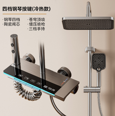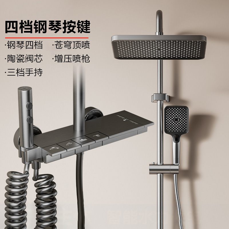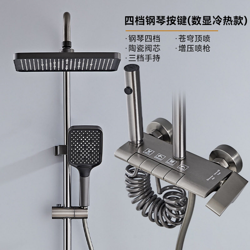 욕실 샤워건, 그레이 샤워헤드, 호텔 전용 샤워 풀세트, 디지털 디스플레이, 분위기 조명 세트, 도매, 온도조절 기능스토어 가기
