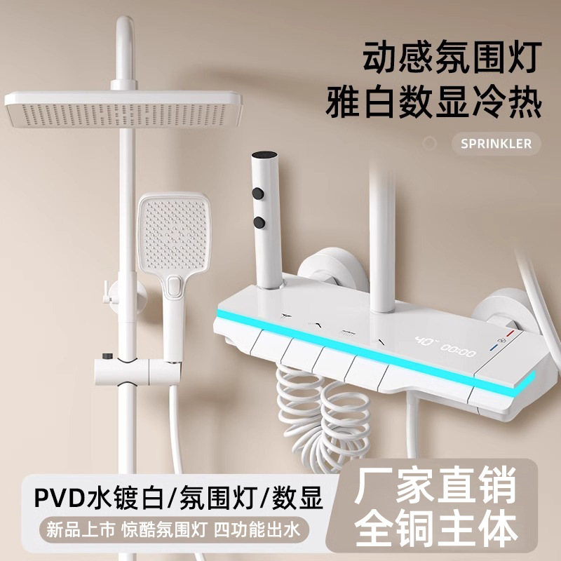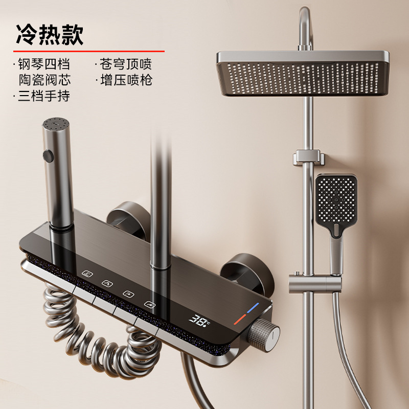花洒套装恒温淋浴数显卫生间浴室淋雨浴室全铜沐浴增压花洒喷头暗装钢琴花洒全套带氛围灯