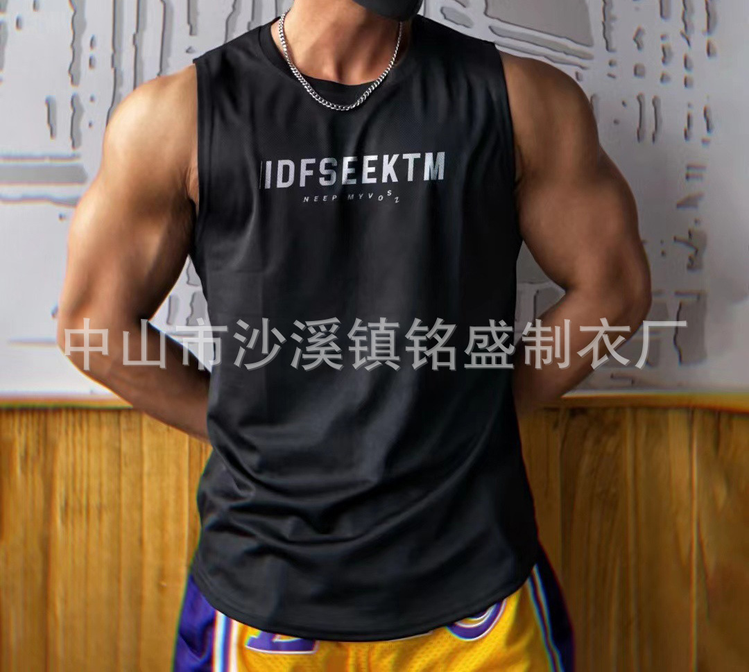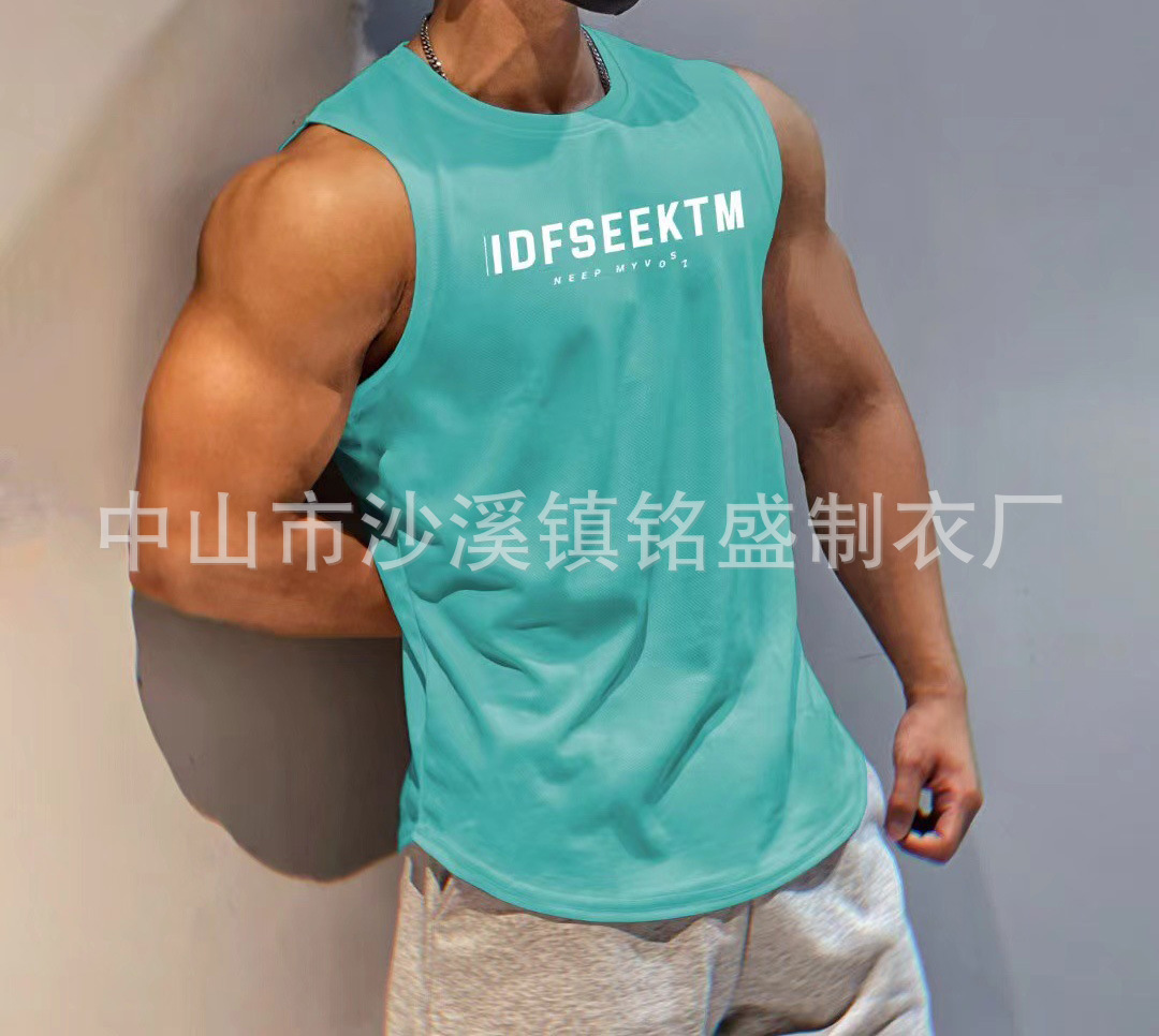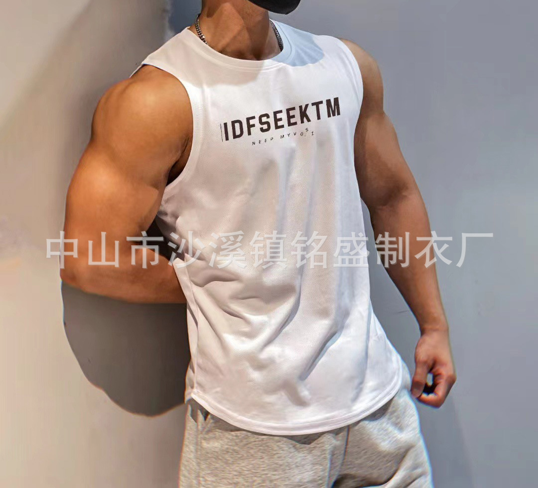 맞춤형 근육질 남성용 피트니스 속건성 조끼, 흡습 발한 메쉬 트레이닝복, 통기성 스포츠 민소매 티셔츠 남성복스토어 가기
