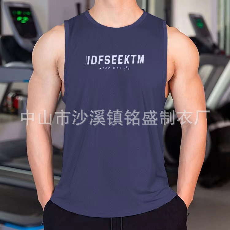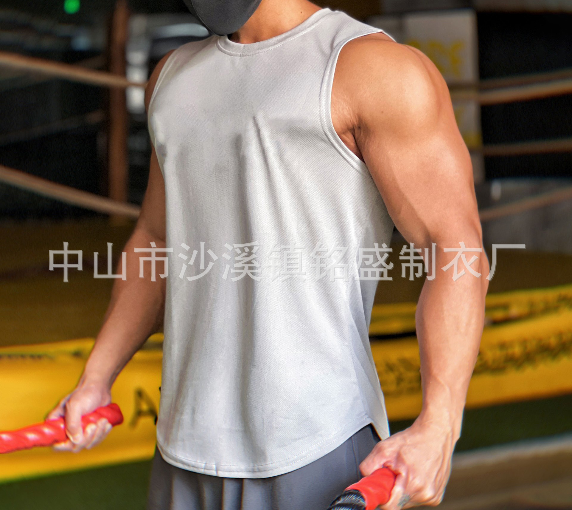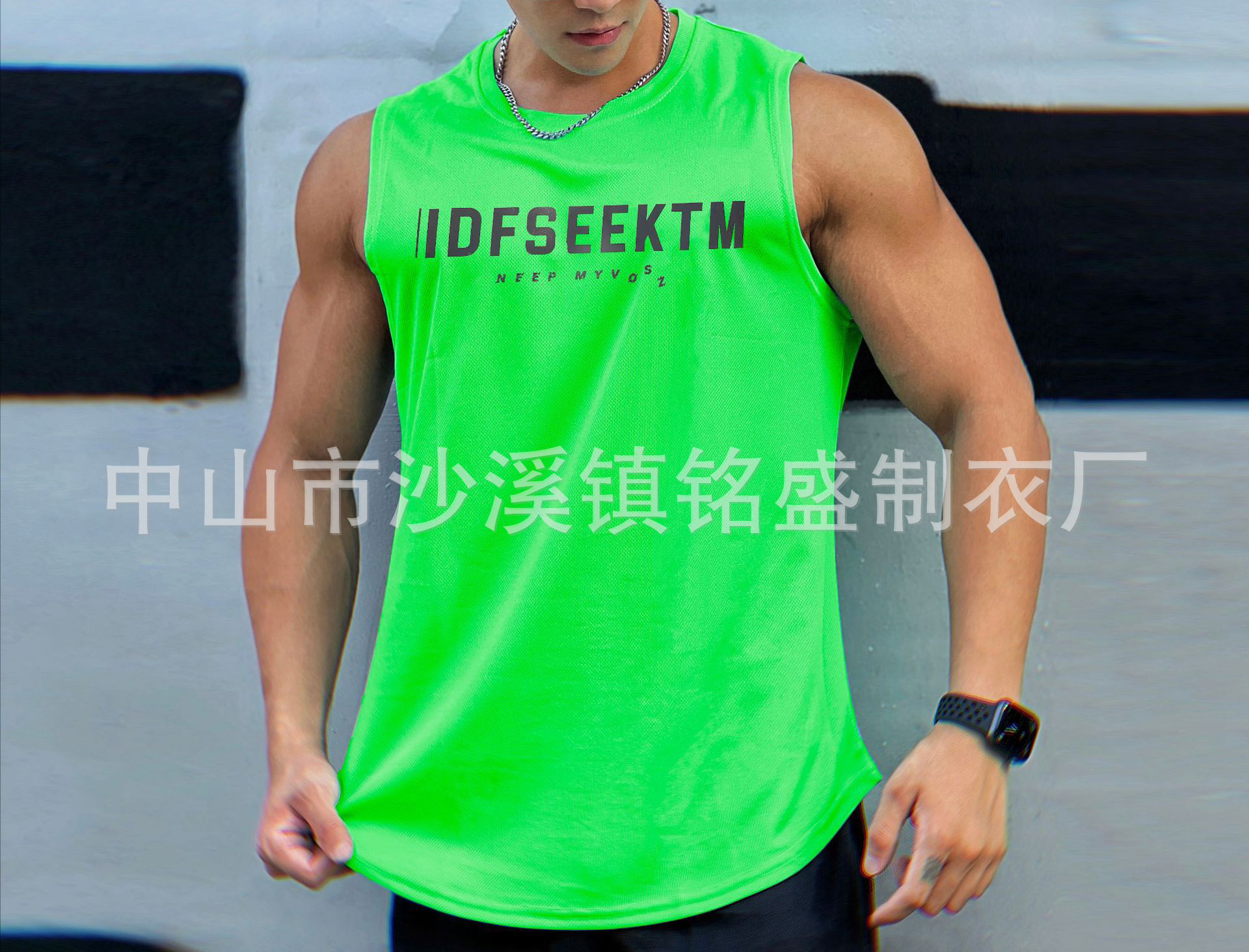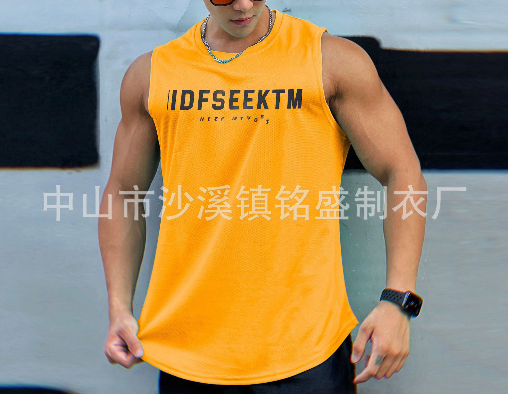 맞춤형 근육질 남성용 피트니스 속건성 조끼, 흡습 발한 메쉬 트레이닝복, 통기성 스포츠 민소매 티셔츠 남성복스토어 가기