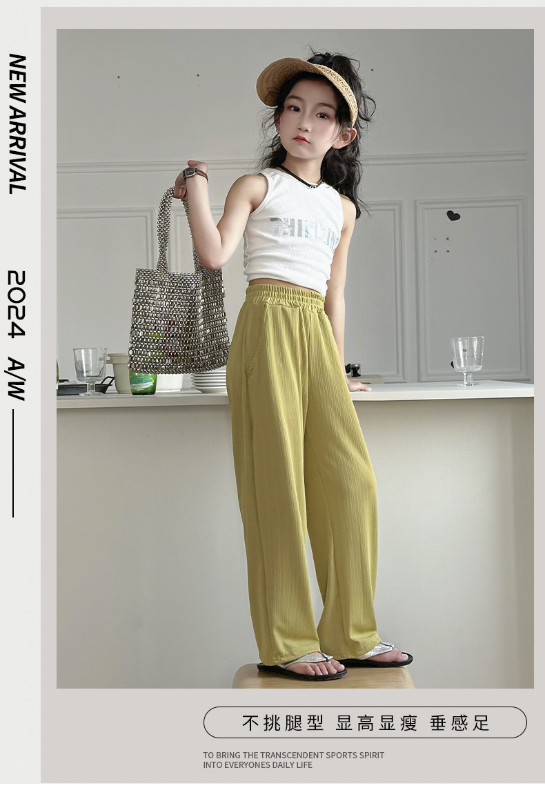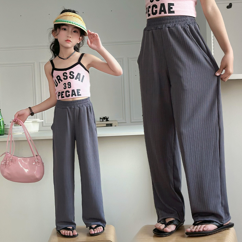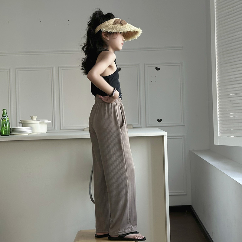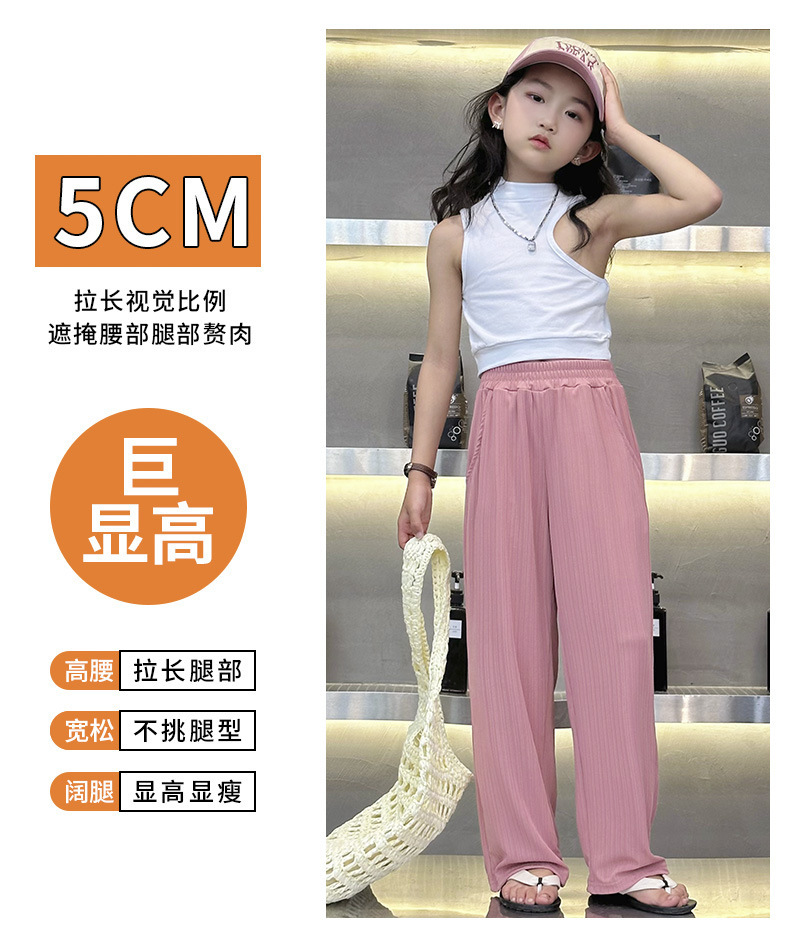 2025 어린이 얼음 실크 와이드 레그 바지 소녀 모기 방지 바지 유행 통기성 얼음 실크 바지 캐주얼 여름 어린이 바지