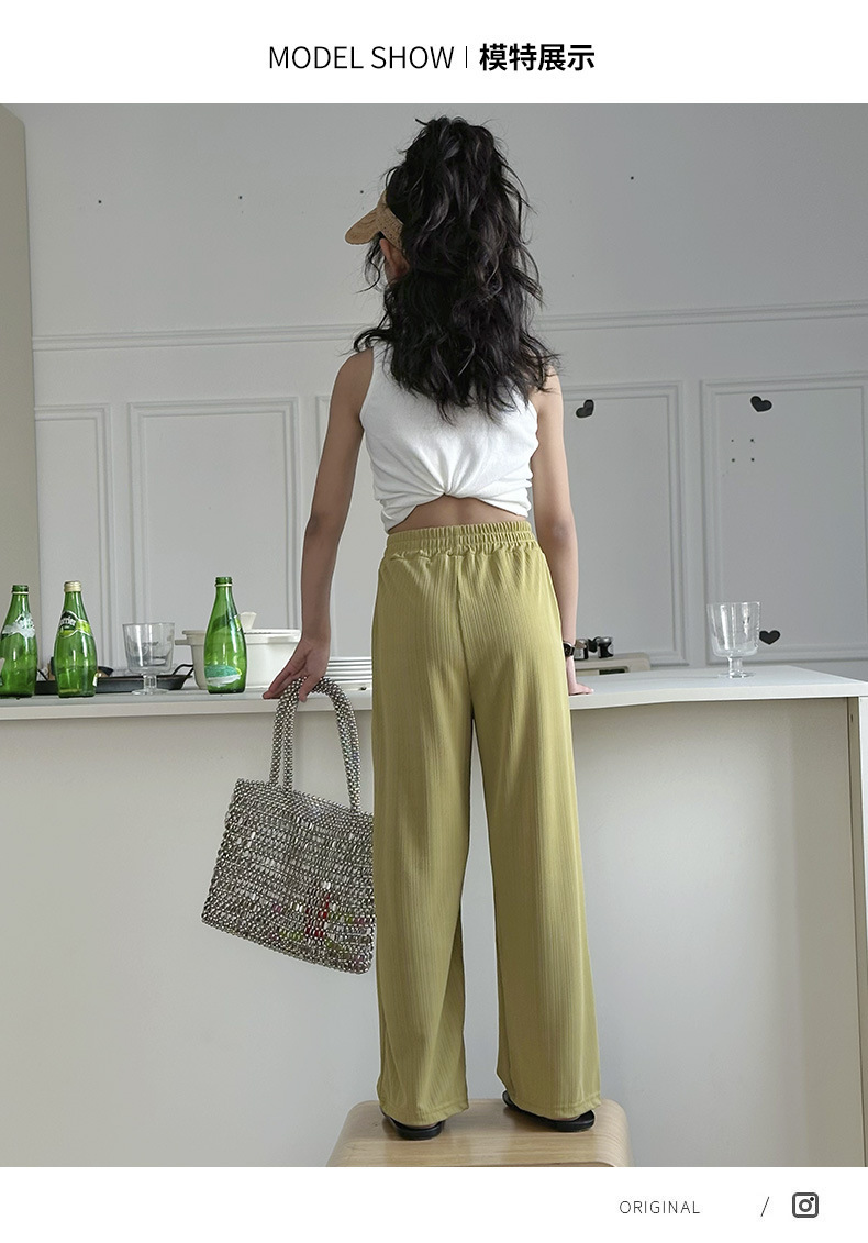 • 넓은 다리 얼음 실크 바지-과일 녹색