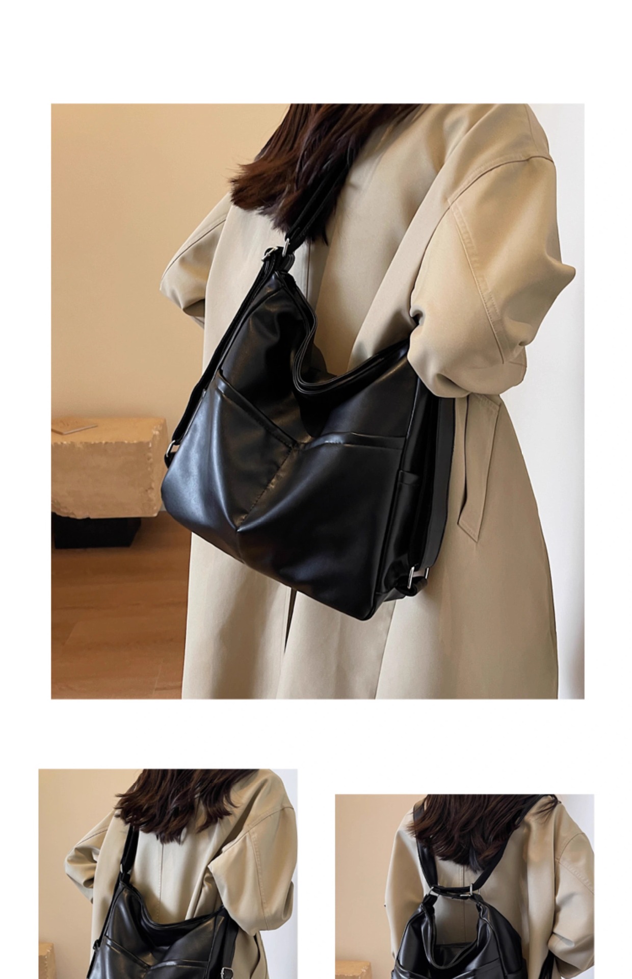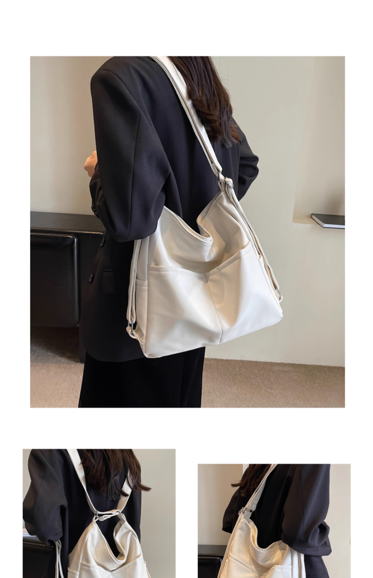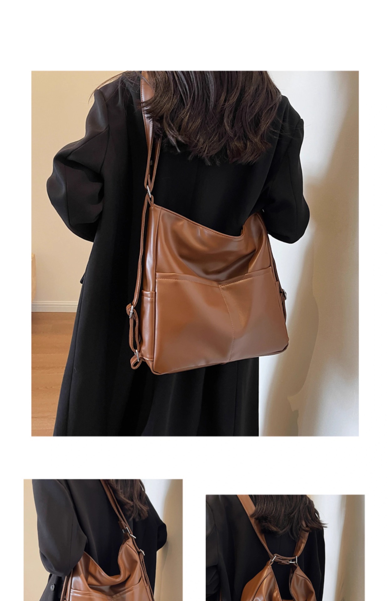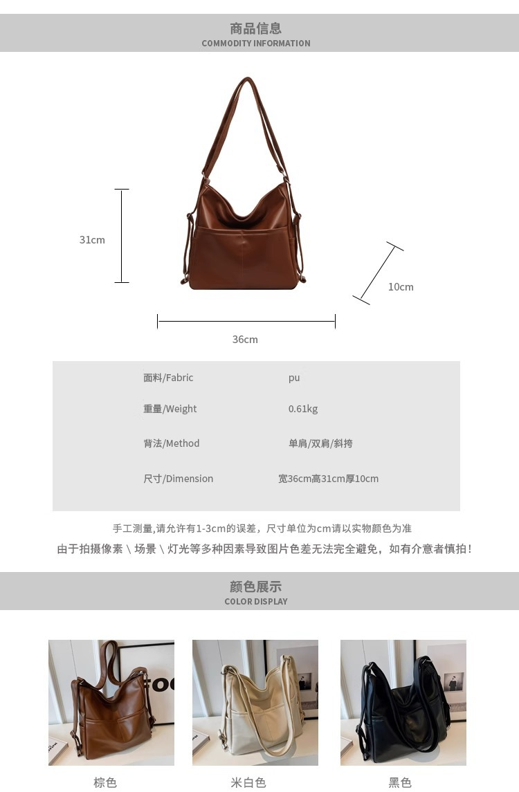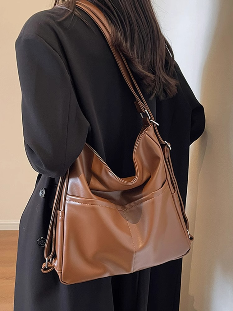 PU 가죽 방수 어깨 크로스 바디 백 여성용 이중 목적 통근 가방 2025 새로운 클래스 토트 백 숄더 백