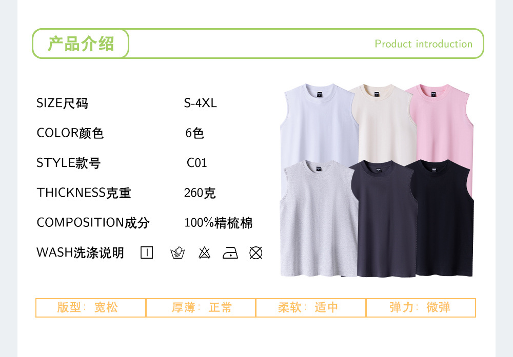 260g 헤비웨이트 민소매 남성 티셔츠 아메리칸 스타일 단색 스포츠 피트니스 루즈핏 이너웨어 남성용 베이스 레이어 여름용스토어 가기