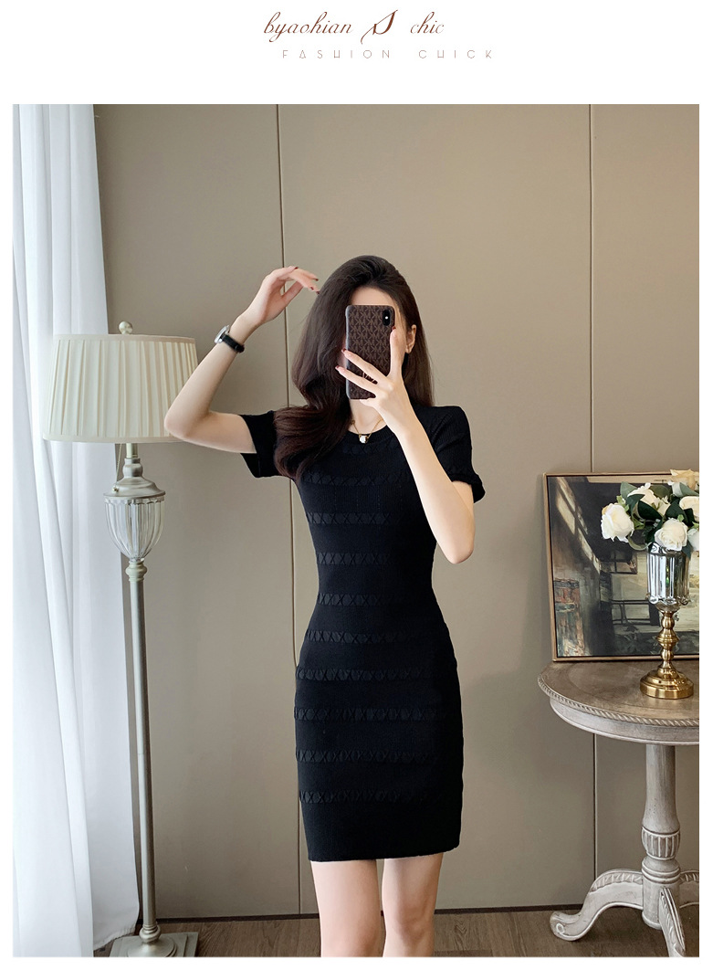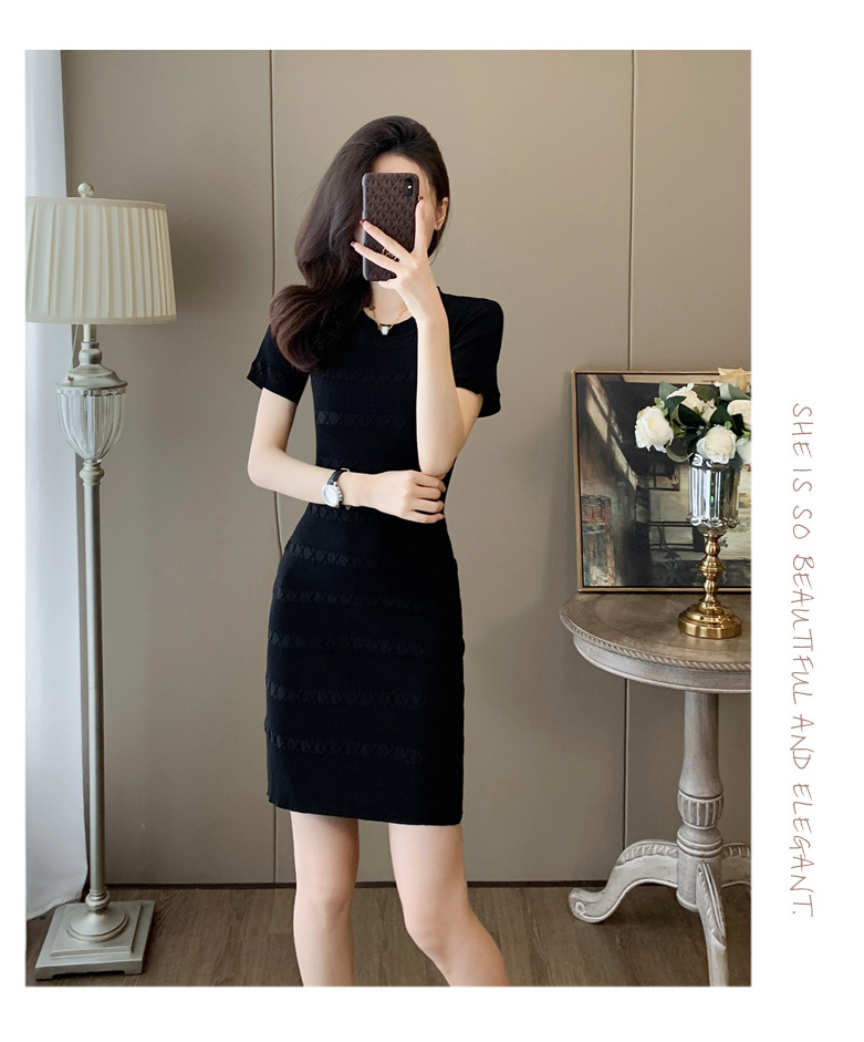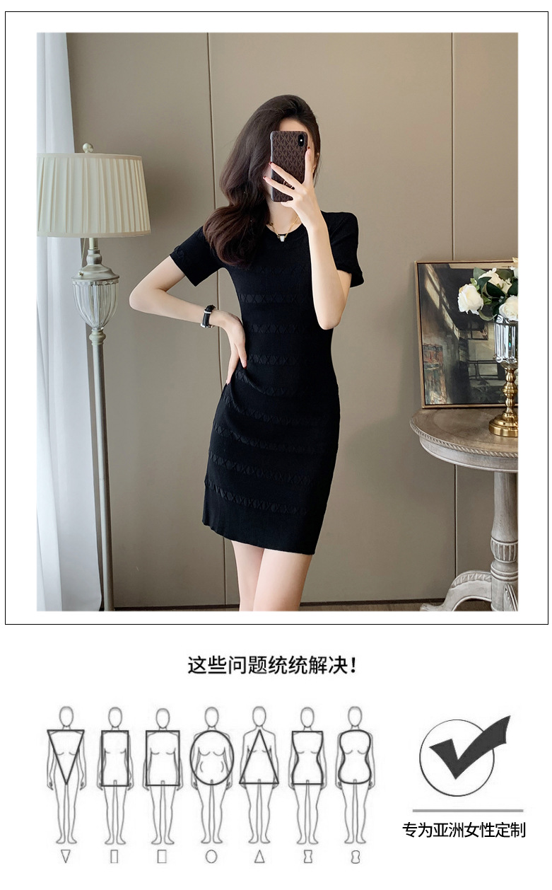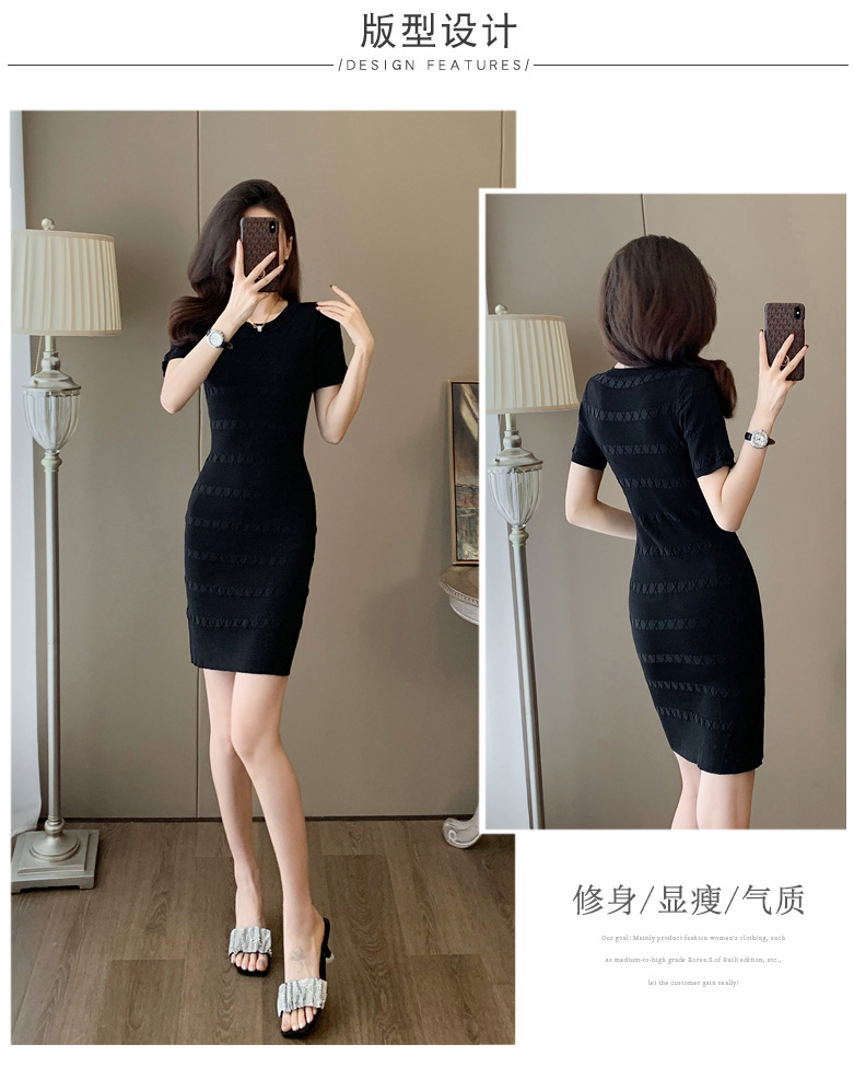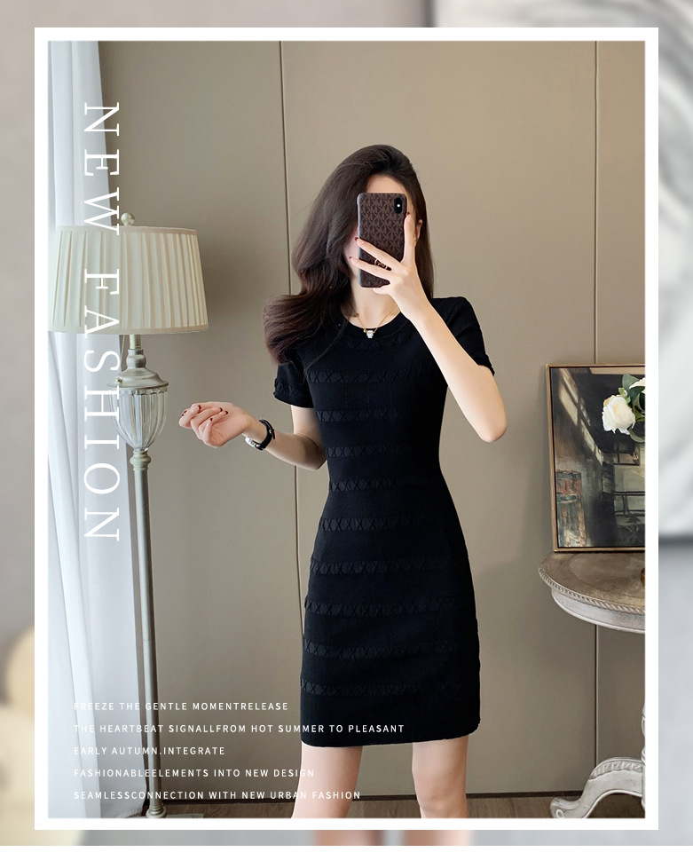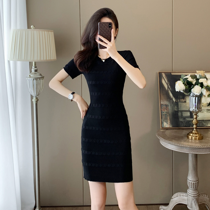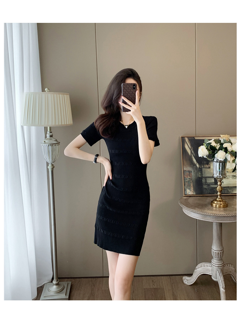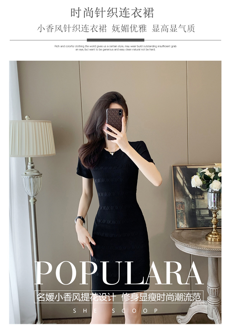 2025 프렌치 스타일 리틀 블랙 드레스 여성 여름 신작 반팔 힙 커버 블랙 아이스 실크 니트 드레스스토어 가기
