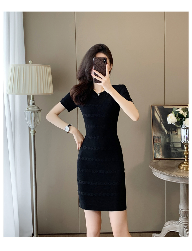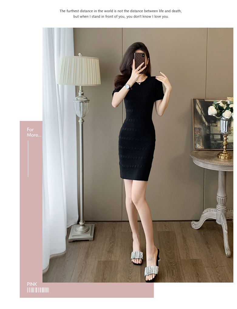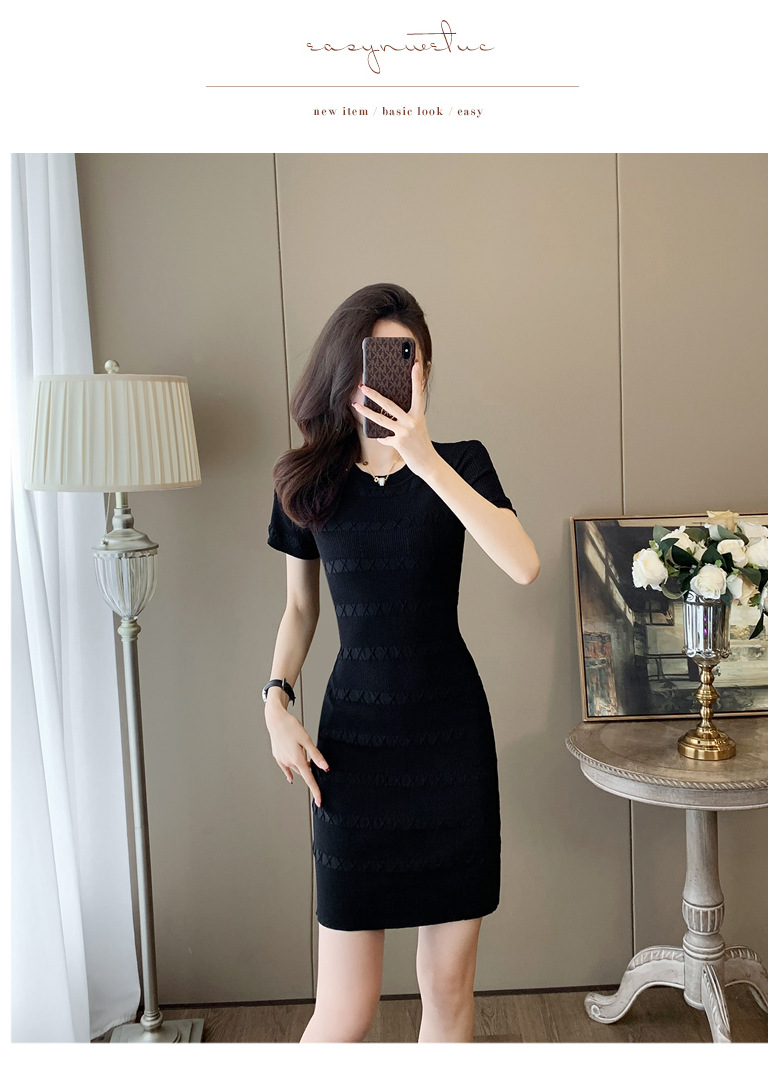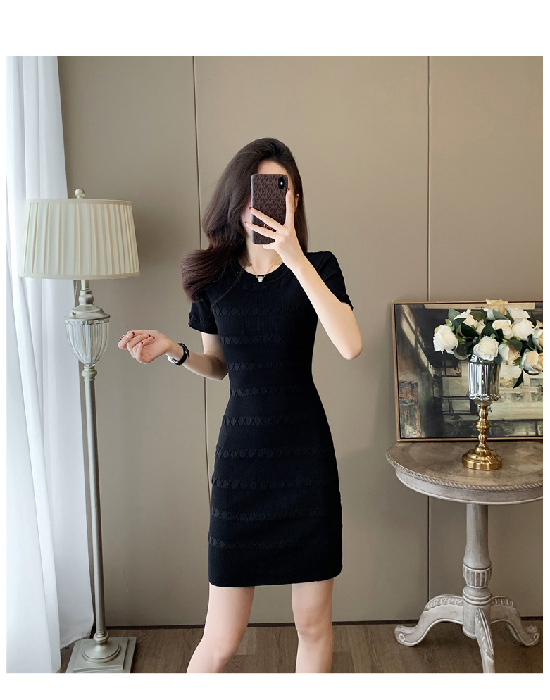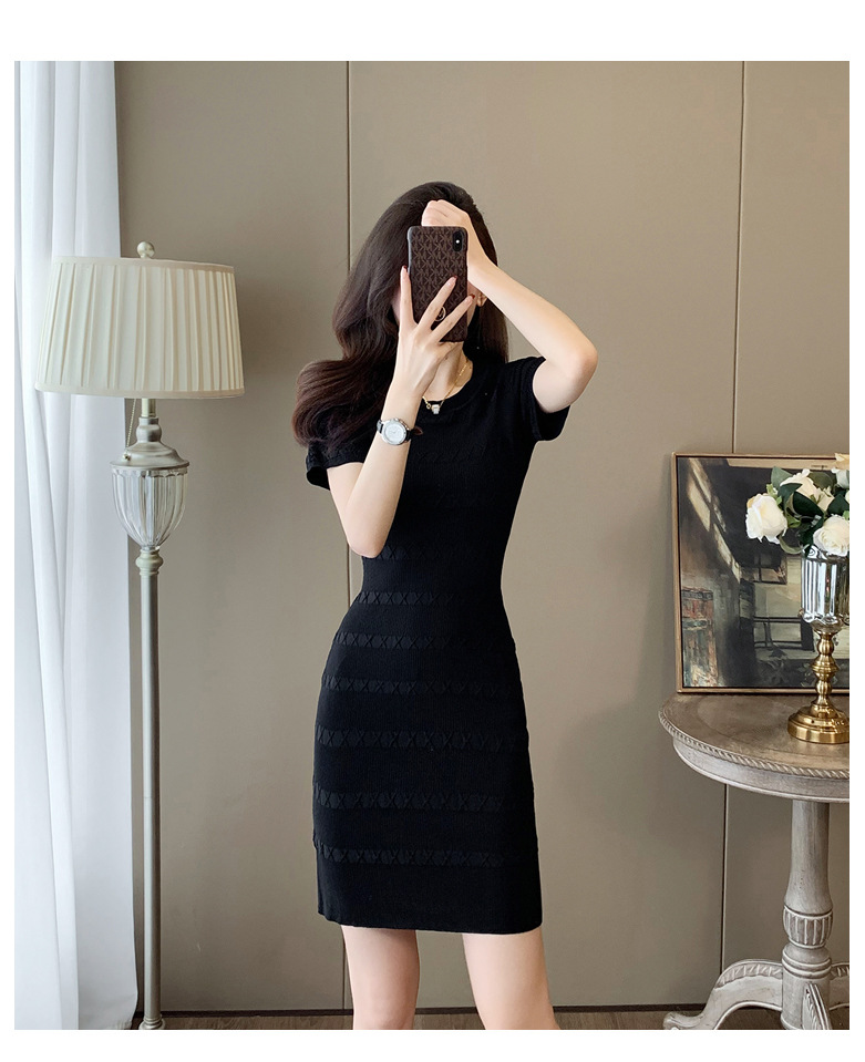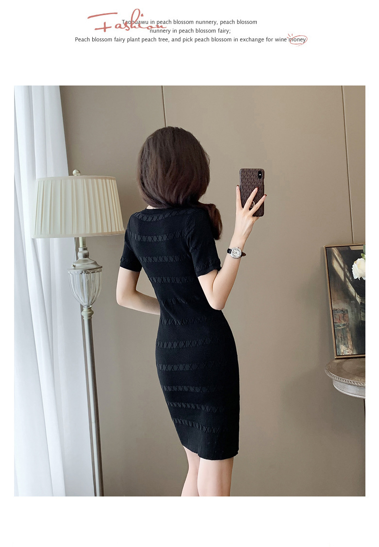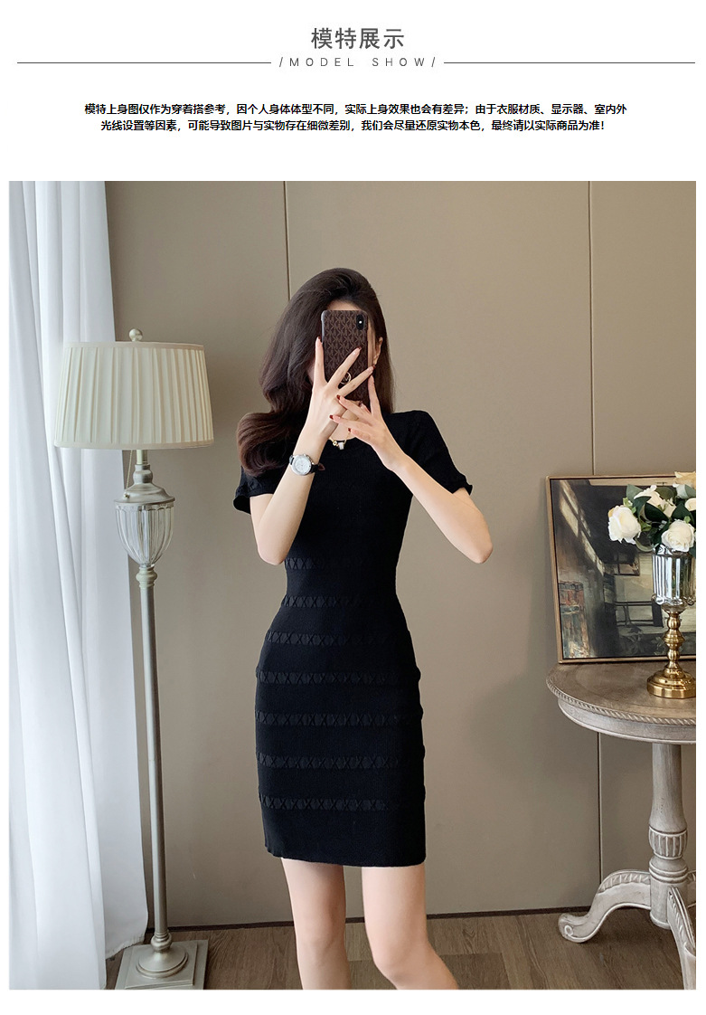 2025 프렌치 스타일 리틀 블랙 드레스 여성 여름 신작 반팔 힙 커버 블랙 아이스 실크 니트 드레스스토어 가기