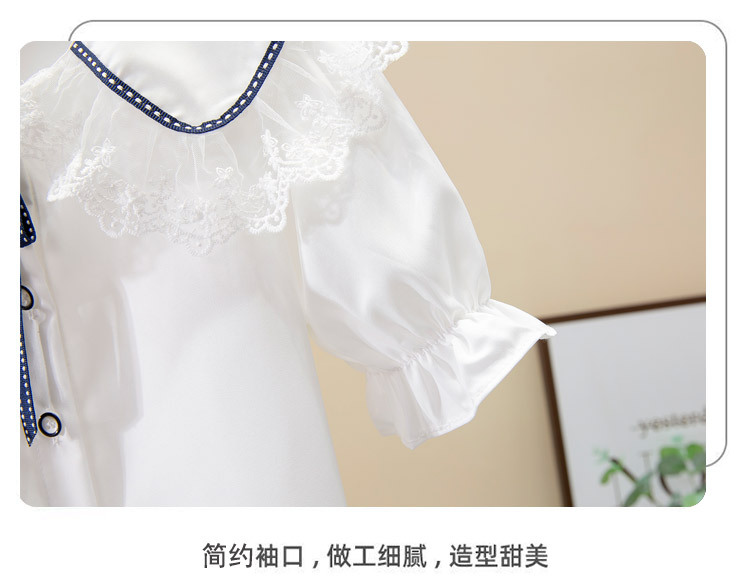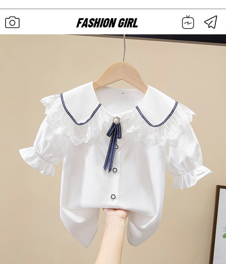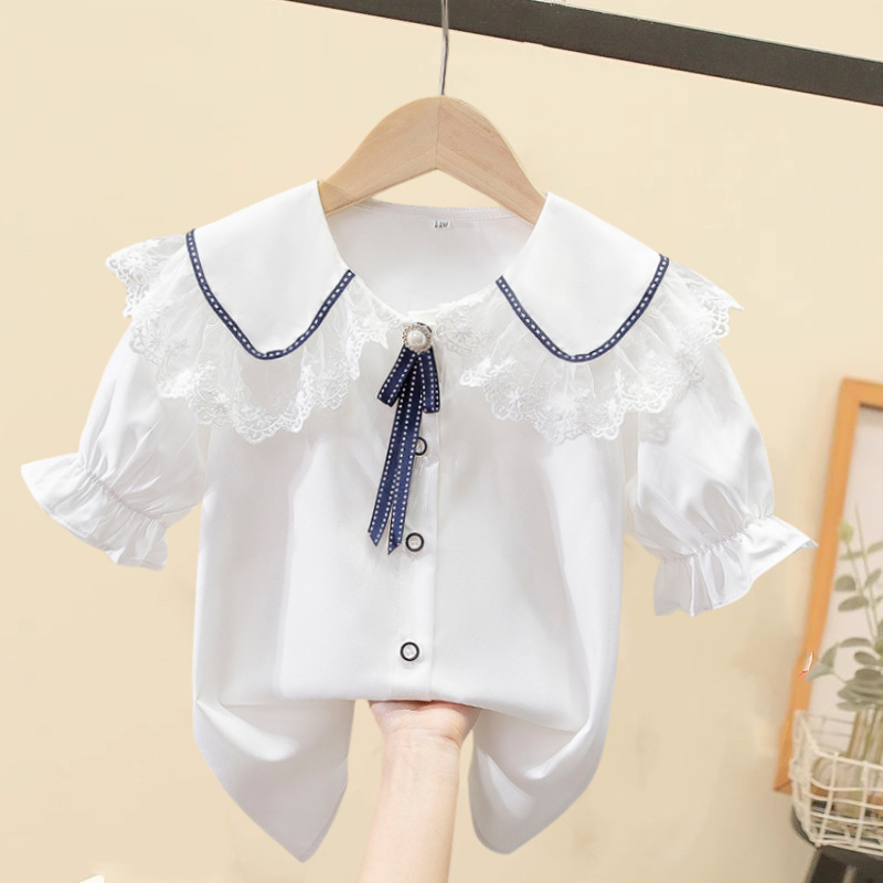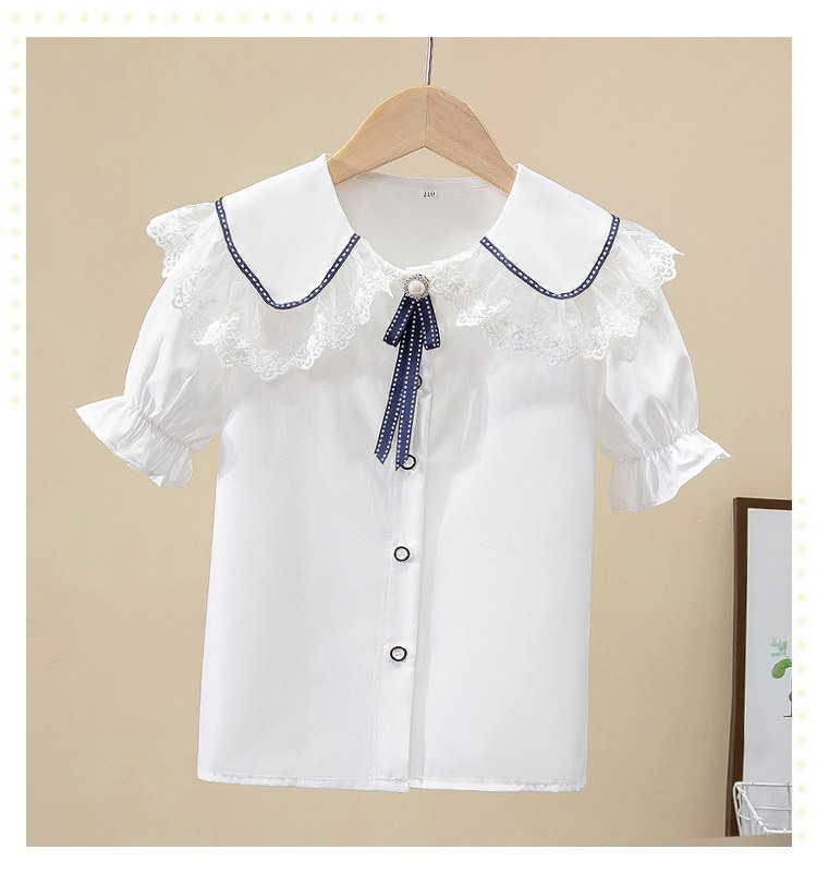 어린이 쉬폰 셔츠 레이스 화이트 소녀베이스 셔츠 탑 태양 보호 의류 중소 어린이 의류 학생 적합 반팔 외국인스토어 가기