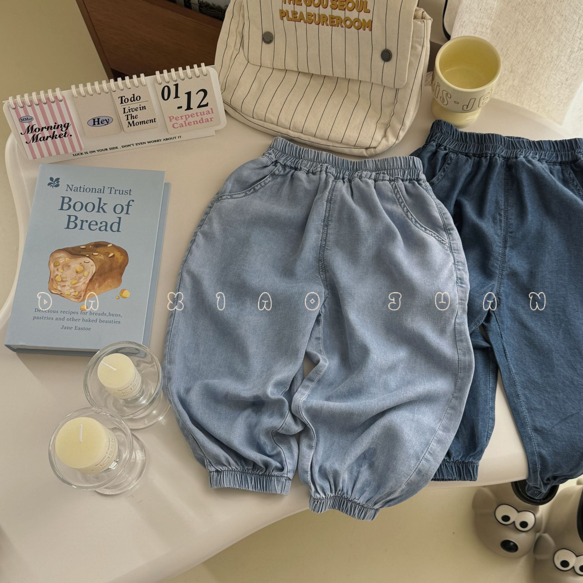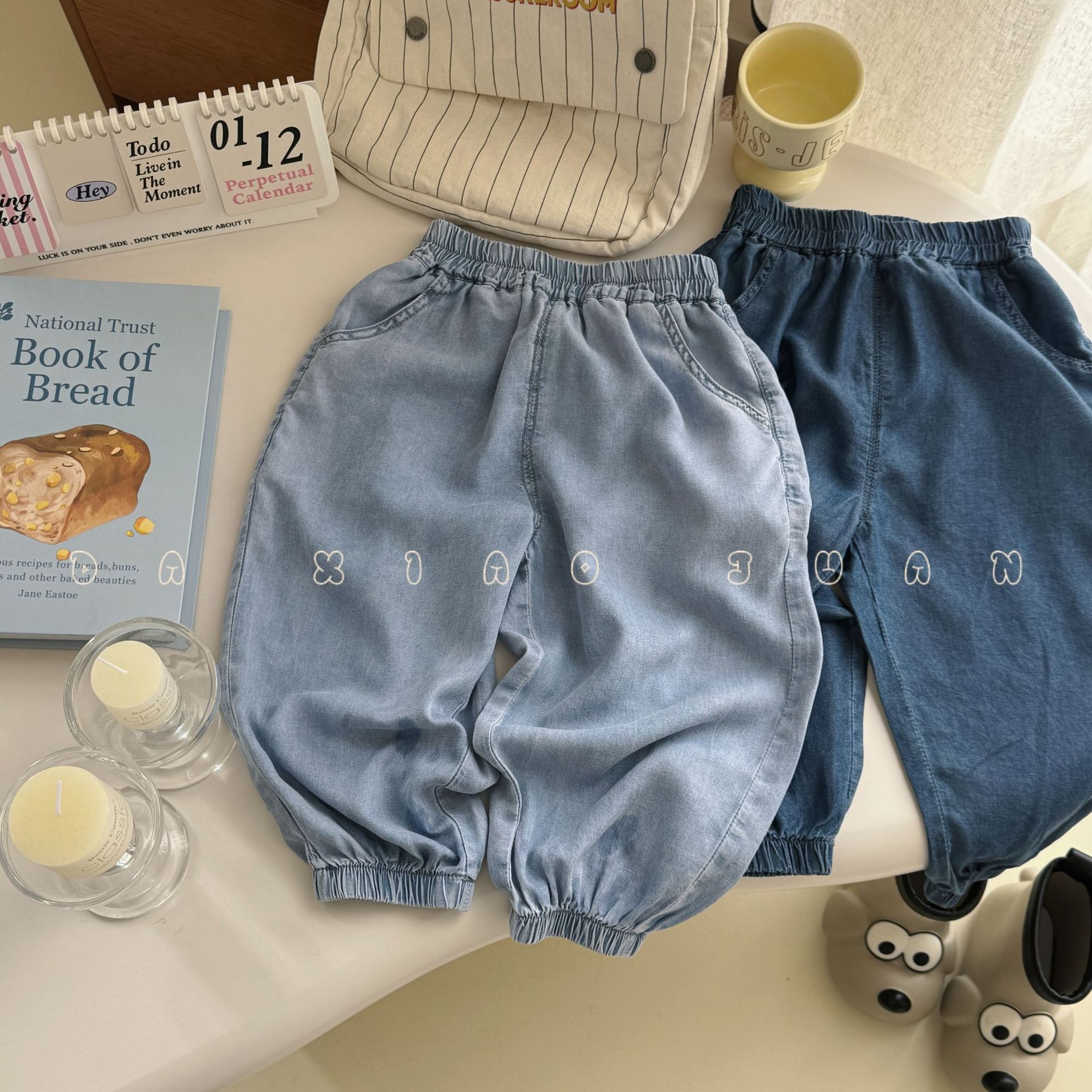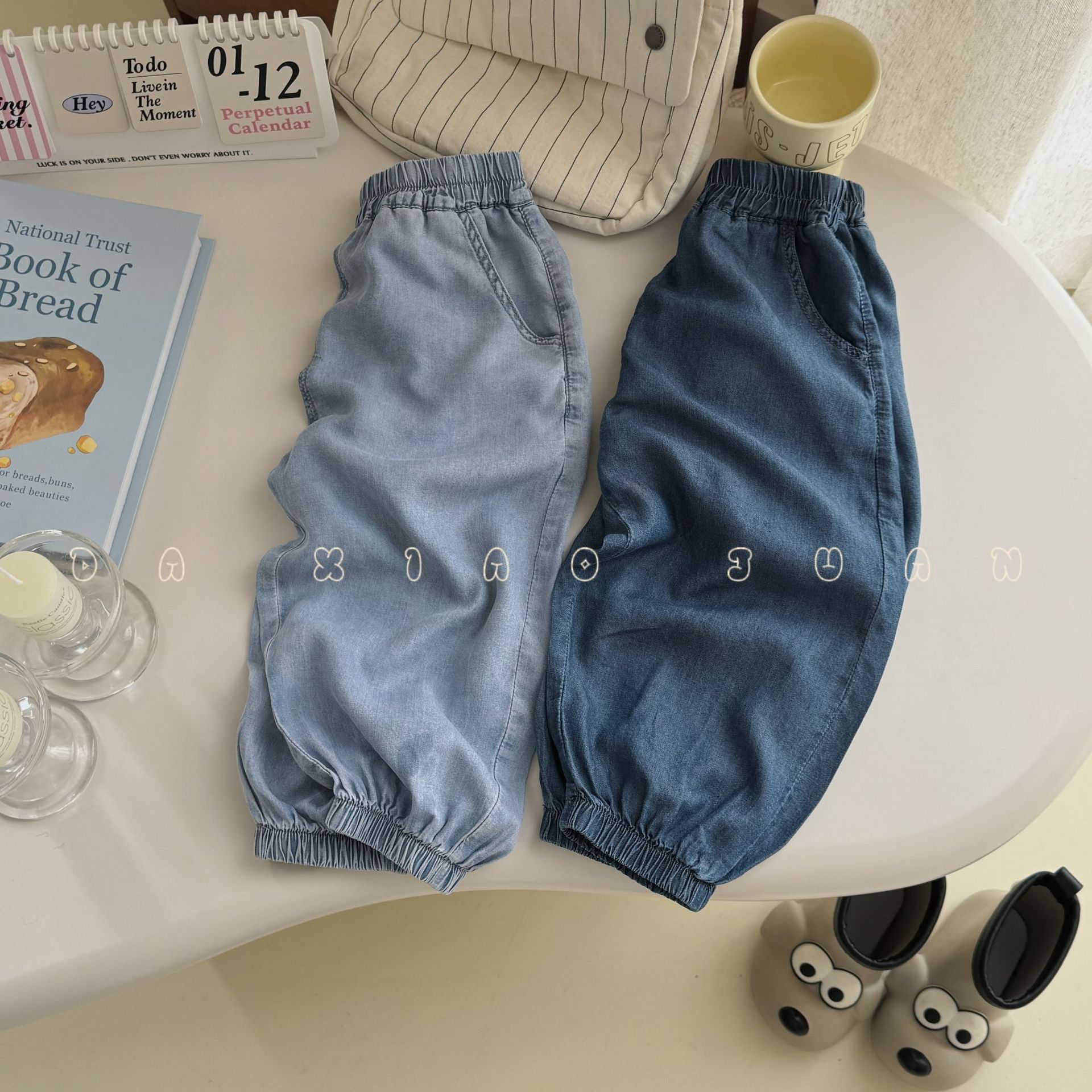 사이즈 롤 24 여름 새로운 어린이 얇은 바지 텐셀 안티 모기 바지 데님 블루 남성과 여성의 아동복 중립스토어 가기
