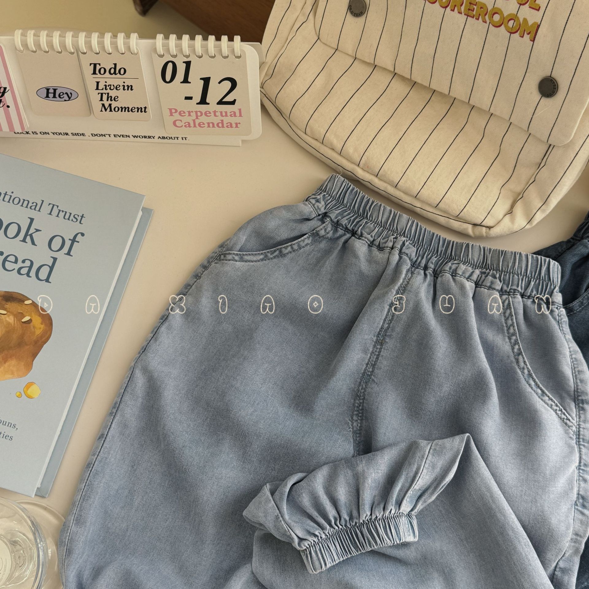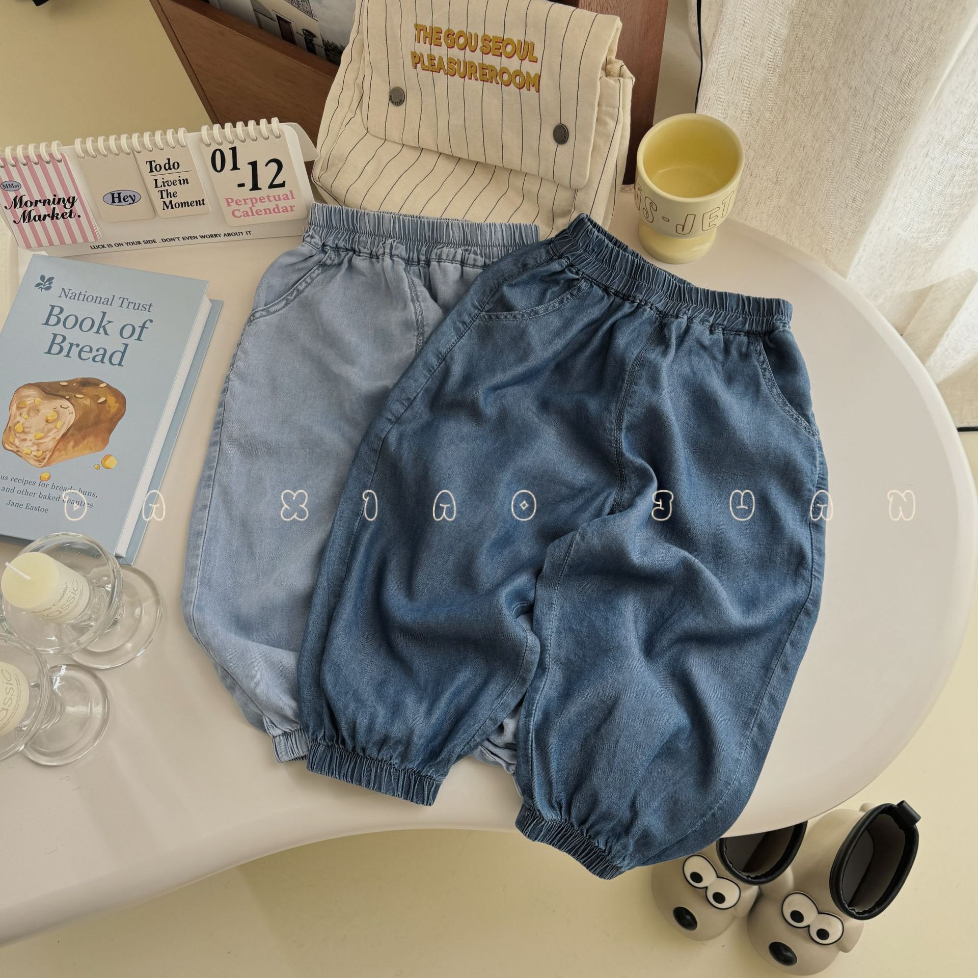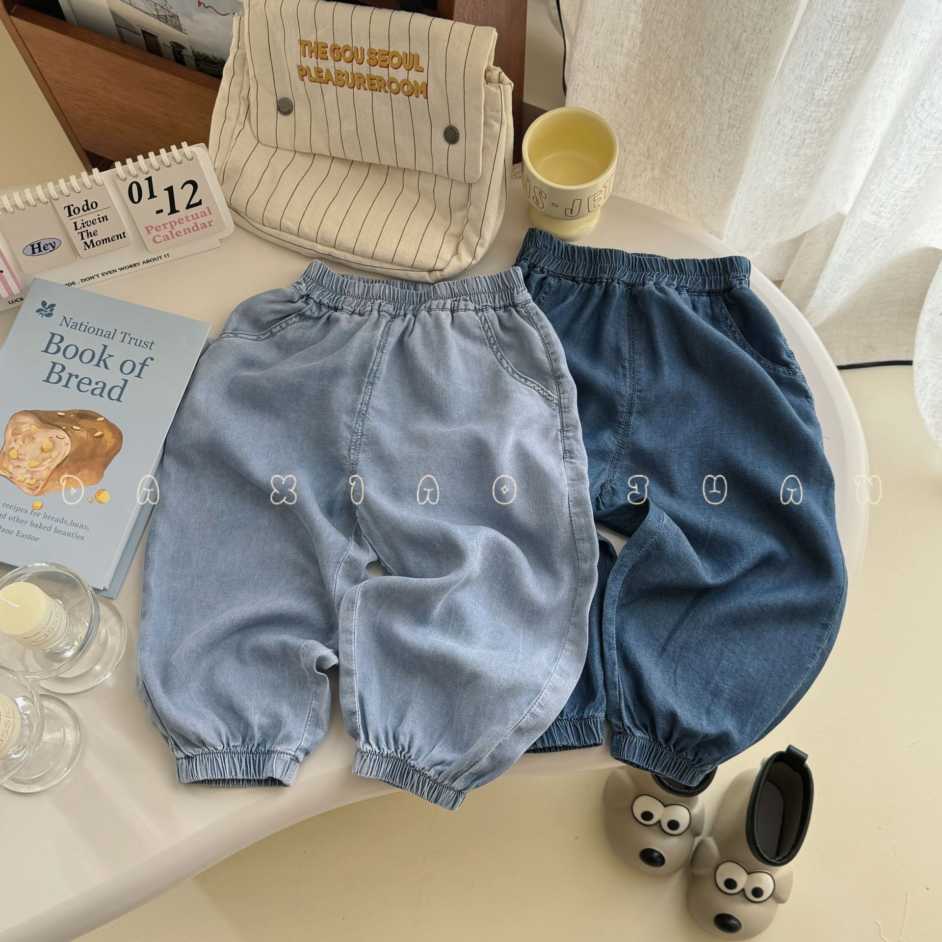 사이즈 롤 24 여름 새로운 어린이 얇은 바지 텐셀 안티 모기 바지 데님 블루 남성과 여성의 아동복 중립스토어 가기