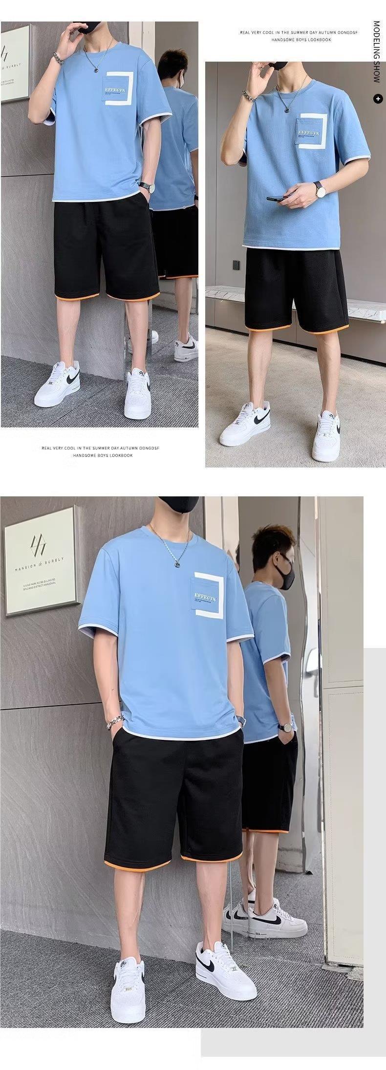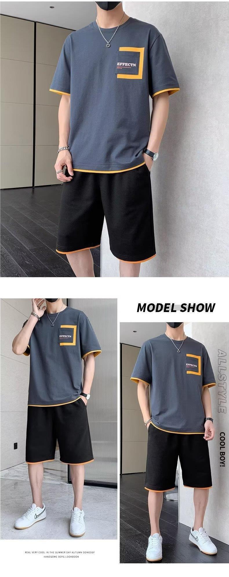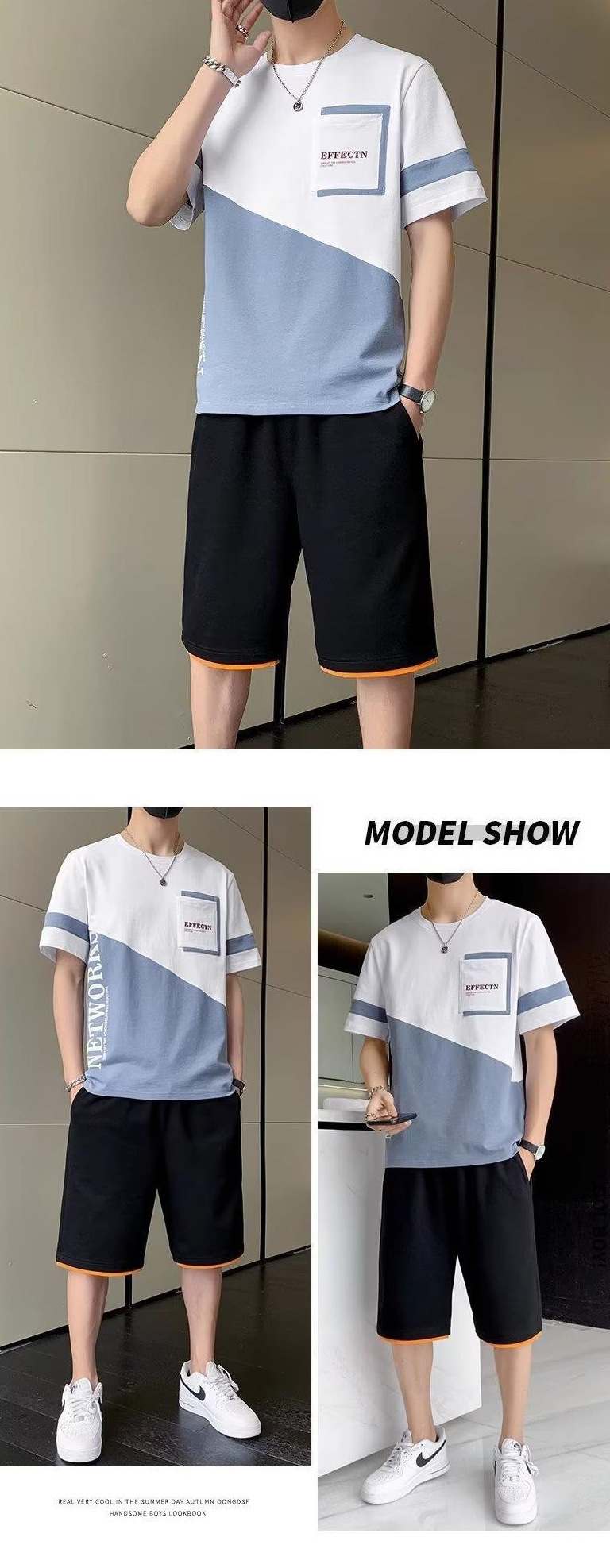여름 스포츠 세트 남자 캐주얼 얇은 반팔 반바지 2 피스 남자 빠른 건조 달리기 운동복