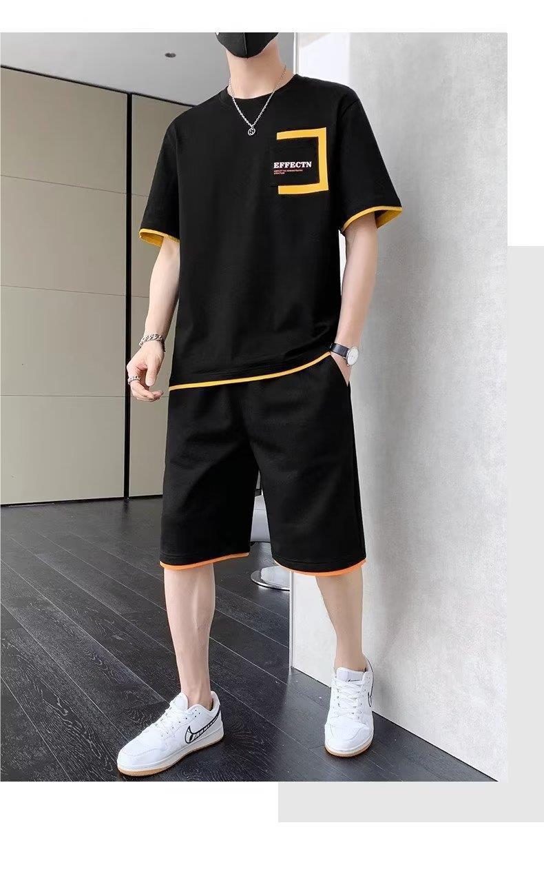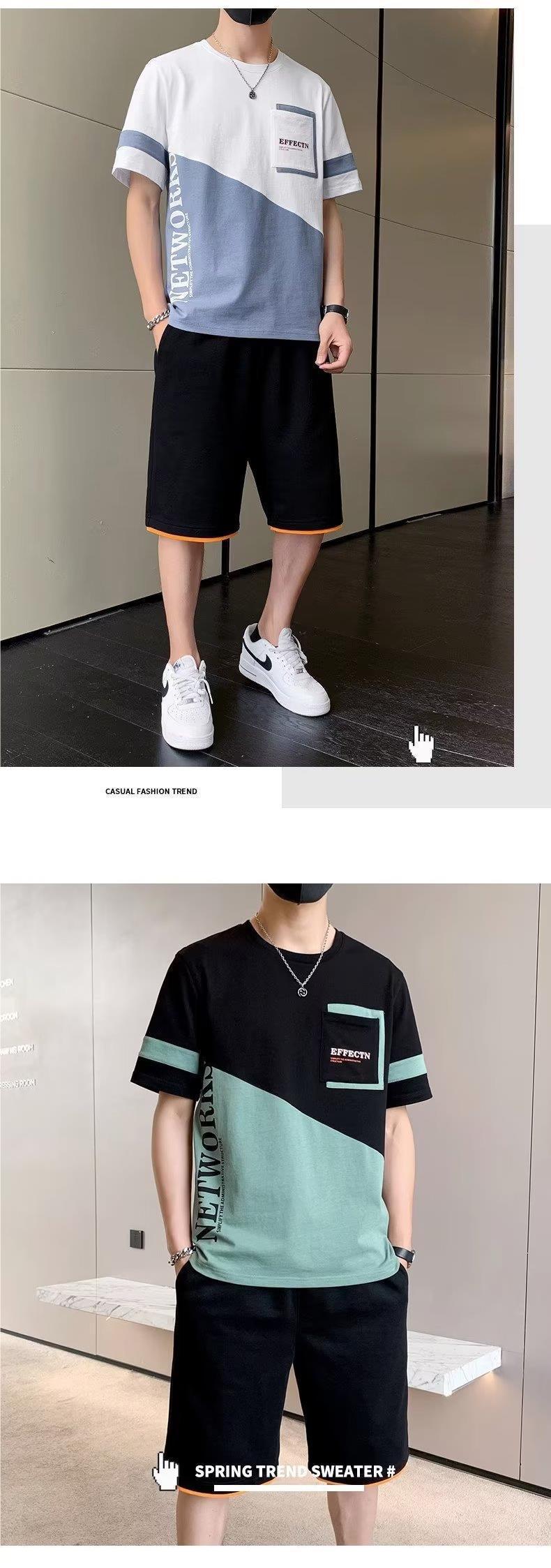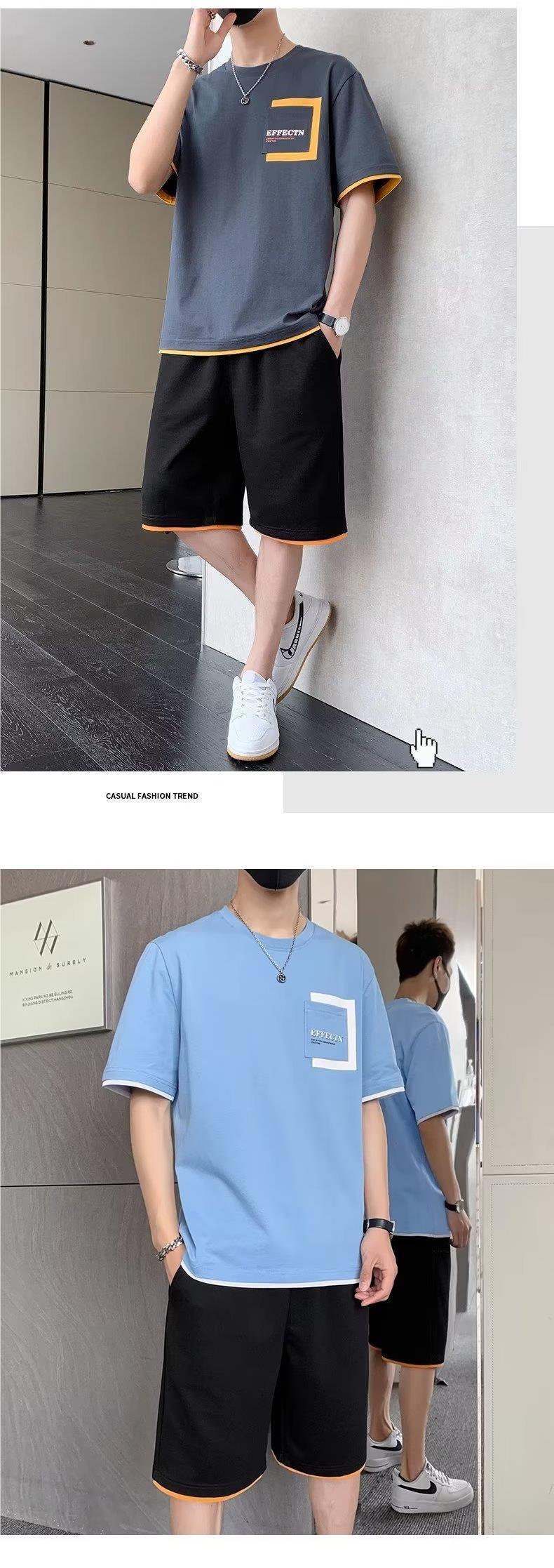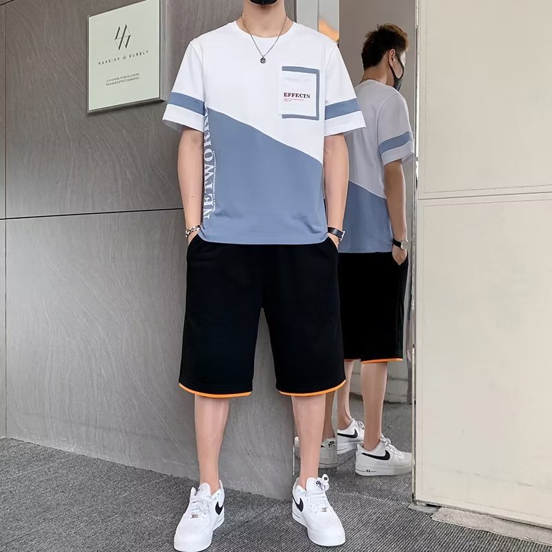 여름 스포츠 세트 남자 캐주얼 얇은 반팔 반바지 2 피스 남자 빠른 건조 달리기 운동복