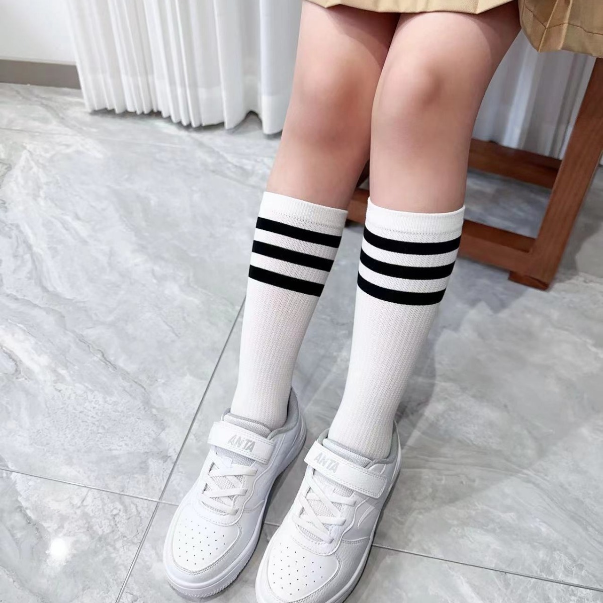 사랑의 진드기 어린이 화이트 스타킹 여름 3 바 학생 축구 대학 소년 소녀를위한 무릎 양말
